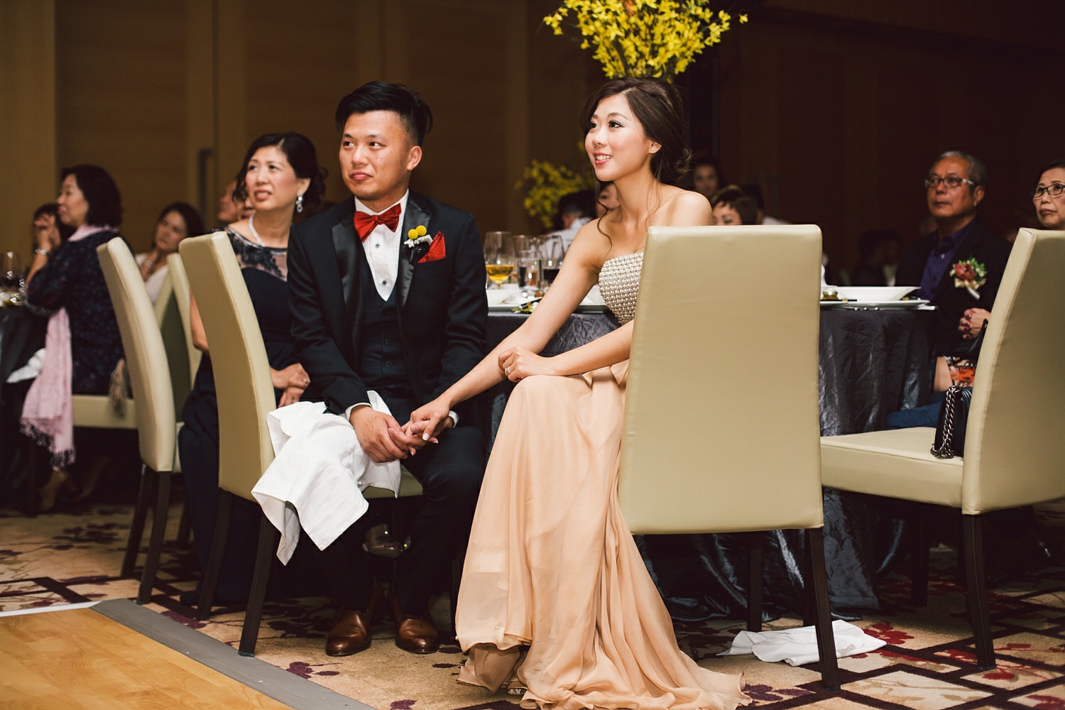 For the tea ceremony, Cynthia wore a traditional Chinese attire with stunning red flat shoes. They had a lovely ceremony which is important in the Chinese culture. This shows the respect of the couple on the seniority of their parents.