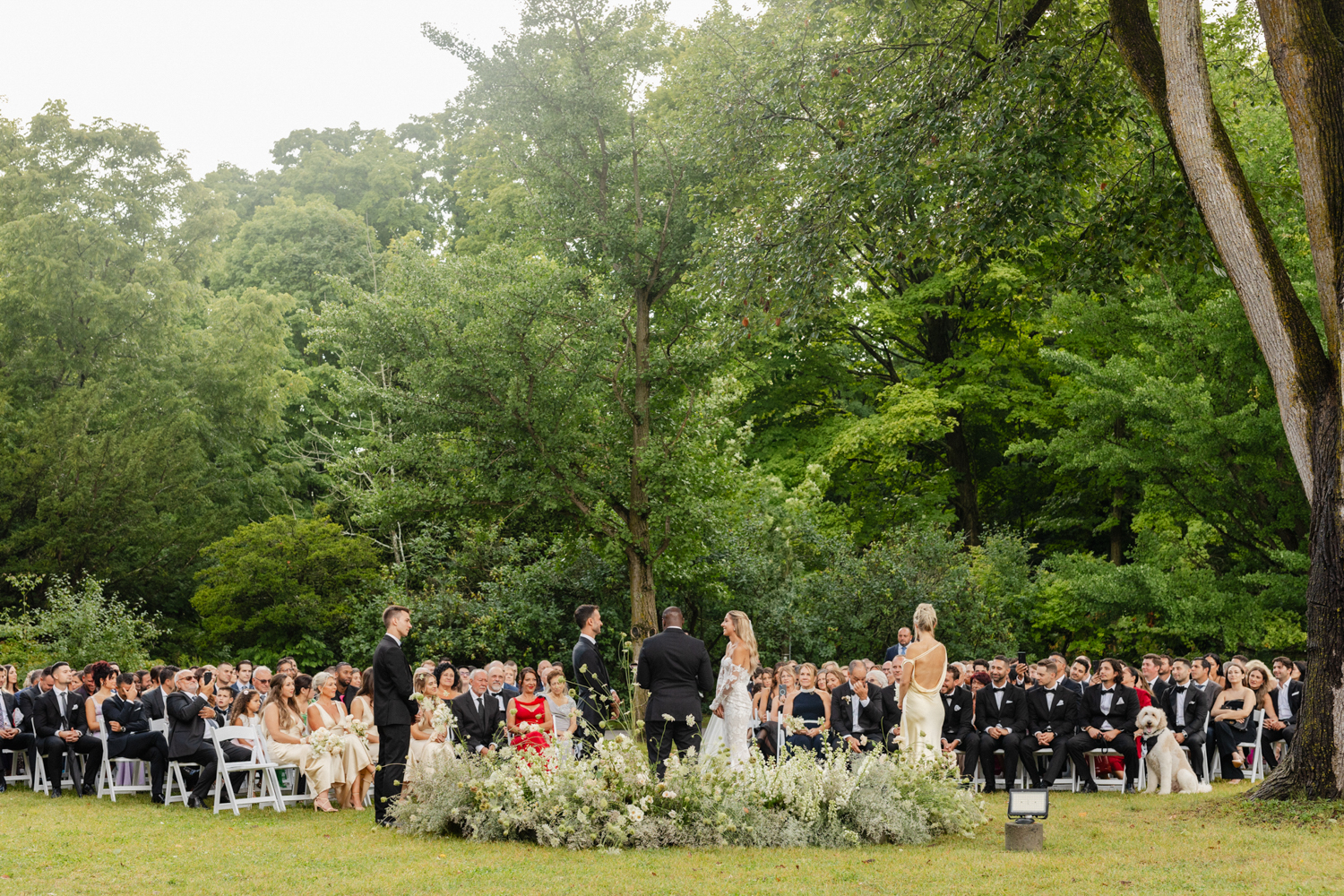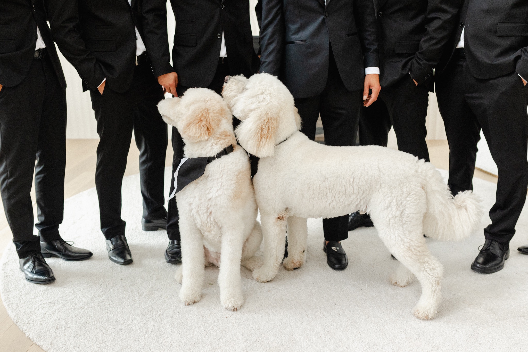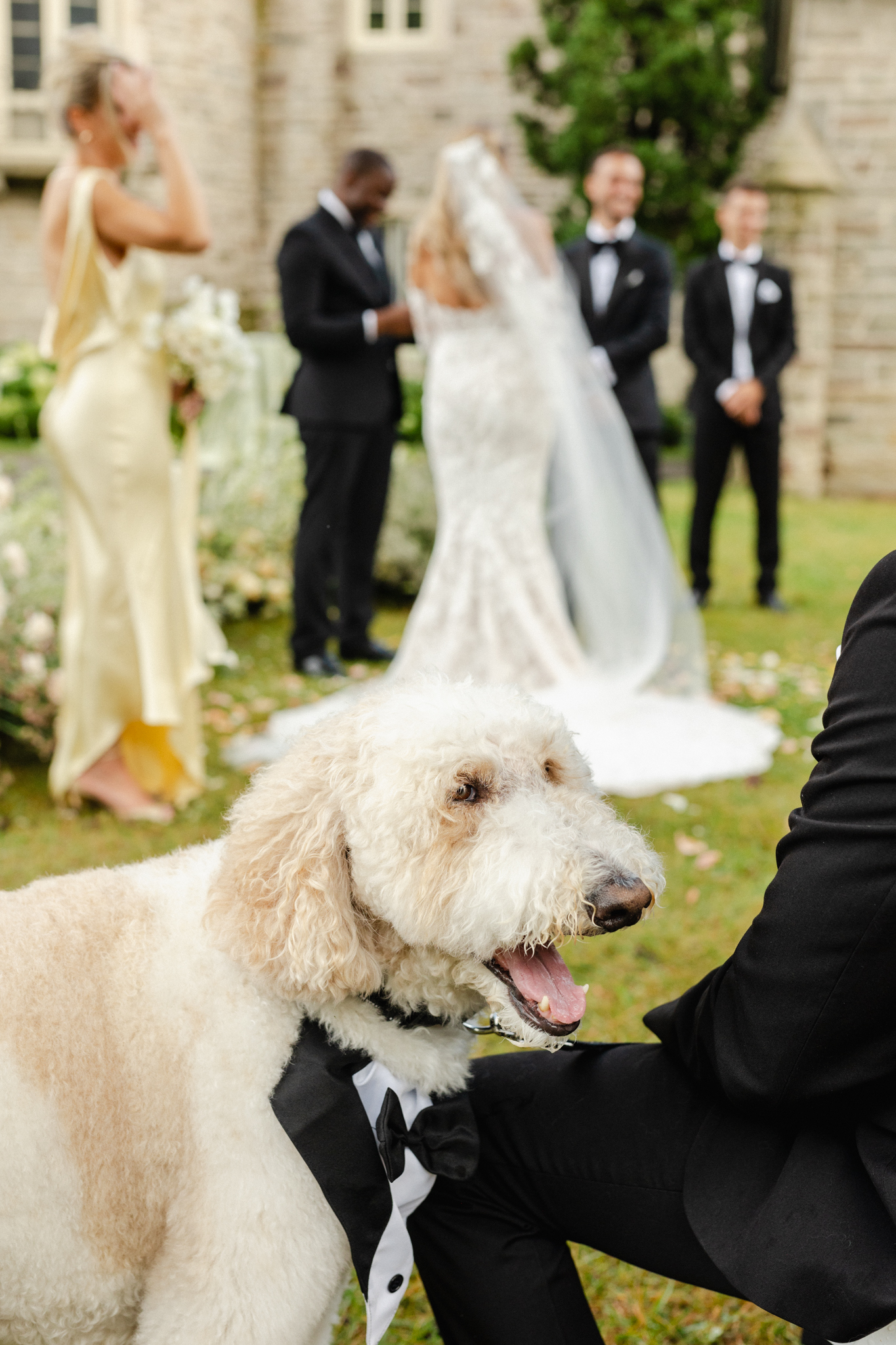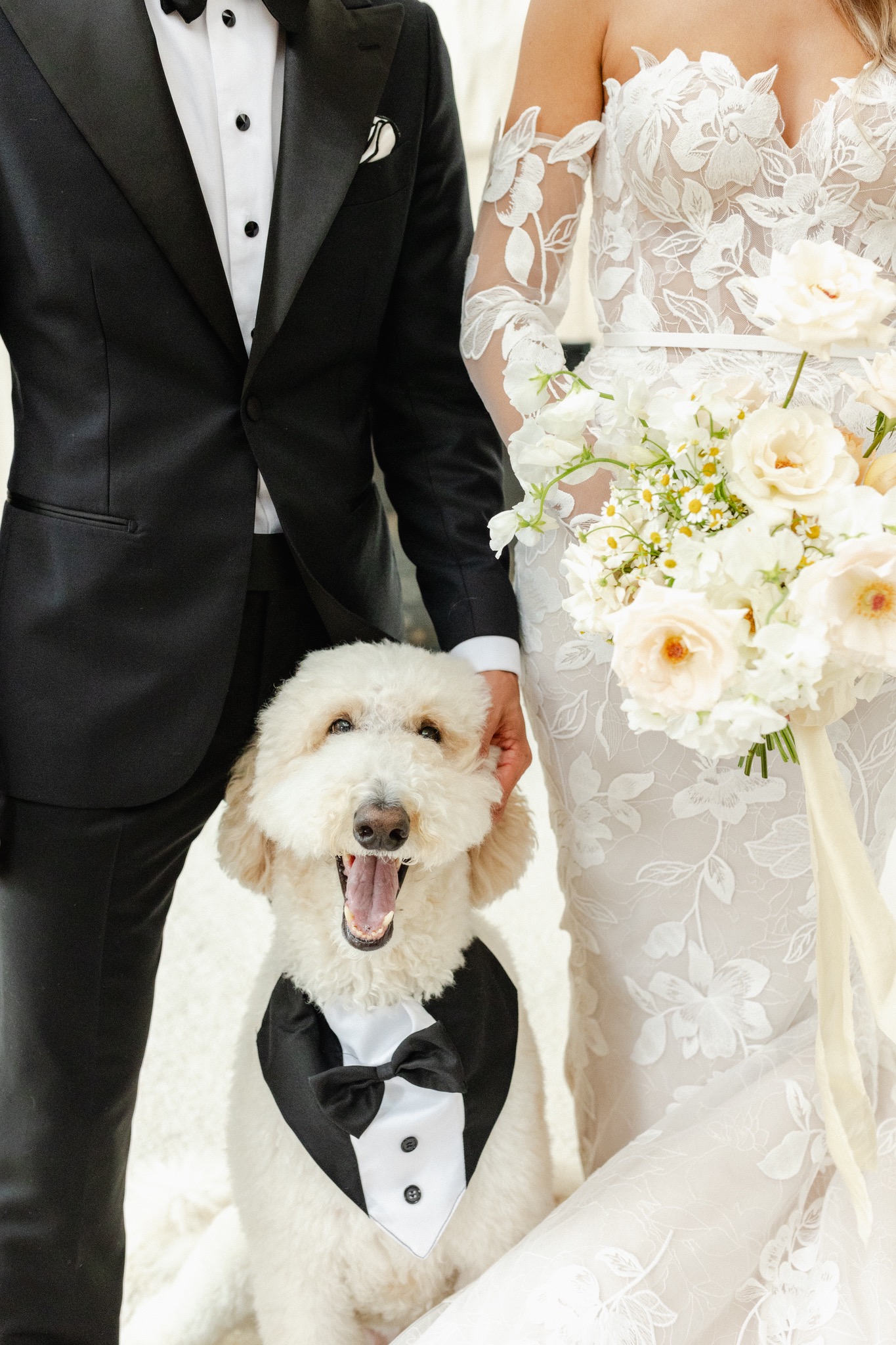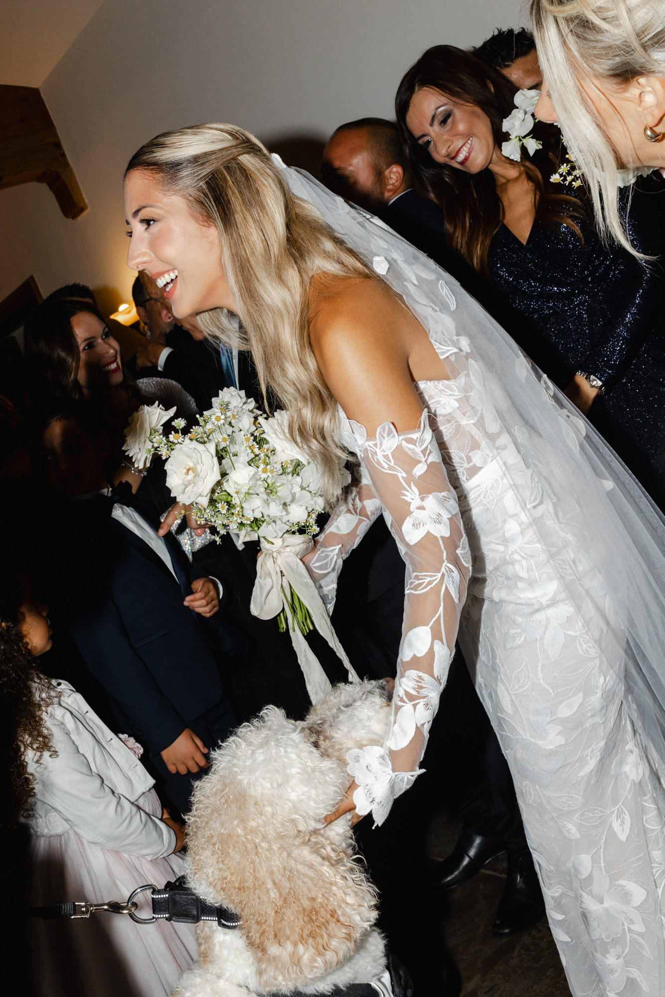 From champagne cheers in the morning to the heartfelt ceremony and lively reception, every detail of Patrizia and Stephen’s wedding was carefully curated and full of love. The serene beauty of the ceremony florals, which seemed to grow naturally from the earth, left us in awe. One particularly sweet moment was seeing Patrizia and Stephen’s dog quietly observing the ceremony, adding a touch of warmth to the day.