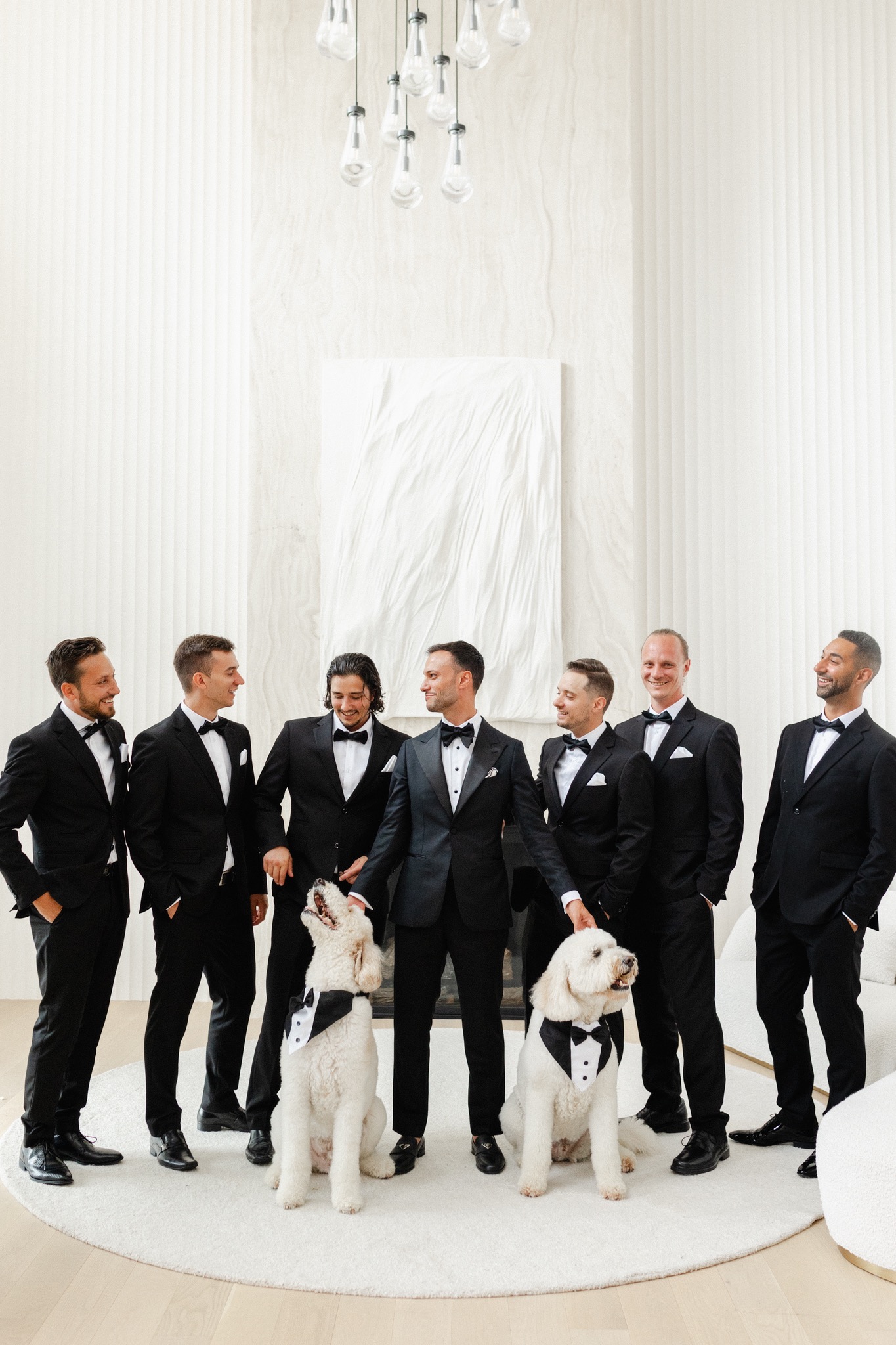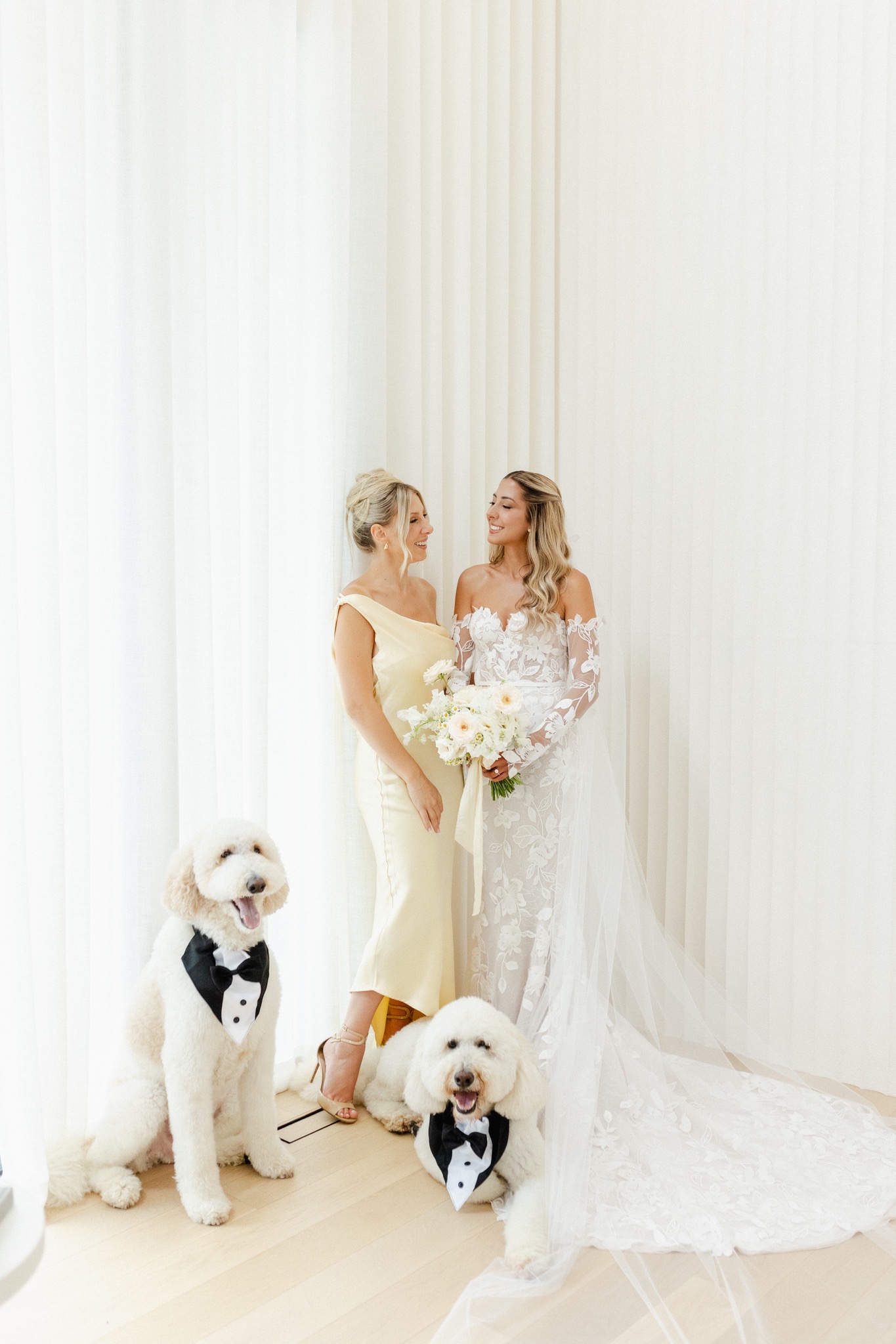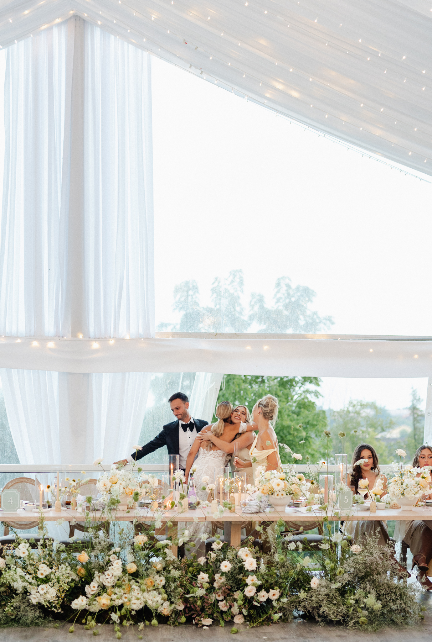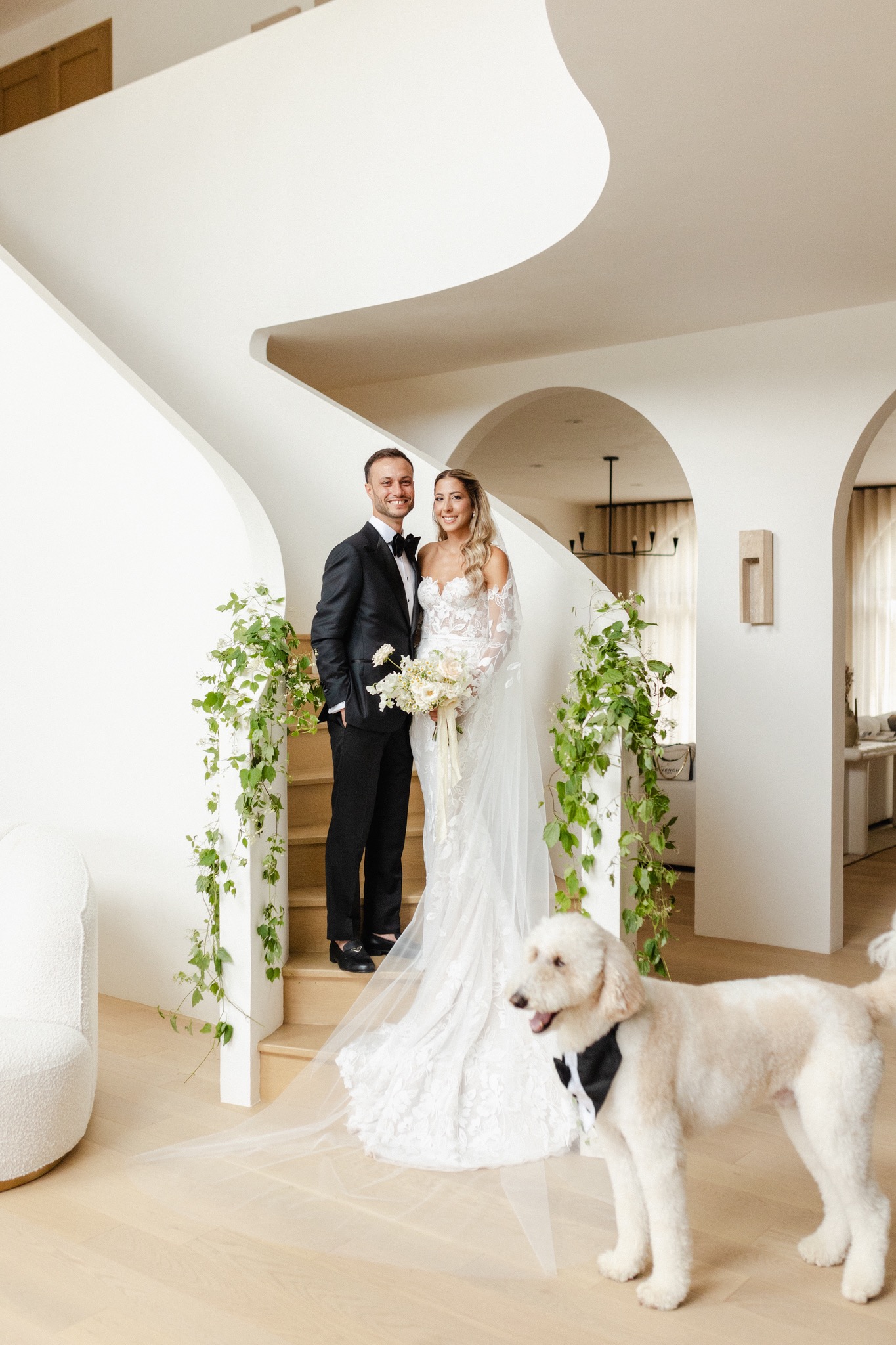 From champagne cheers in the morning to the heartfelt ceremony and lively reception, every detail of Patrizia and Stephen’s wedding was carefully curated and full of love. The serene beauty of the ceremony florals, which seemed to grow naturally from the earth, left us in awe. One particularly sweet moment was seeing Patrizia and Stephen’s dog quietly observing the ceremony, adding a touch of warmth to the day.