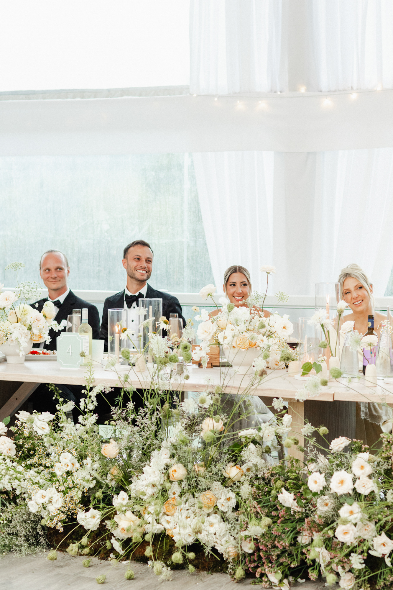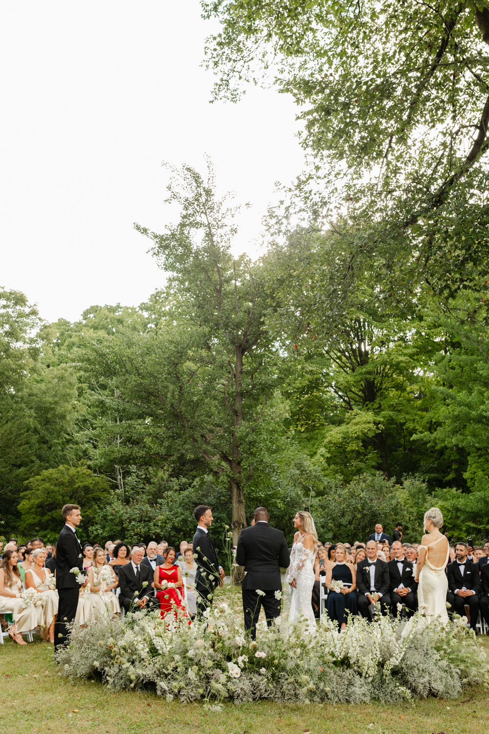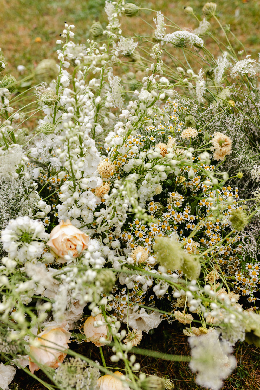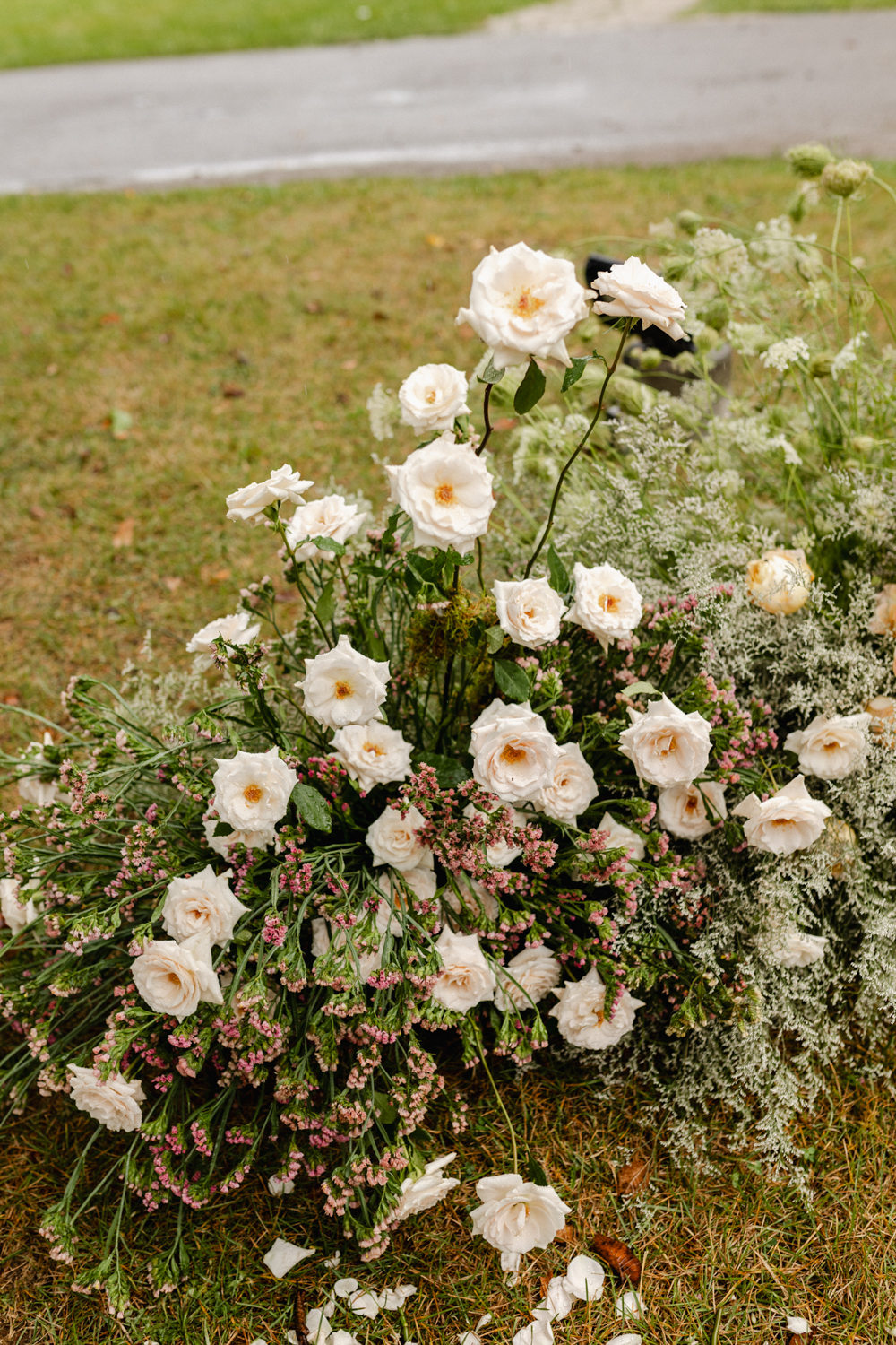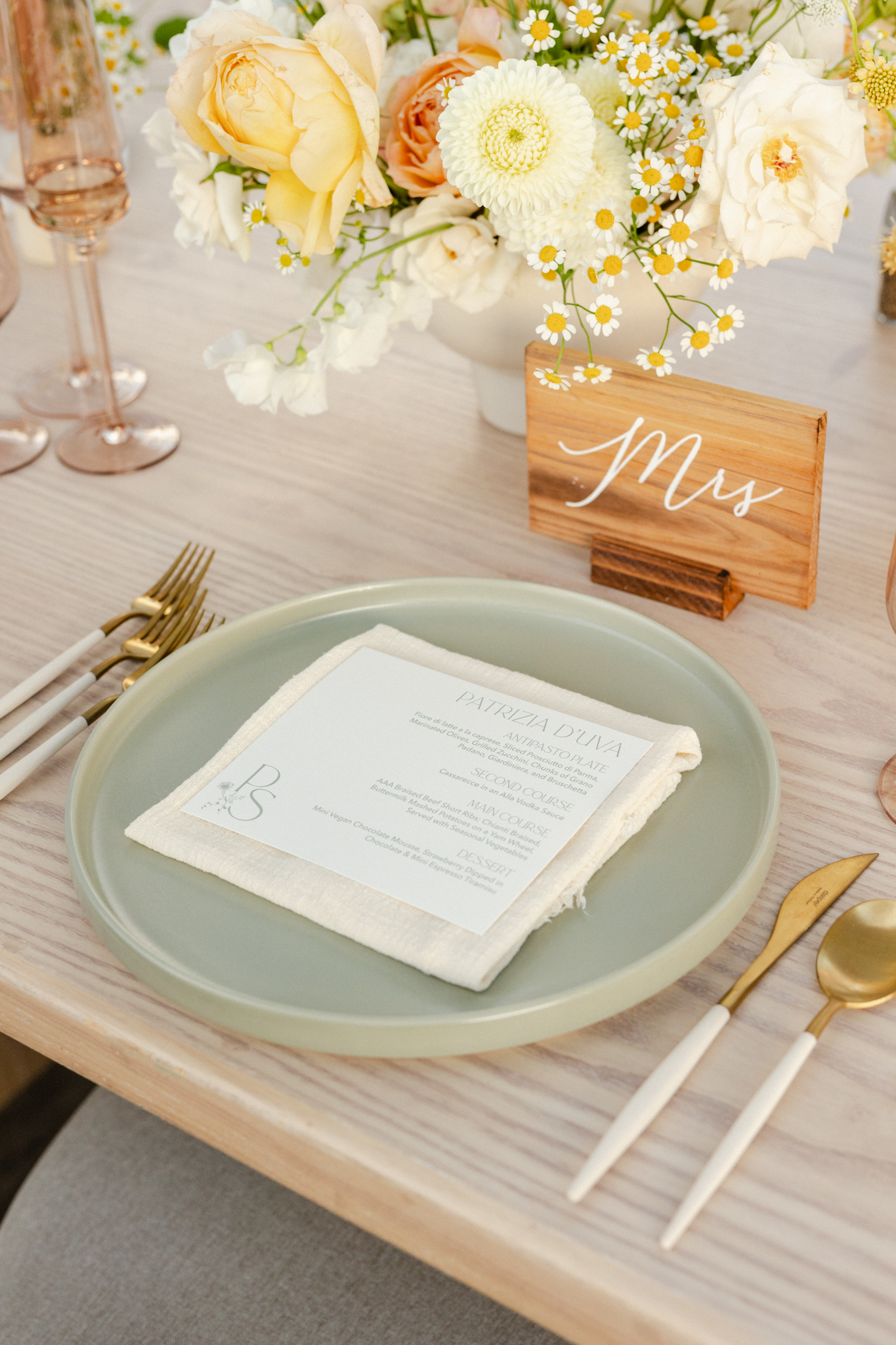 From champagne cheers in the morning to the heartfelt ceremony and lively reception, every detail of Patrizia and Stephen’s wedding was carefully curated and full of love. The serene beauty of the ceremony florals, which seemed to grow naturally from the earth, left us in awe. One particularly sweet moment was seeing Patrizia and Stephen’s dog quietly observing the ceremony, adding a touch of warmth to the day.