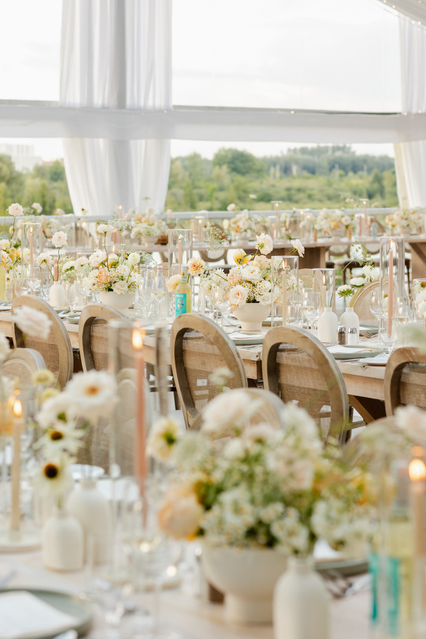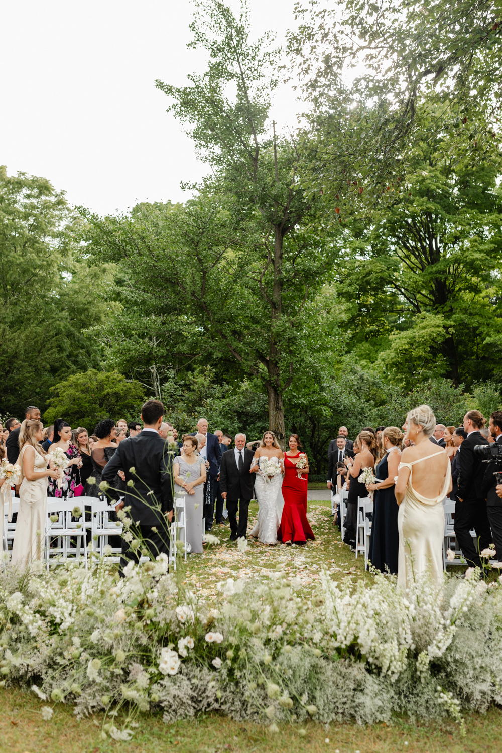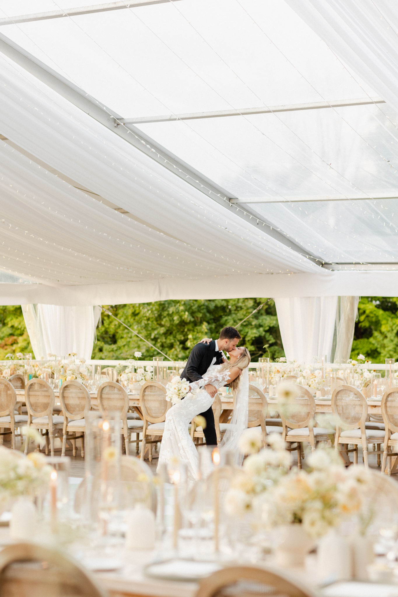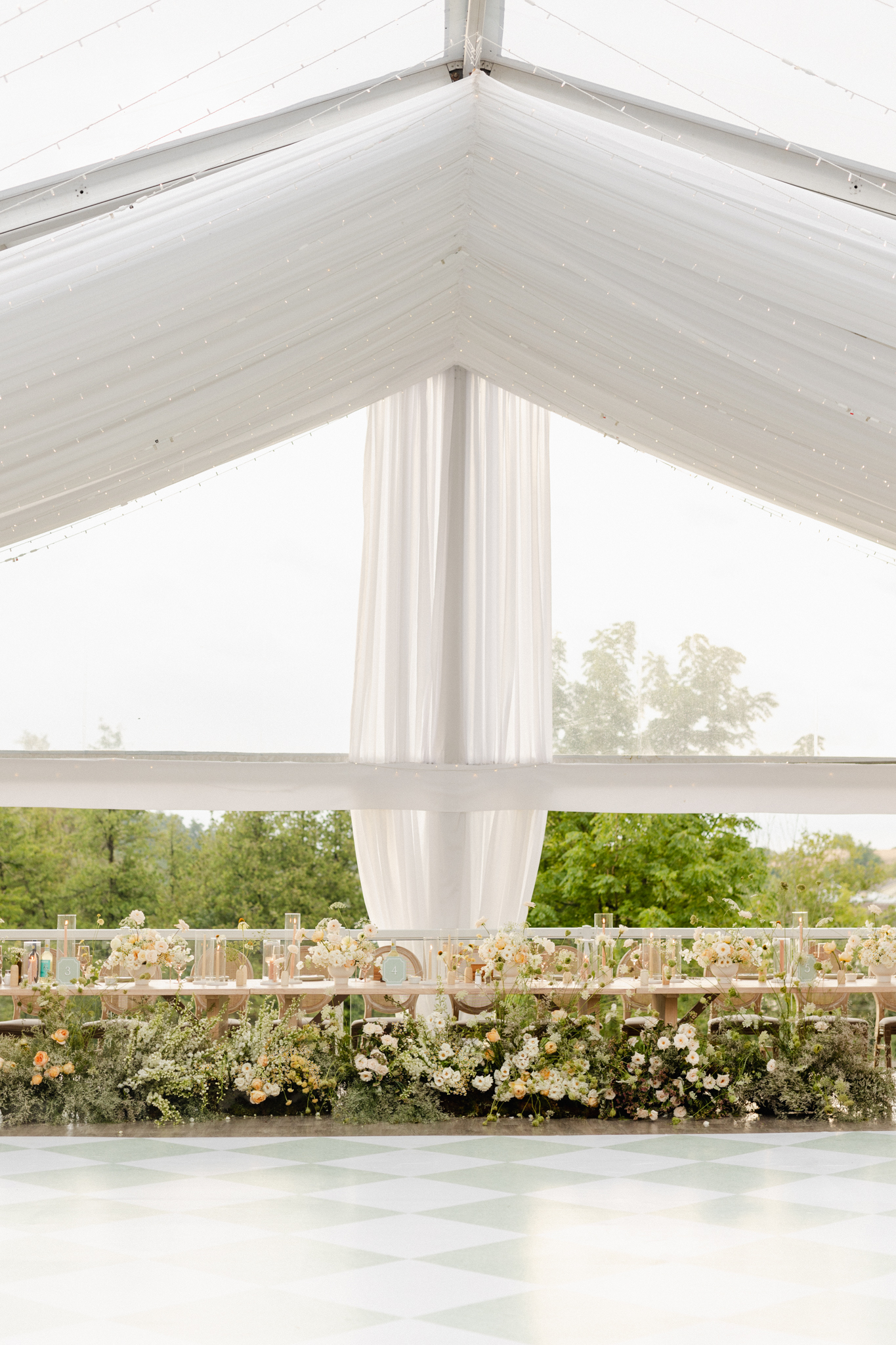 From champagne cheers in the morning to the heartfelt ceremony and lively reception, every detail of Patrizia and Stephen’s wedding was carefully curated and full of love. The serene beauty of the ceremony florals, which seemed to grow naturally from the earth, left us in awe. One particularly sweet moment was seeing Patrizia and Stephen’s dog quietly observing the ceremony, adding a touch of warmth to the day.