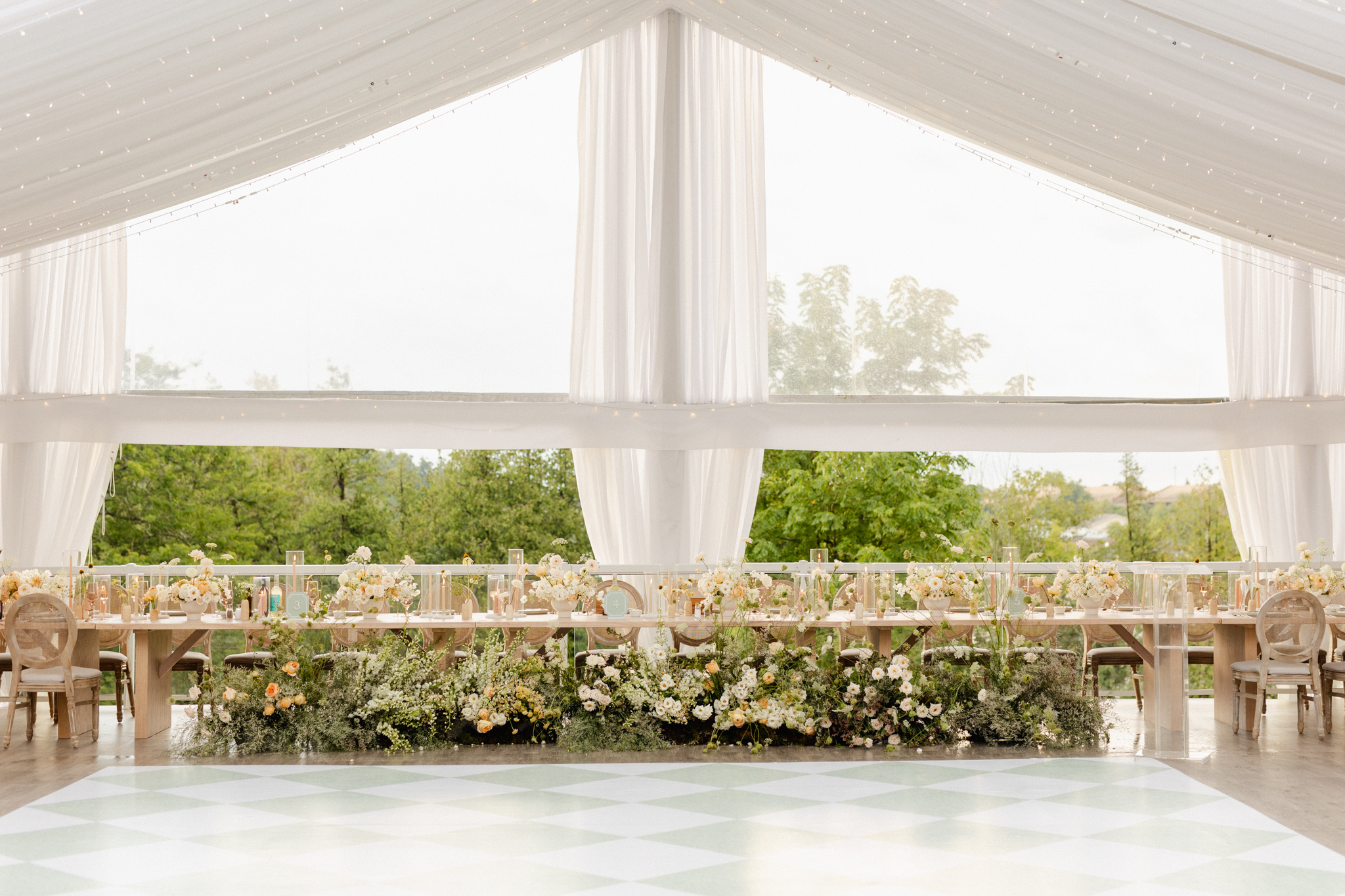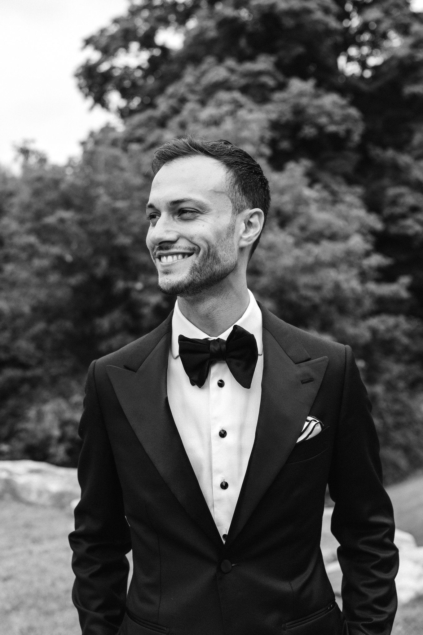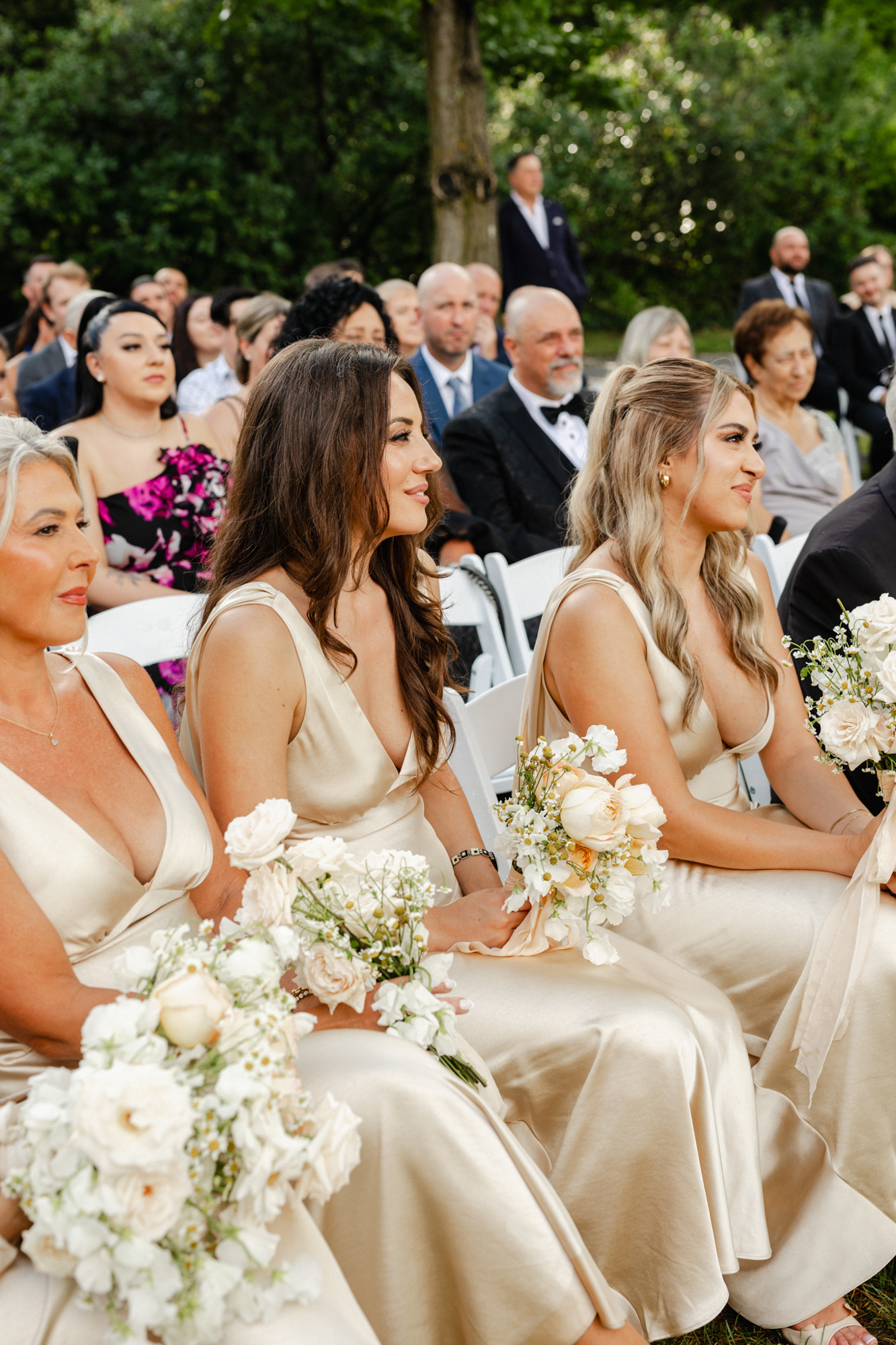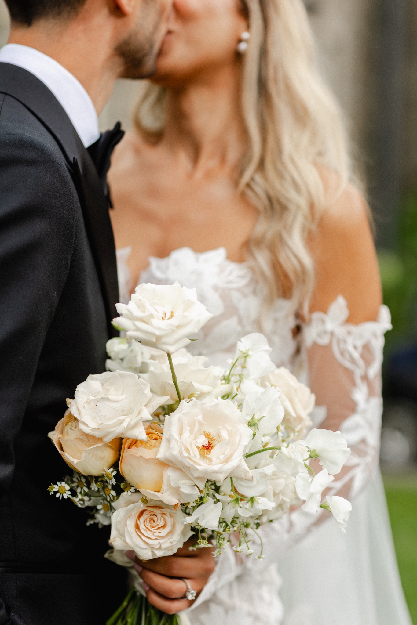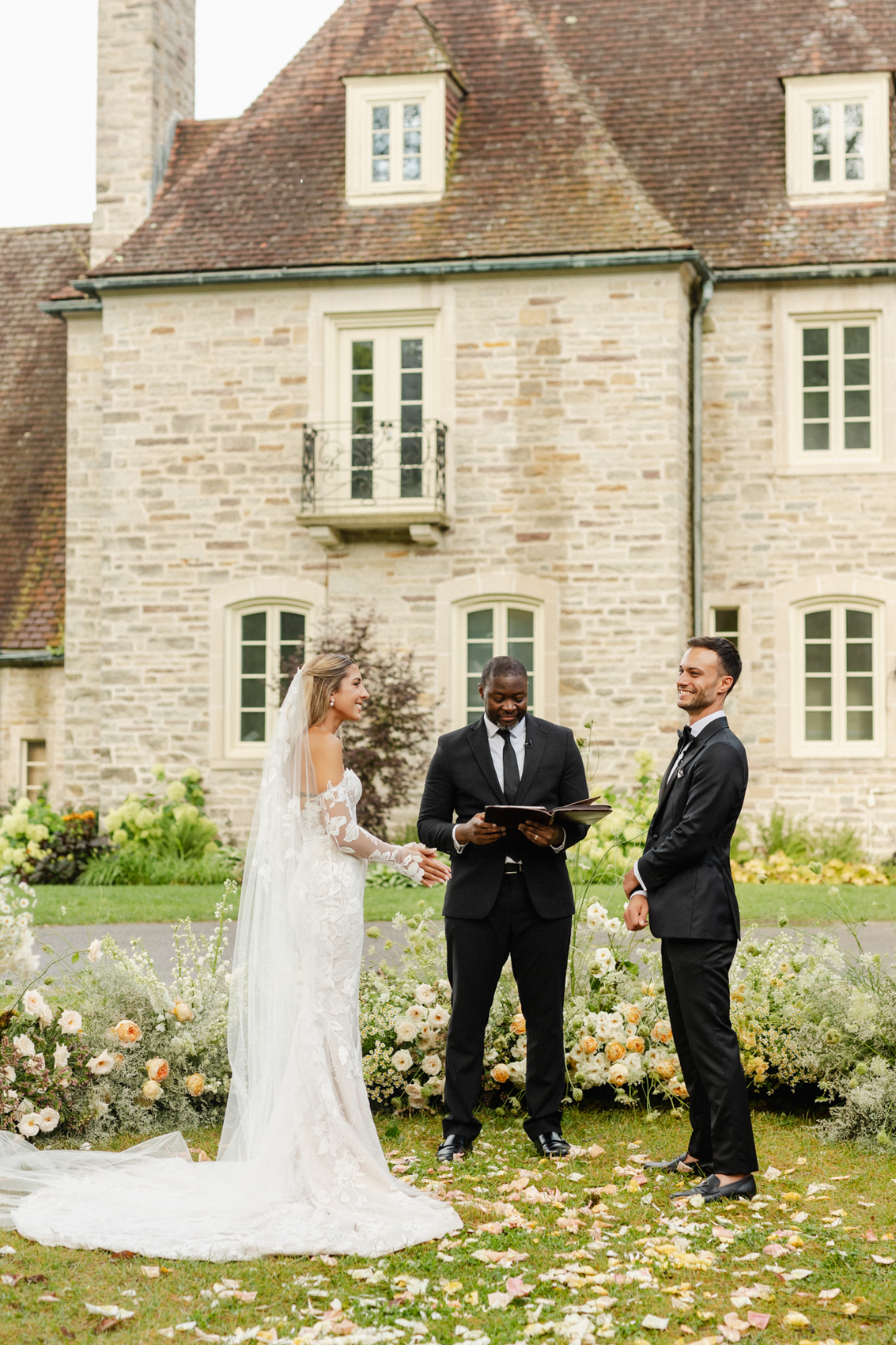 From champagne cheers in the morning to the heartfelt ceremony and lively reception, every detail of Patrizia and Stephen’s wedding was carefully curated and full of love. The serene beauty of the ceremony florals, which seemed to grow naturally from the earth, left us in awe. One particularly sweet moment was seeing Patrizia and Stephen’s dog quietly observing the ceremony, adding a touch of warmth to the day.