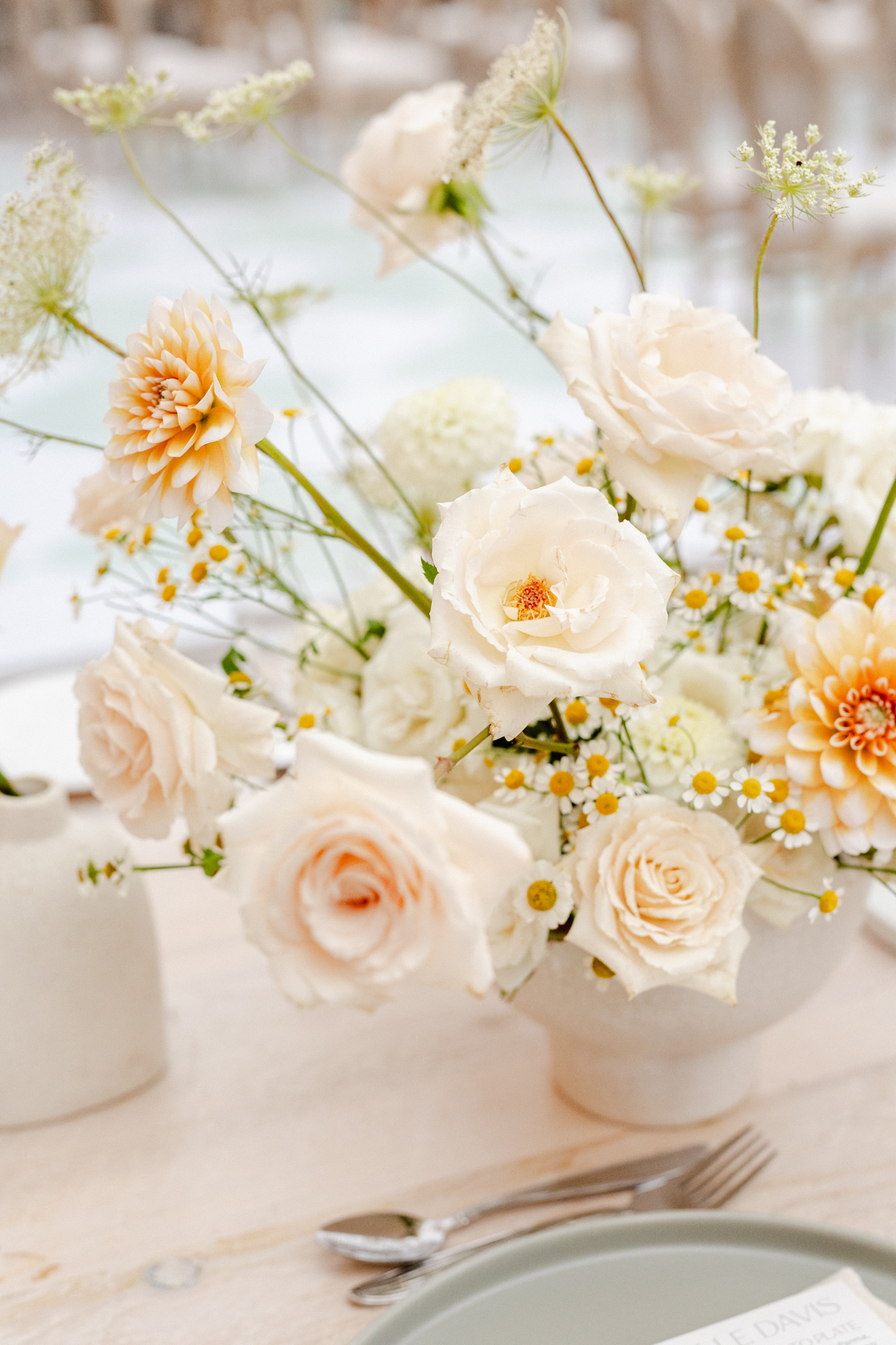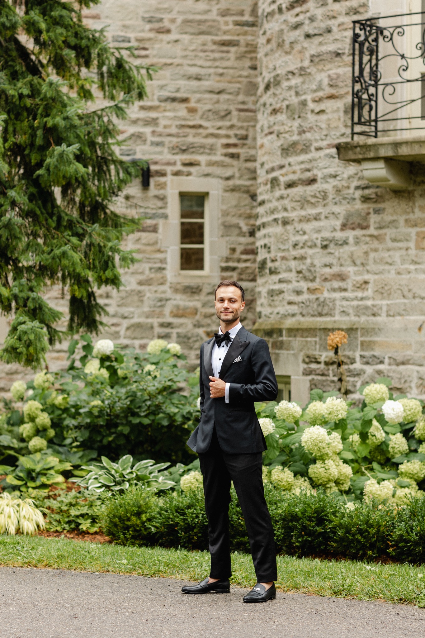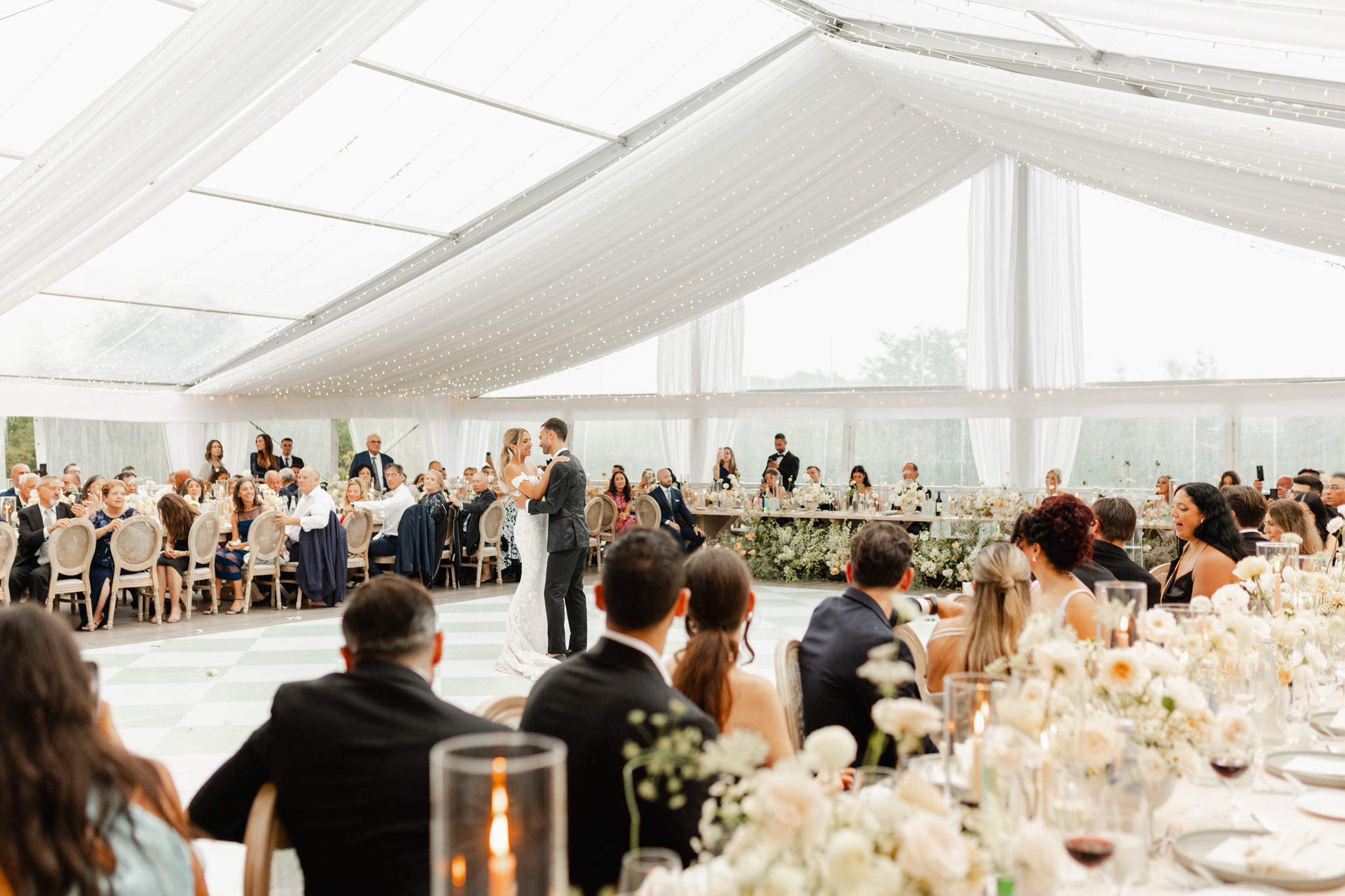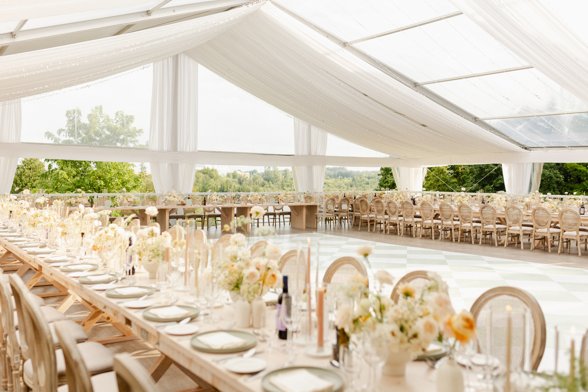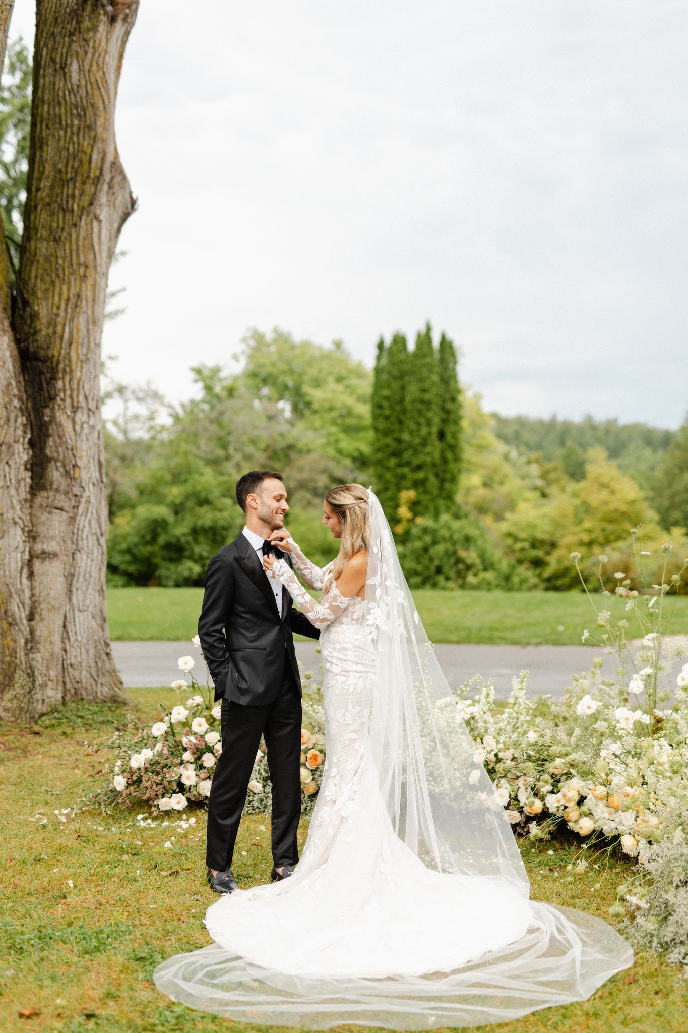 From champagne cheers in the morning to the heartfelt ceremony and lively reception, every detail of Patrizia and Stephen’s wedding was carefully curated and full of love. The serene beauty of the ceremony florals, which seemed to grow naturally from the earth, left us in awe. One particularly sweet moment was seeing Patrizia and Stephen’s dog quietly observing the ceremony, adding a touch of warmth to the day.