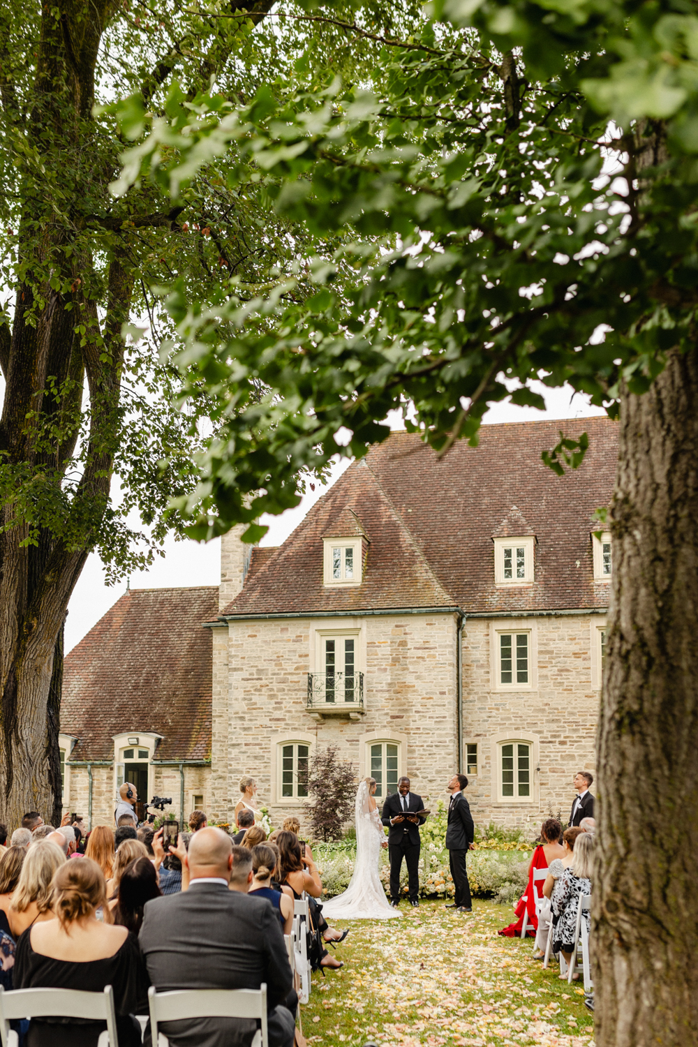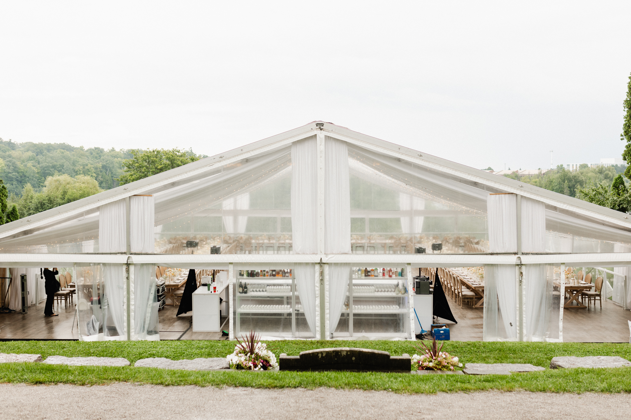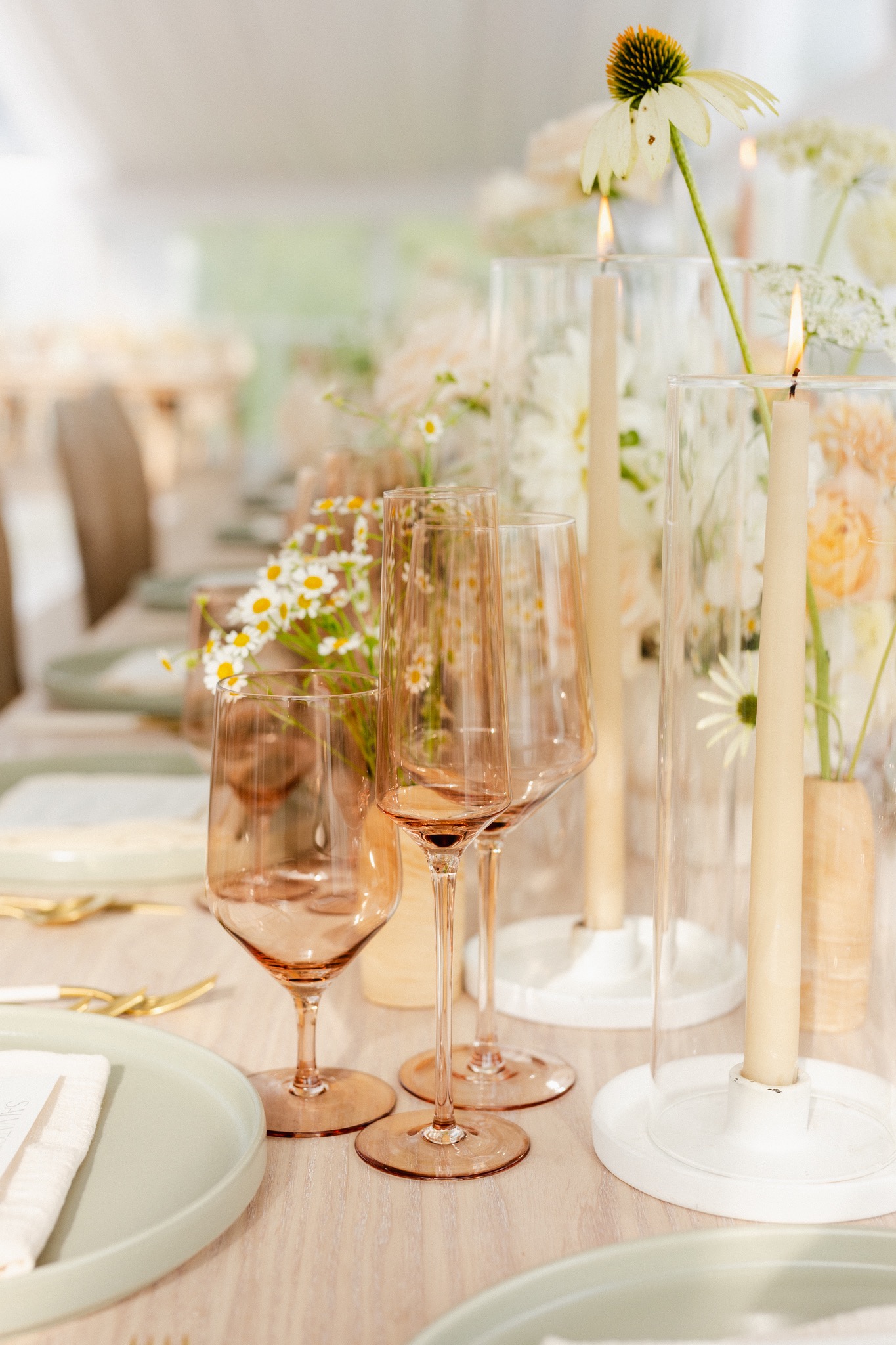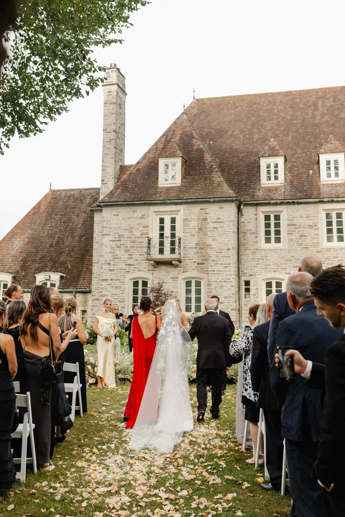 From champagne cheers in the morning to the heartfelt ceremony and lively reception, every detail of Patrizia and Stephen’s wedding was carefully curated and full of love. The serene beauty of the ceremony florals, which seemed to grow naturally from the earth, left us in awe. One particularly sweet moment was seeing Patrizia and Stephen’s dog quietly observing the ceremony, adding a touch of warmth to the day.