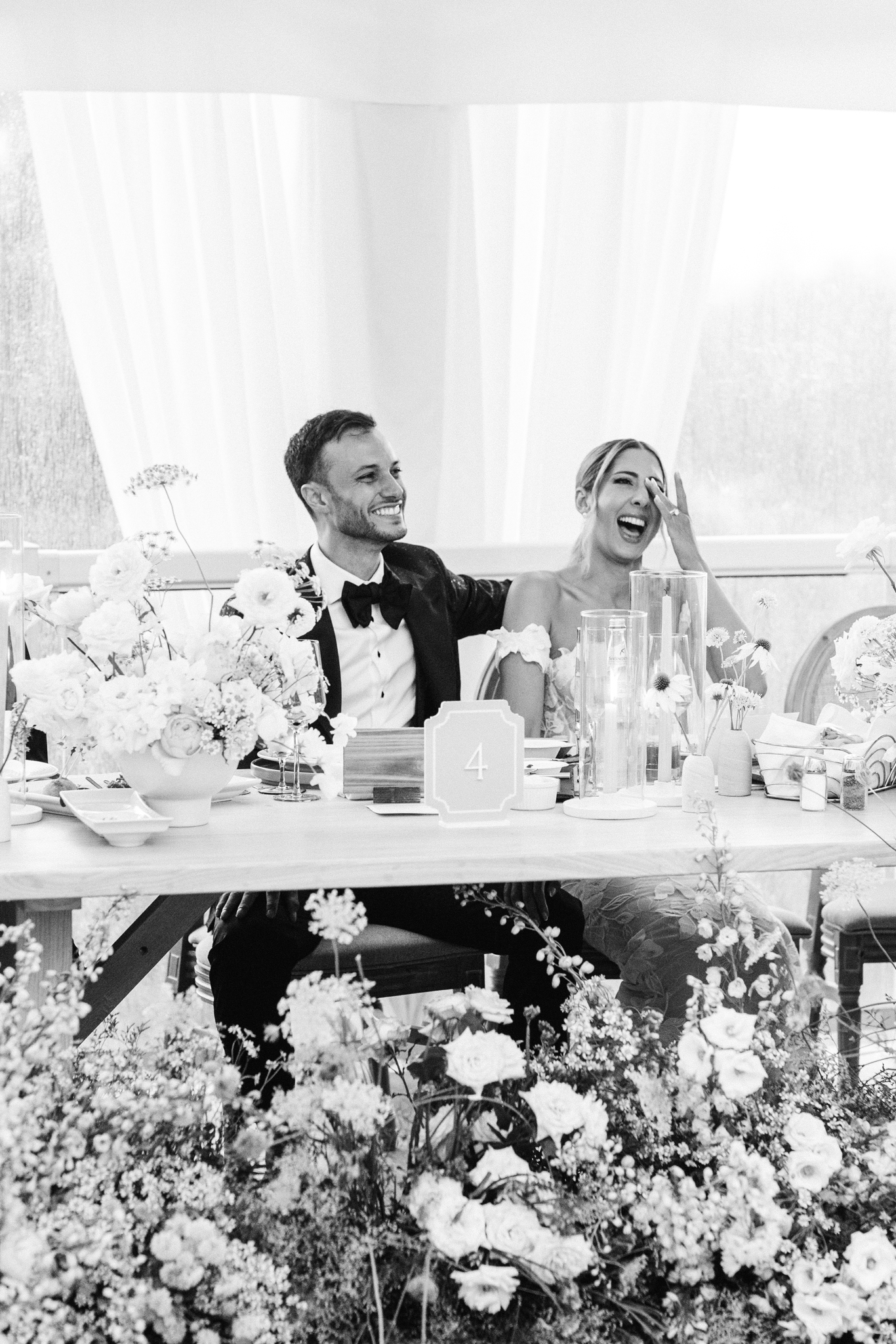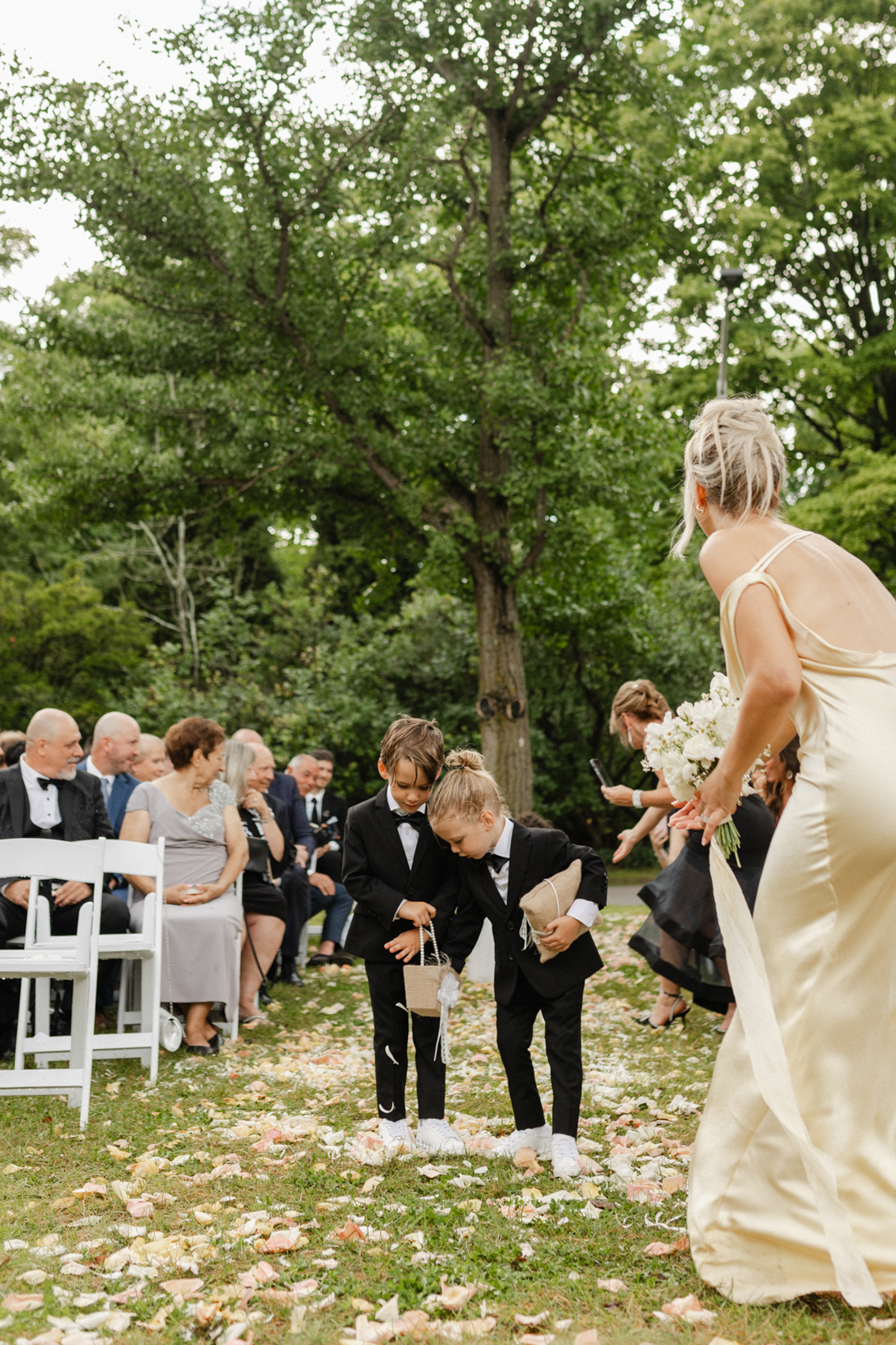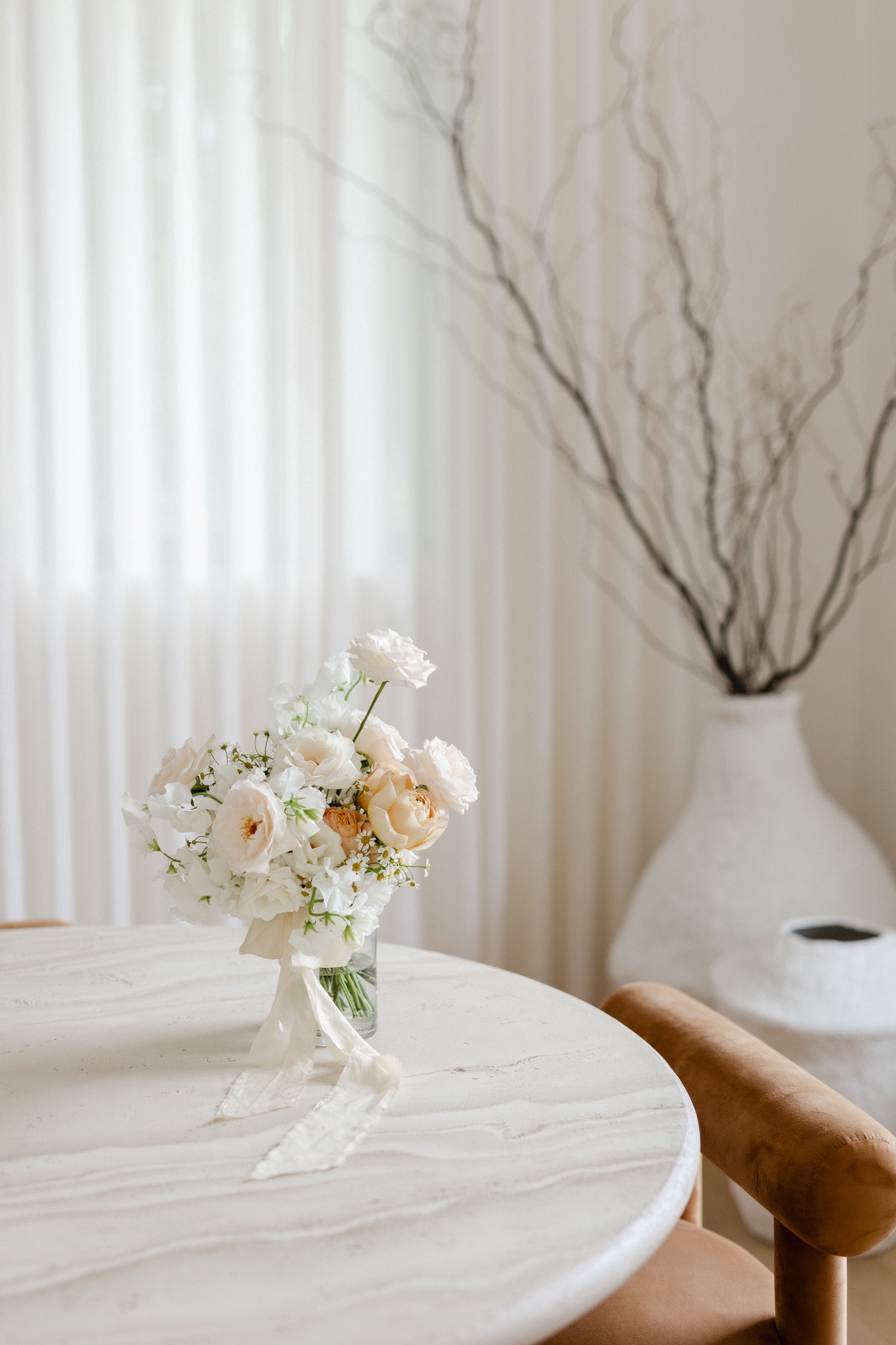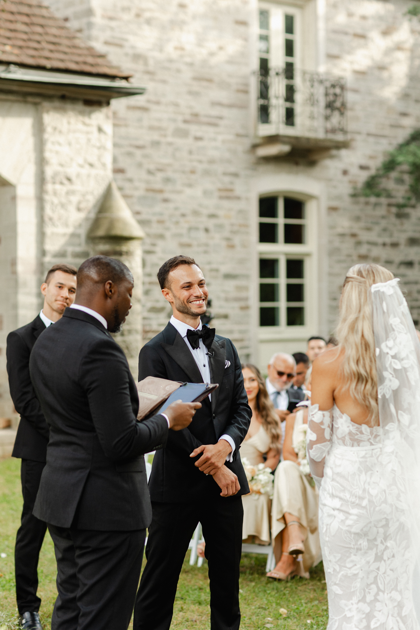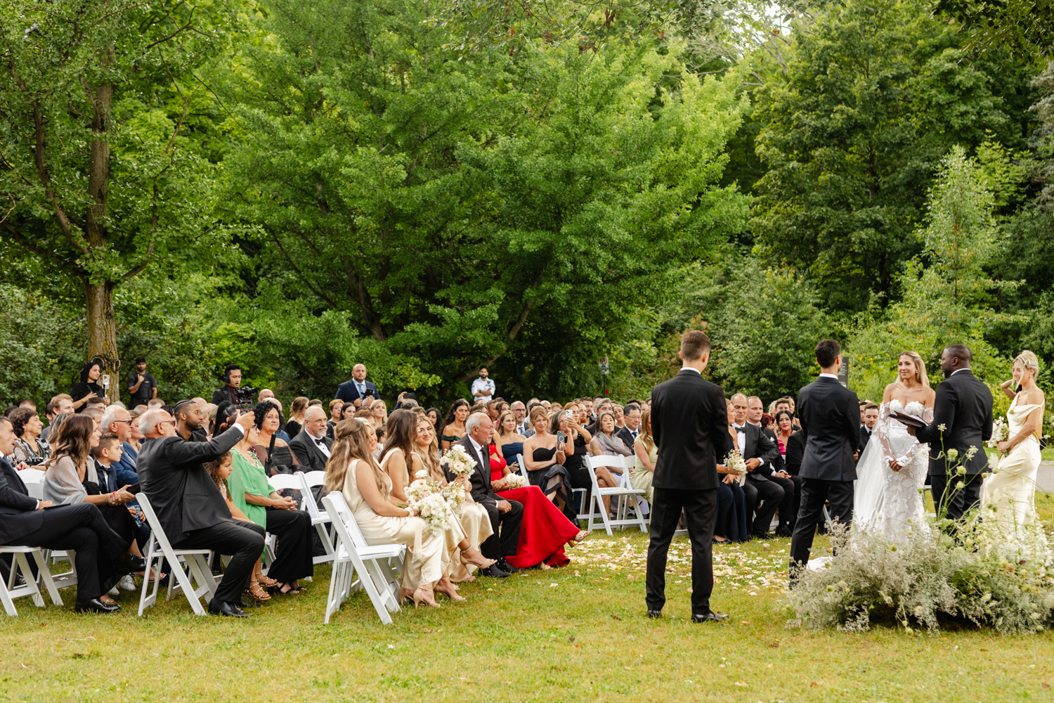 From champagne cheers in the morning to the heartfelt ceremony and lively reception, every detail of Patrizia and Stephen’s wedding was carefully curated and full of love. The serene beauty of the ceremony florals, which seemed to grow naturally from the earth, left us in awe. One particularly sweet moment was seeing Patrizia and Stephen’s dog quietly observing the ceremony, adding a touch of warmth to the day.