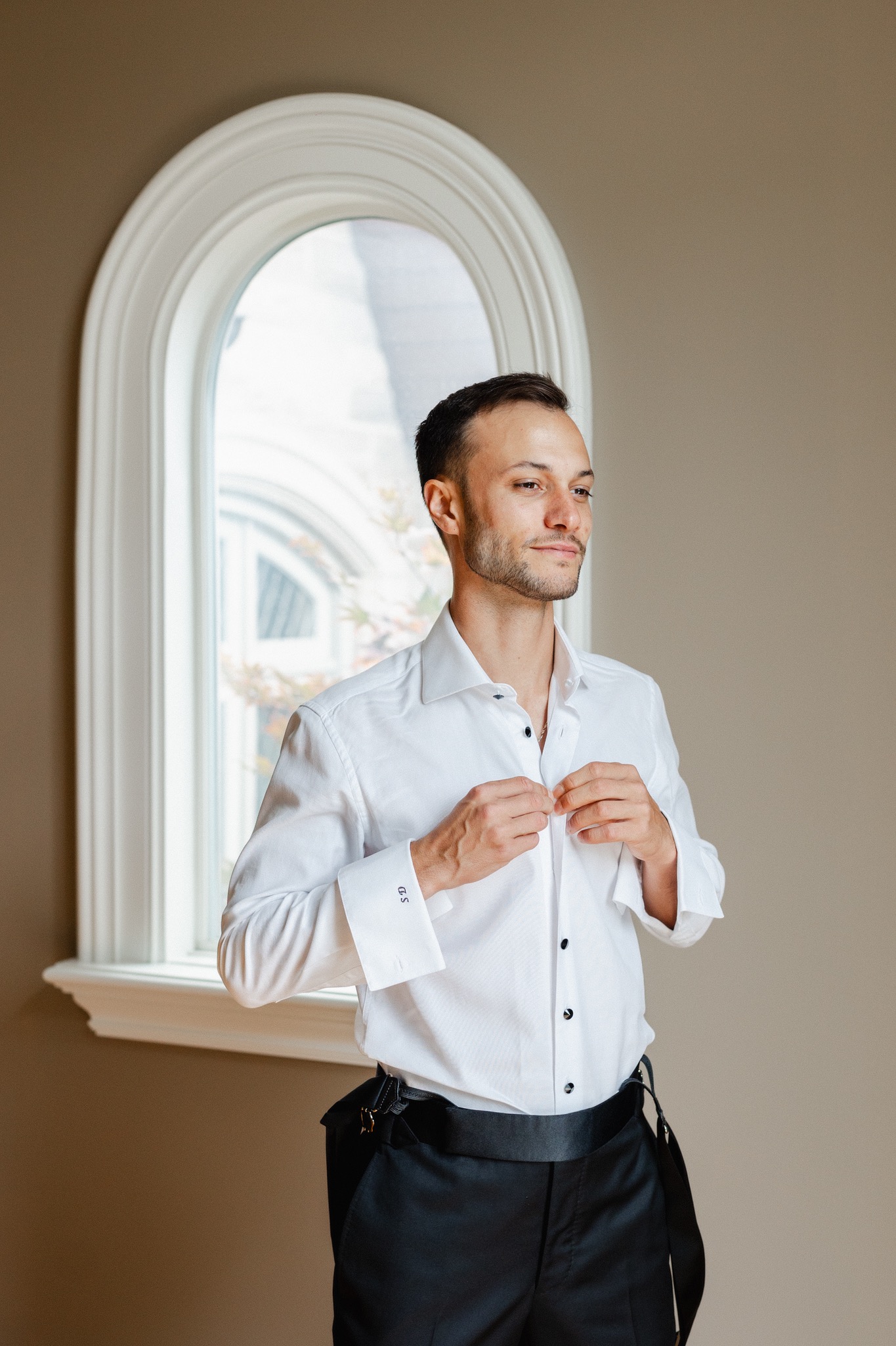 Patrizia and Stephen’s wedding day was nothing short of perfection. Both got ready in their respective family homes, surrounded by loved ones. Patrizia shared the morning with her bridesmaids, mom, and sisters, all dressed in chic white pajamas, toasting with champagne and joyful laughter. Fun fact: We had the privilege of capturing her sister’s wedding in Greece back in 2018, making this celebration all the more meaningful!
