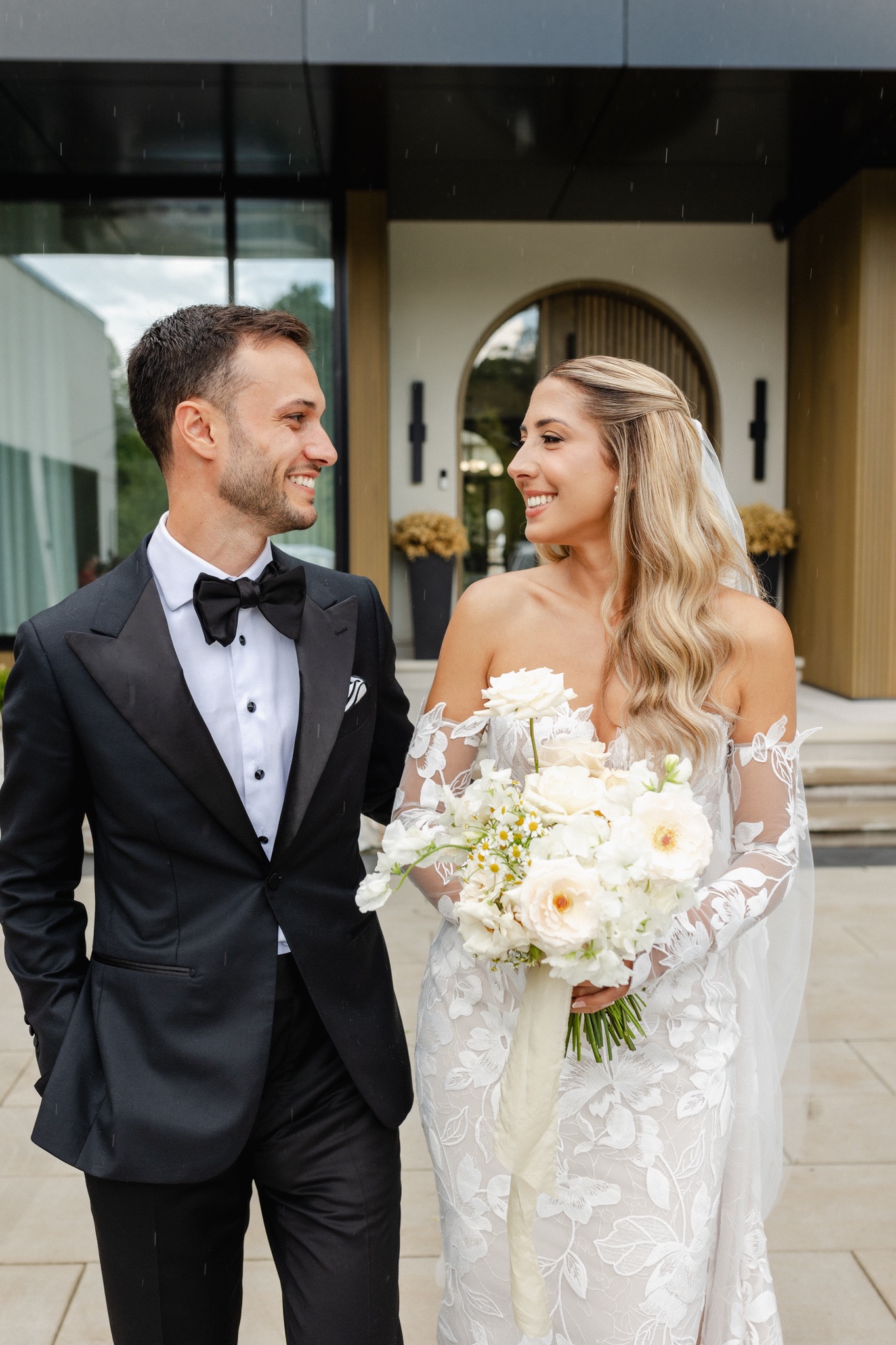 From champagne cheers in the morning to the heartfelt ceremony and lively reception, every detail of Patrizia and Stephen’s wedding was carefully curated and full of love.