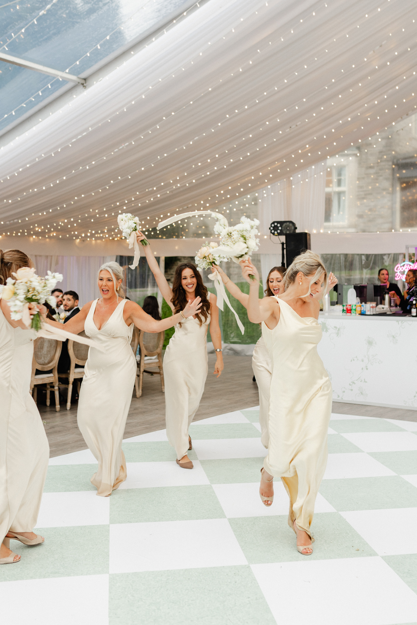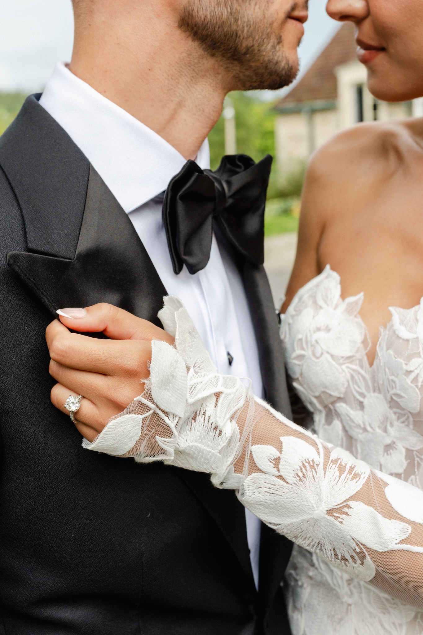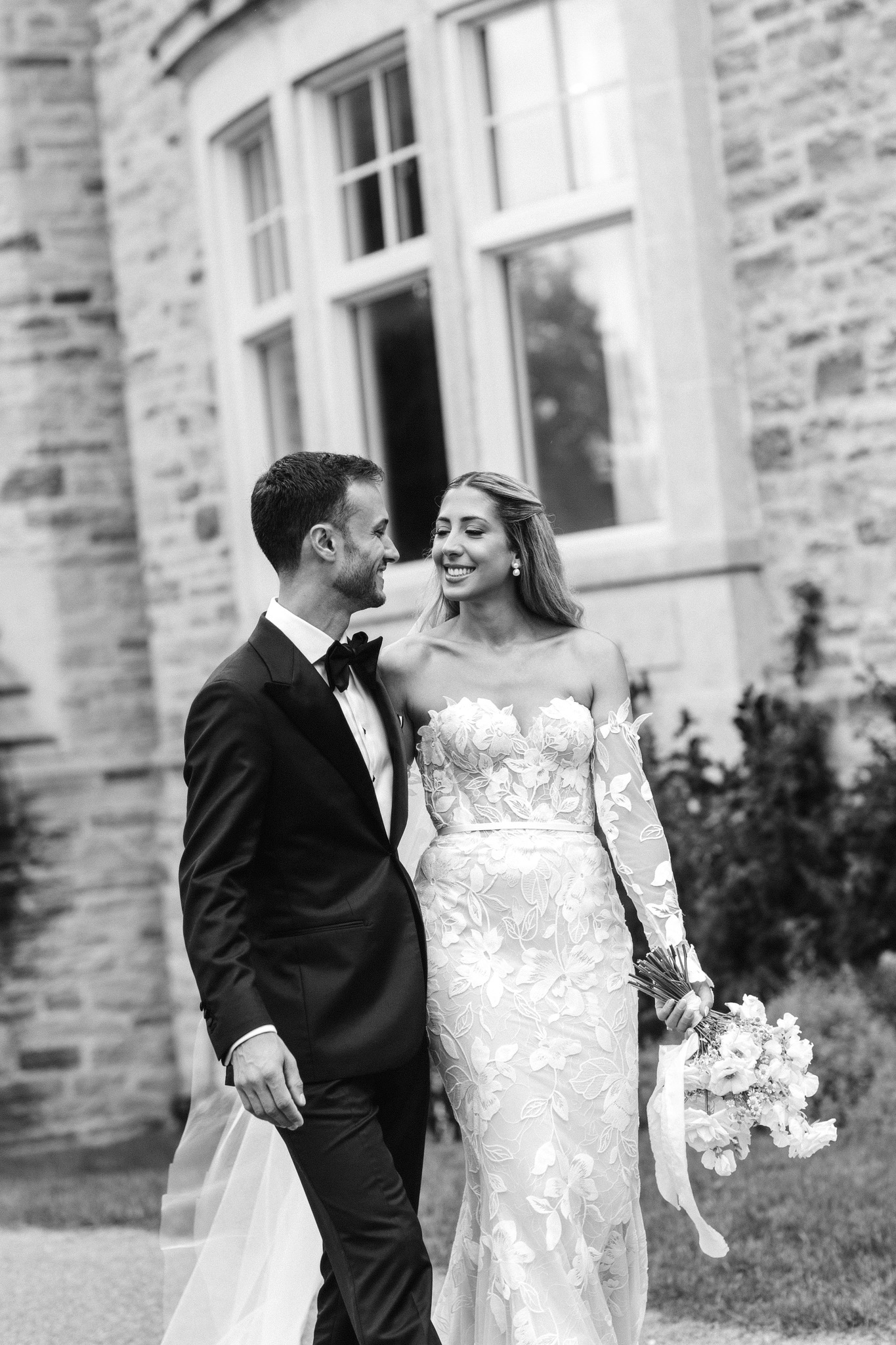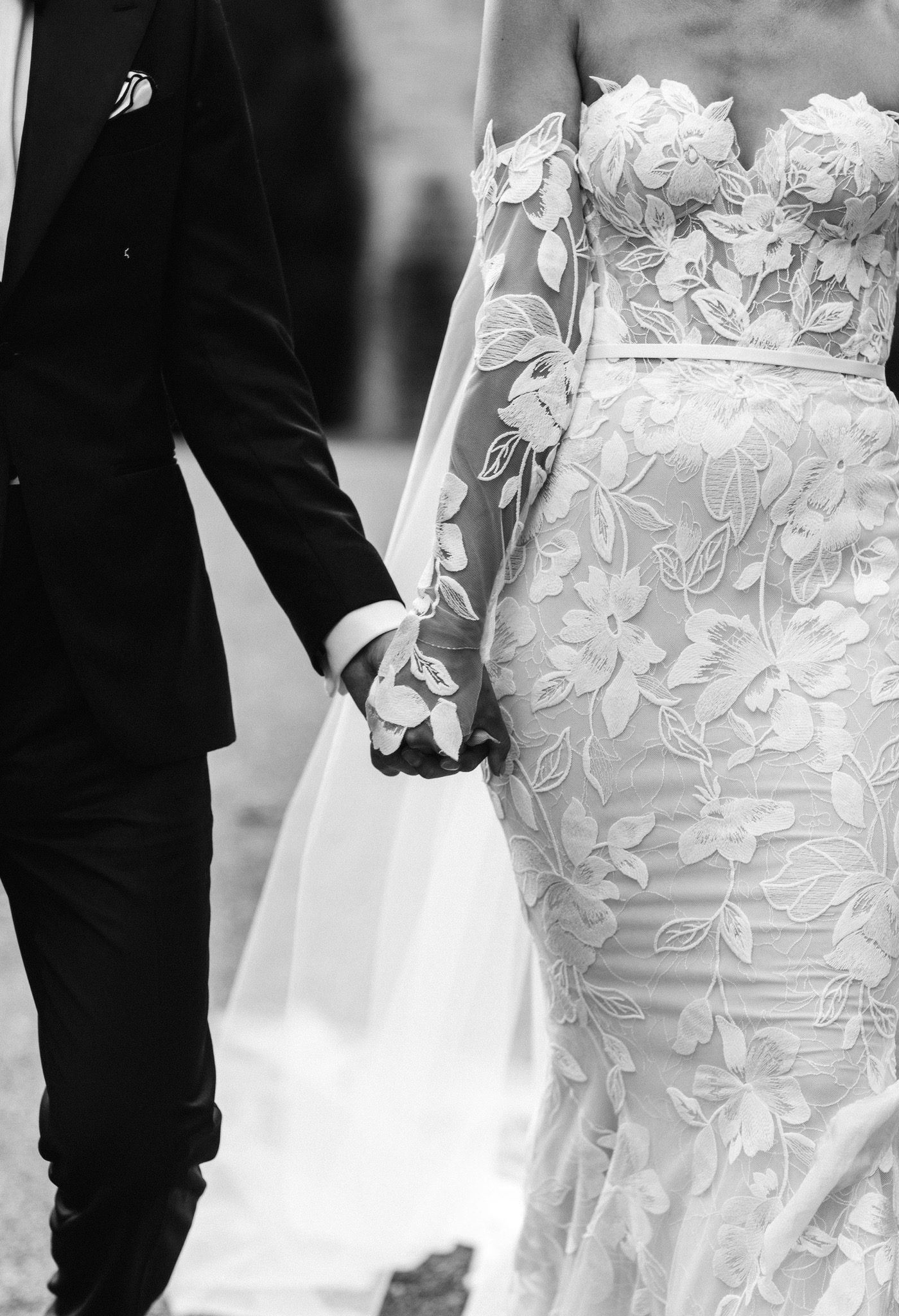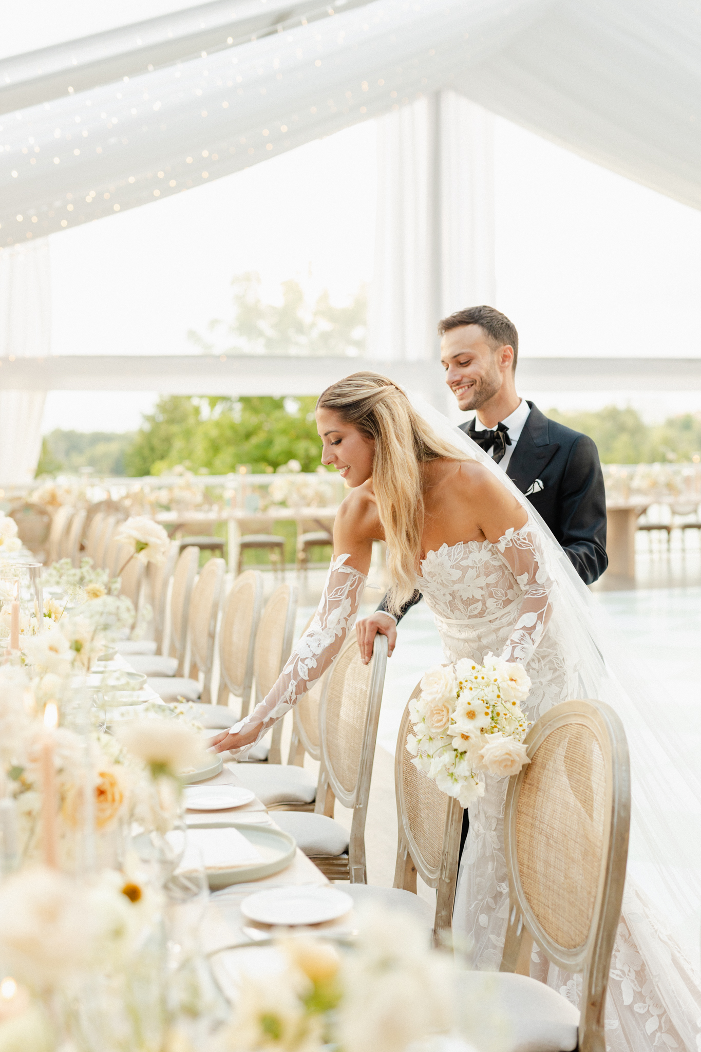 The reception was held in a gorgeous tent behind Eaton Hall, with cocktails served inside the venue. Patrizia looked radiant in her custom Mira Zwillinger gown, the Sonil design, which featured intricate detailing and elegant gown sleeves that felt like a modern fairy tale.