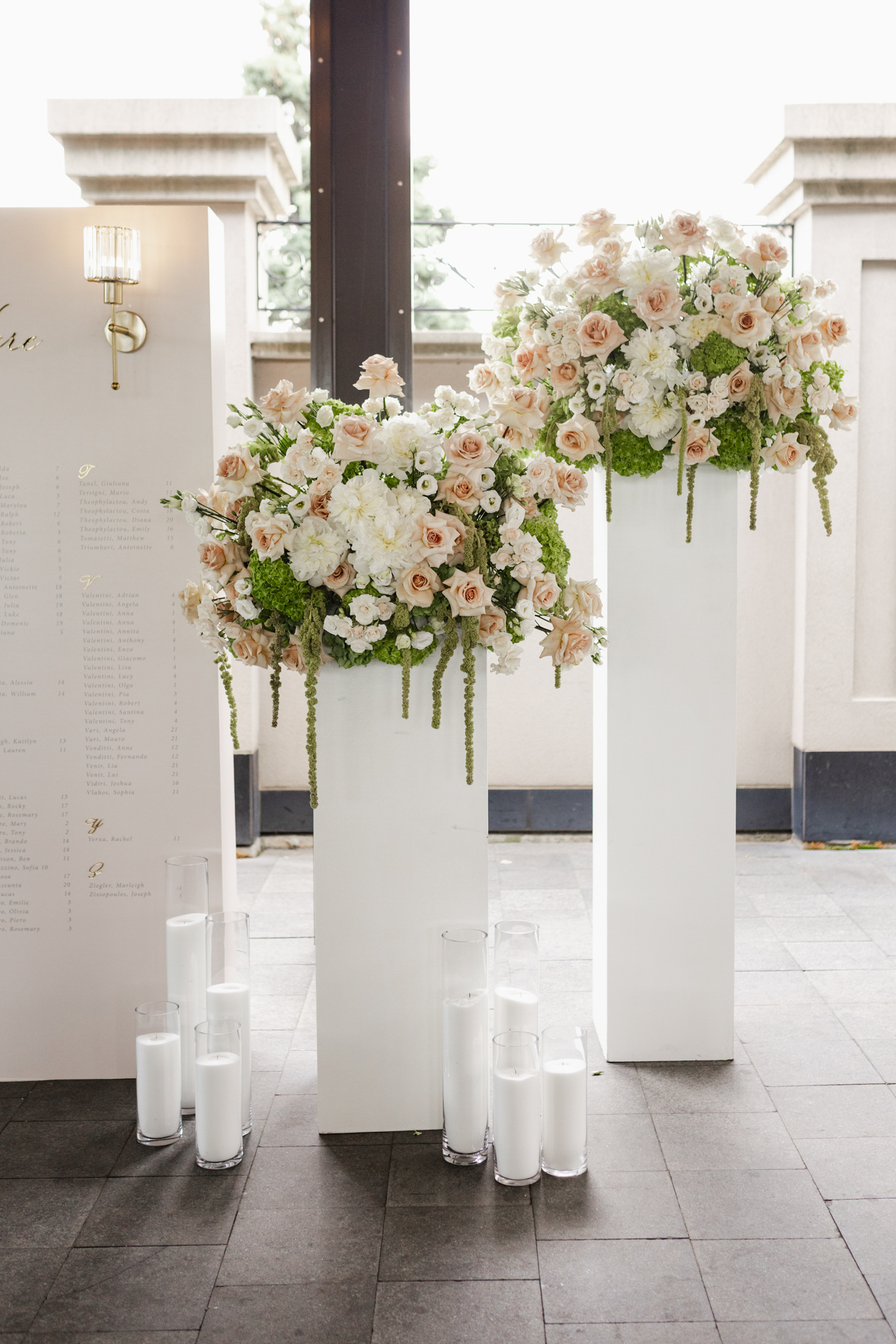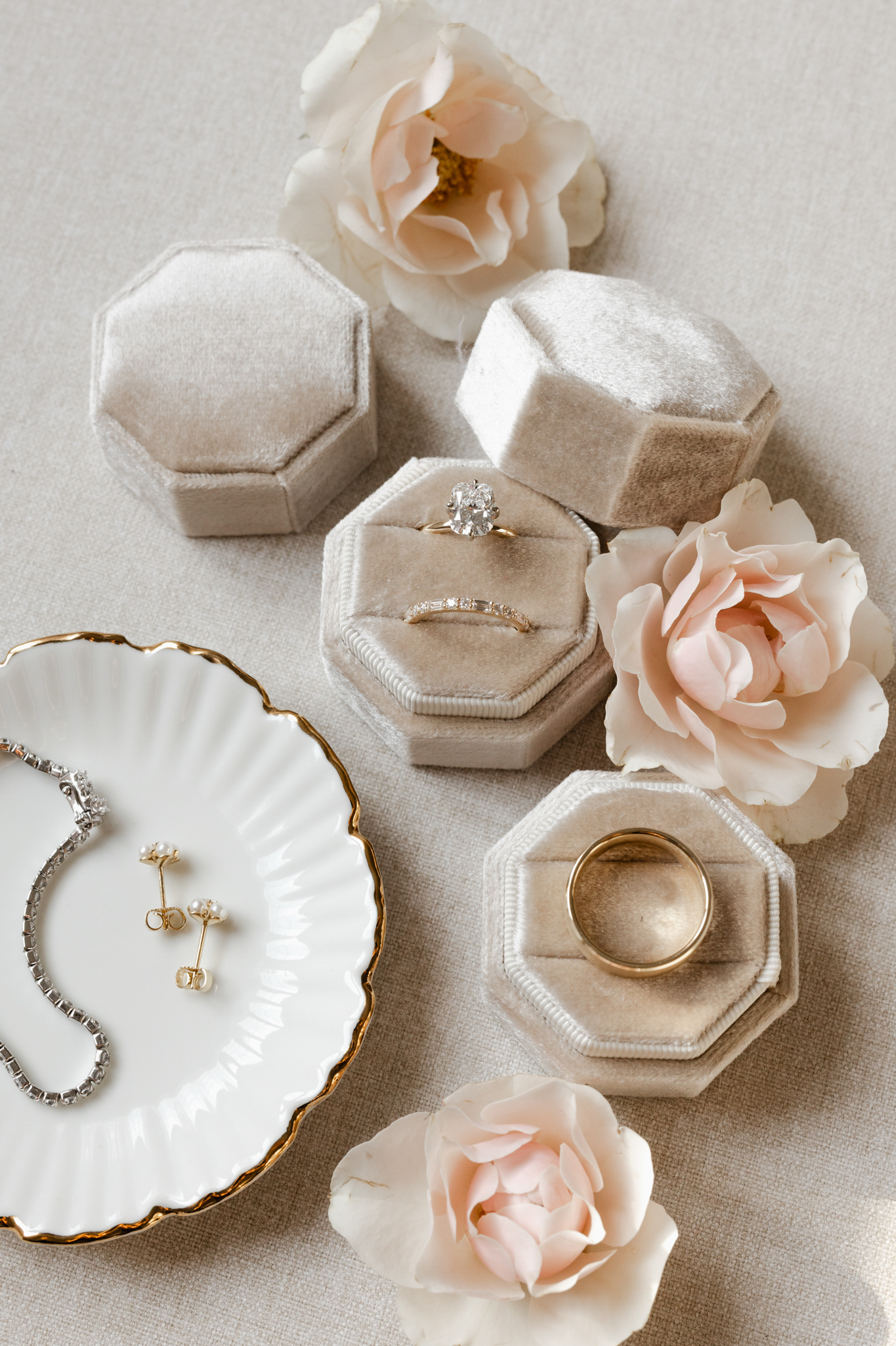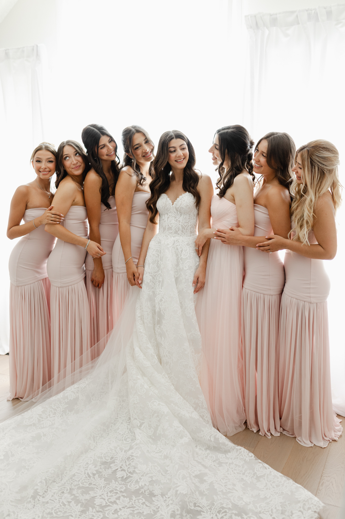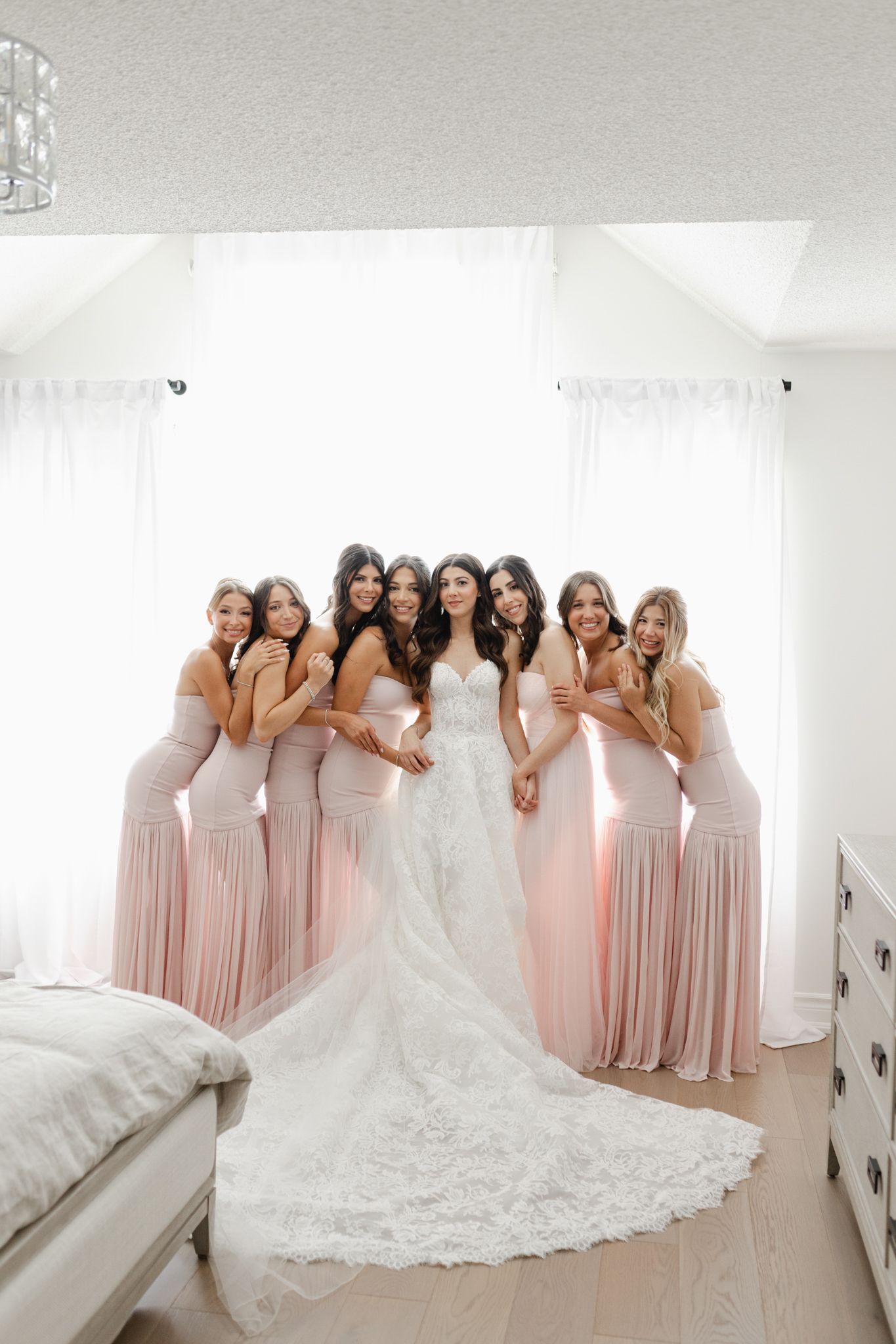 Emily’s bridal morning was the perfect introduction to the glamour that would unfold throughout the day. The moment we walked into her suite, we were greeted by a breathtaking floral-wrapped staircase, a full installation of soft pinks, cream blooms and delicate greenery. It instantly transformed her morning into a Vogue-worthy scene, giving us endless opportunities for editorial bridal portraits.