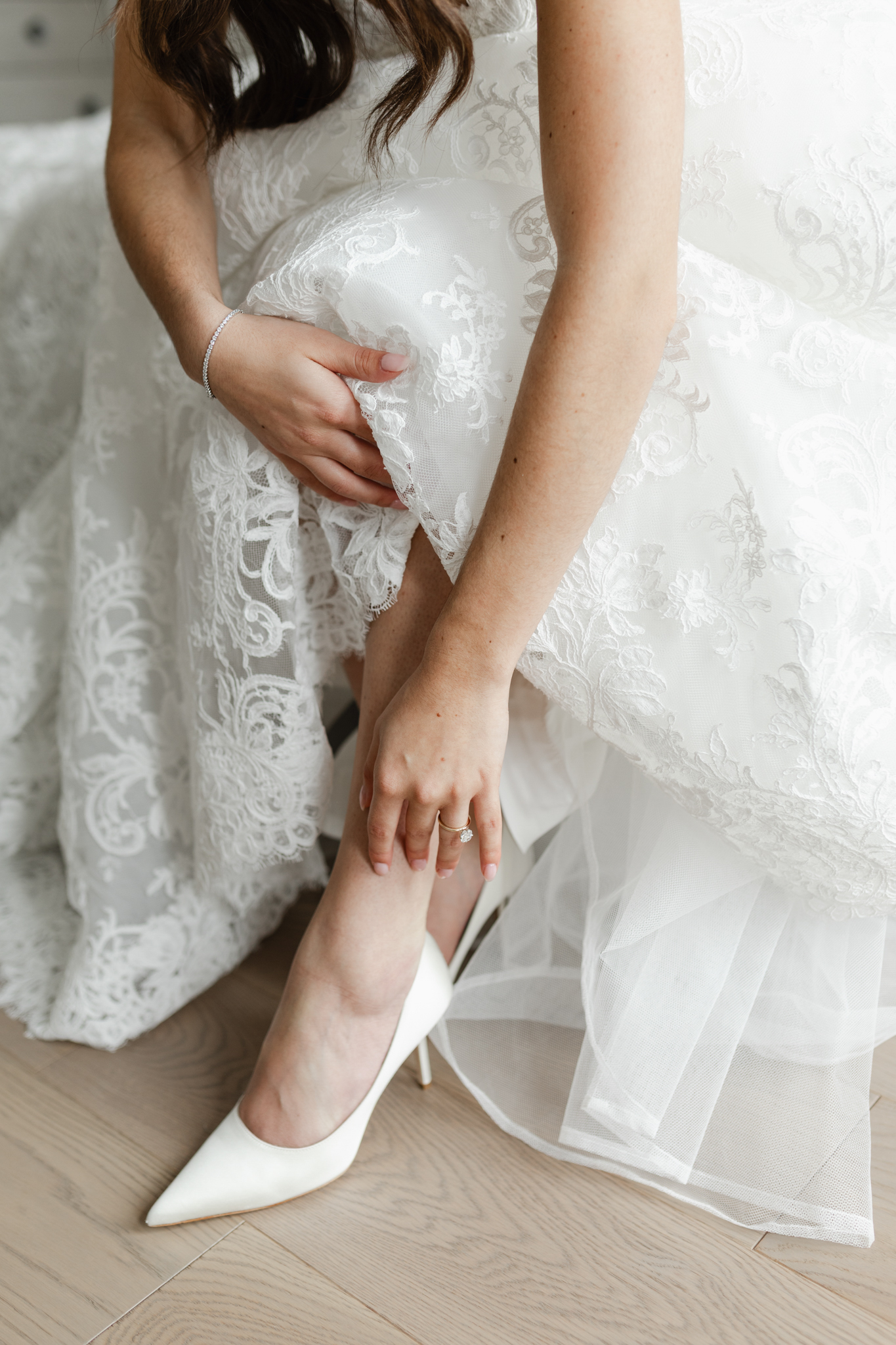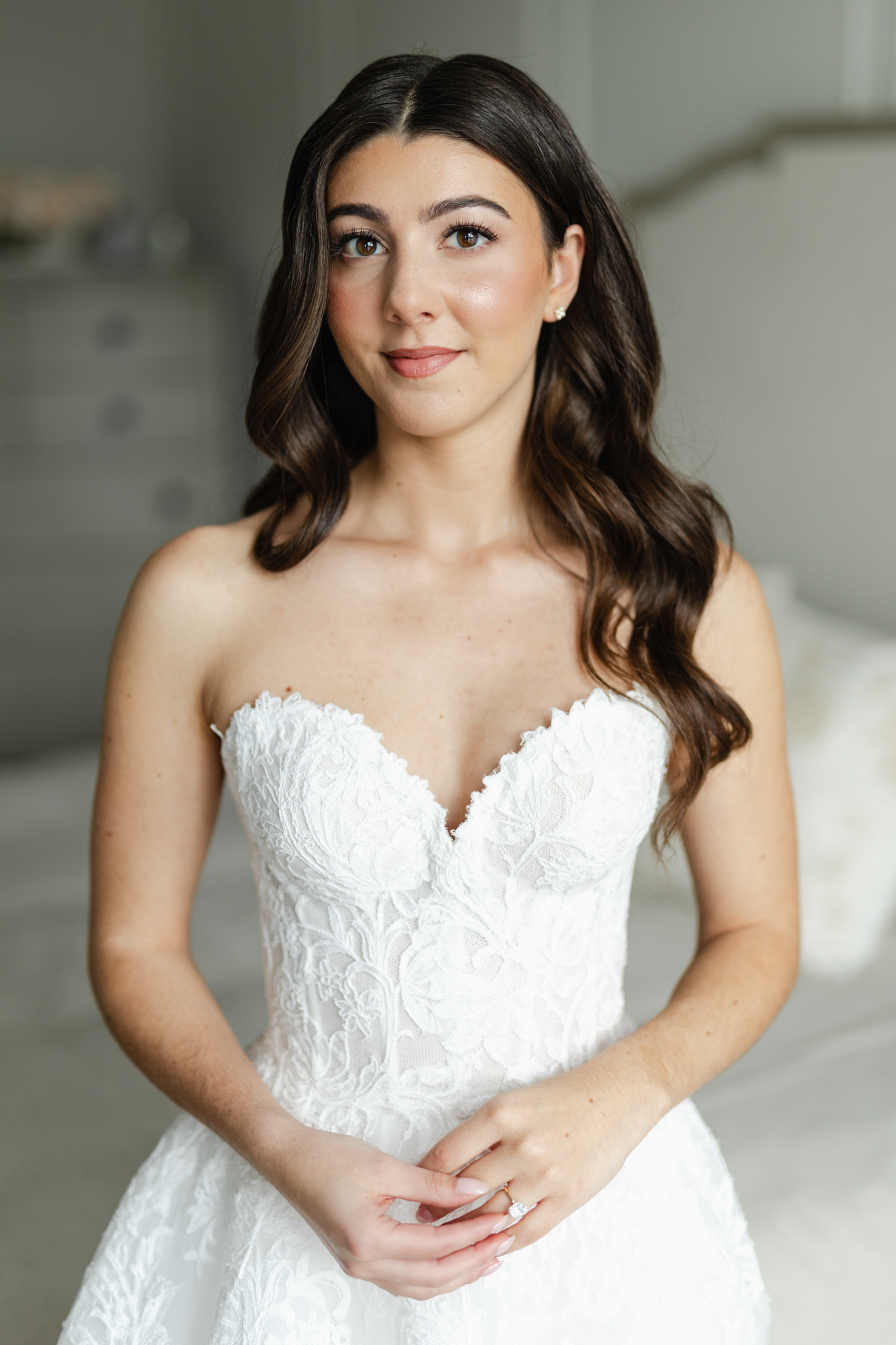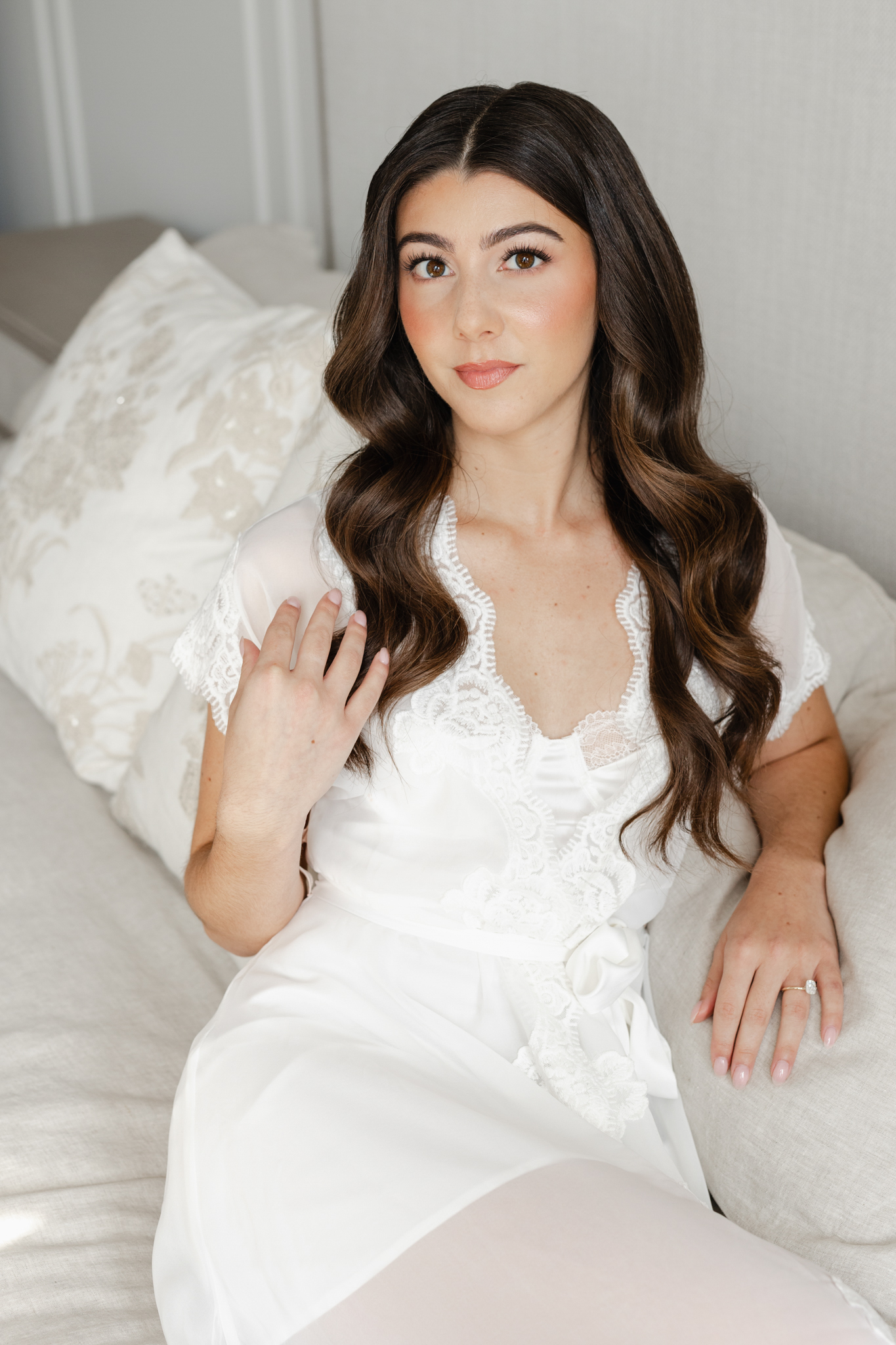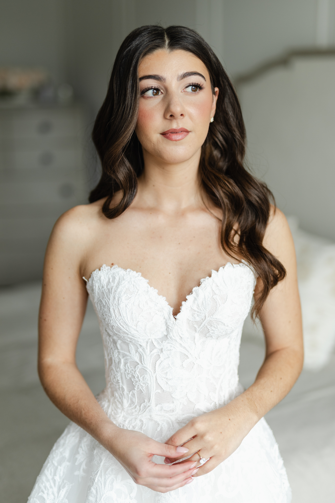 Her beauty look was incredibly natural with soft, luminous skin, barely-there blush, and an effortless glow. Paired with lace details, classic pearls and an ambiance filled with quiet. Emily’s morning truly set the tone for a sophisticated Toronto wedding day.