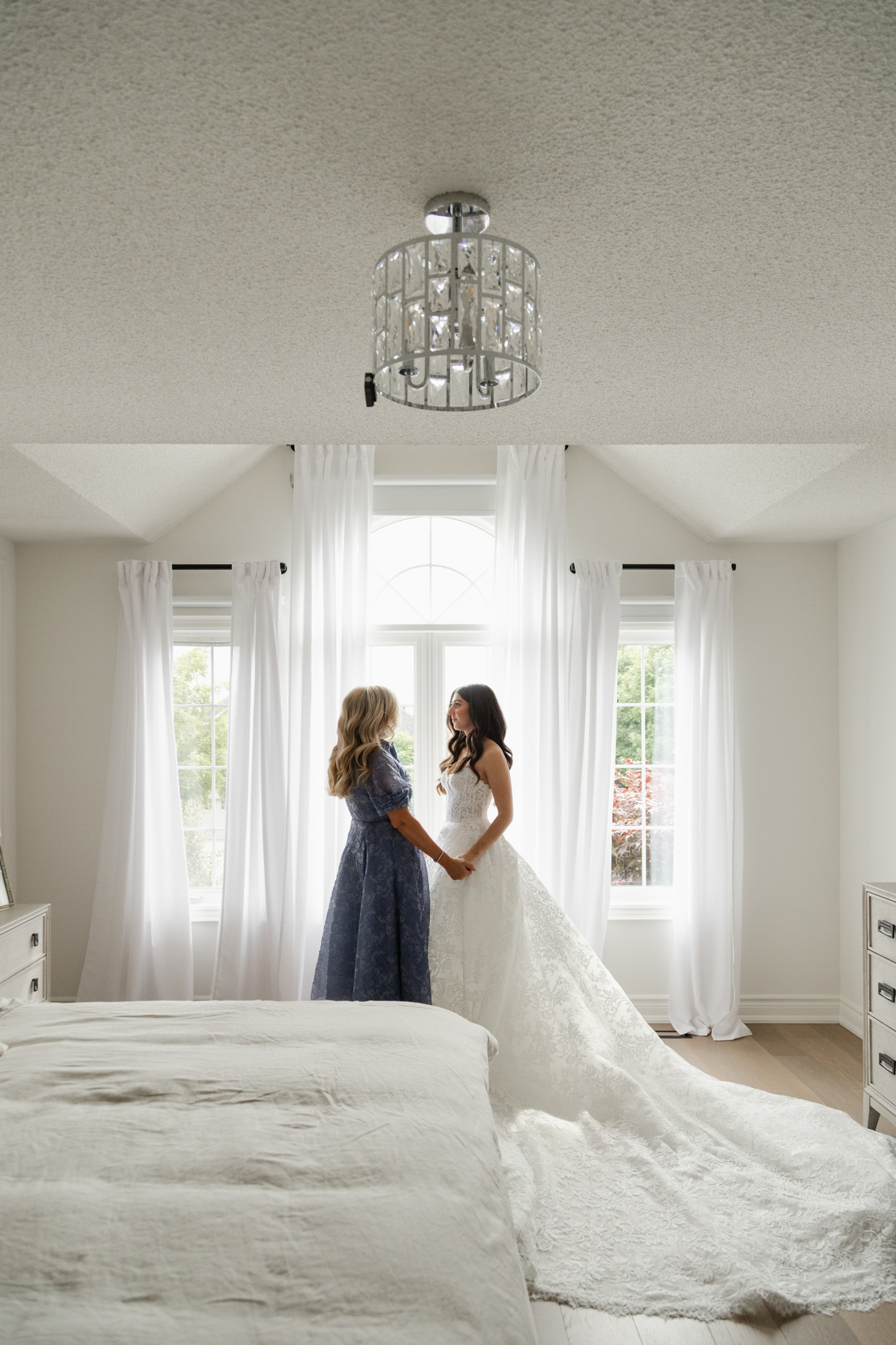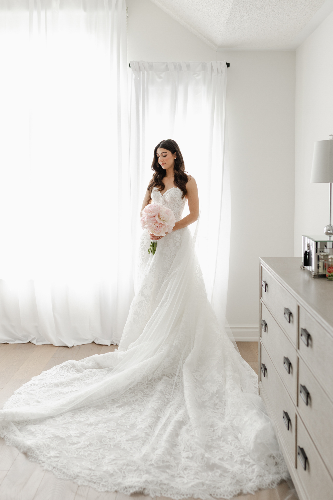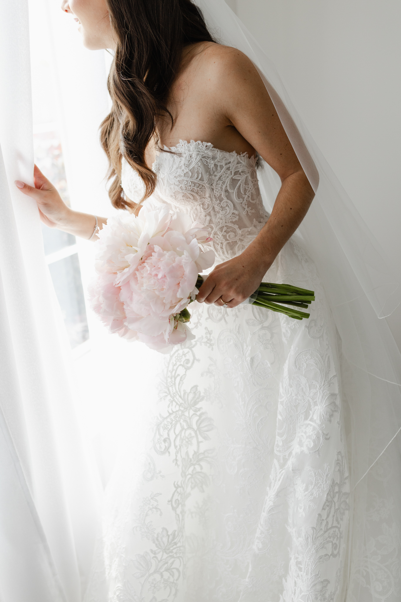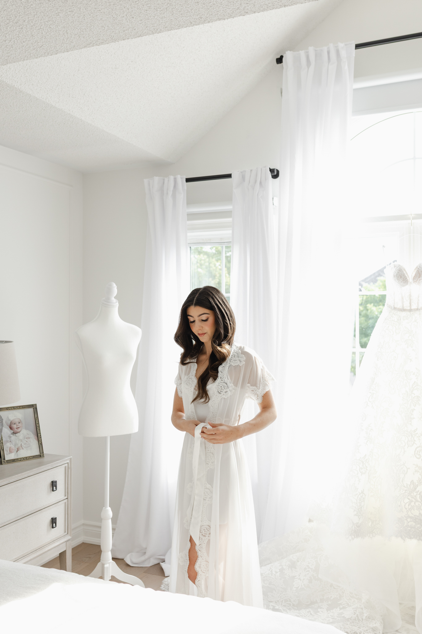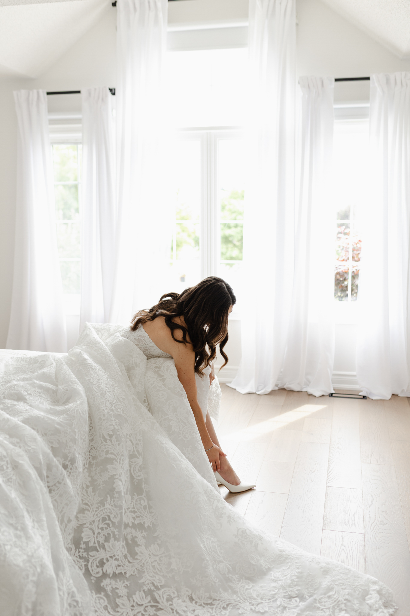 Her beauty look was incredibly natural with soft, luminous skin, barely-there blush, and an effortless glow. Paired with lace details, classic pearls and an ambiance filled with quiet. Emily’s morning truly set the tone for a sophisticated Toronto wedding day.