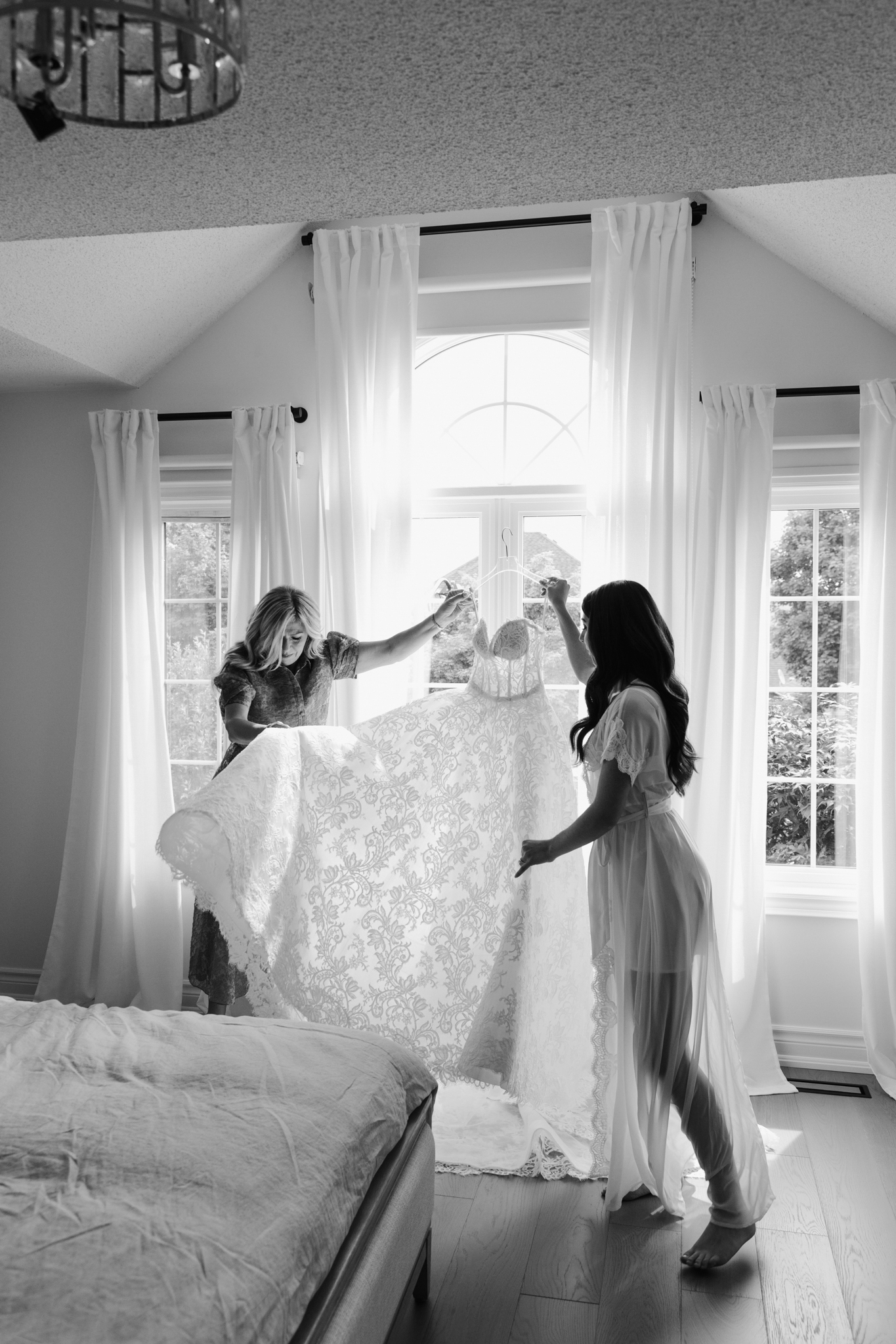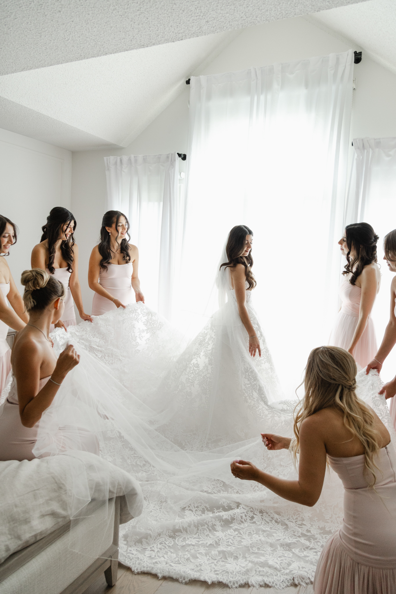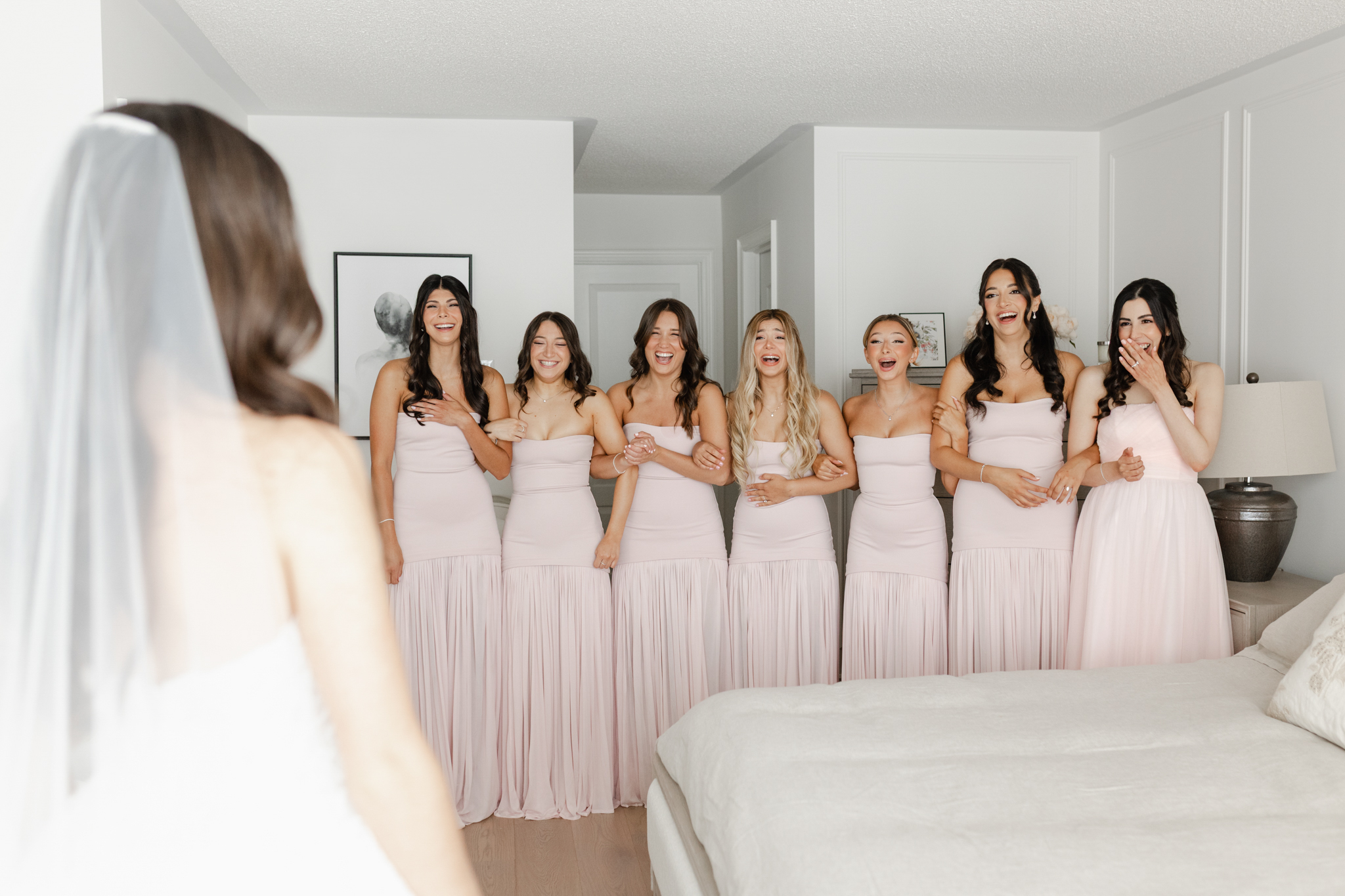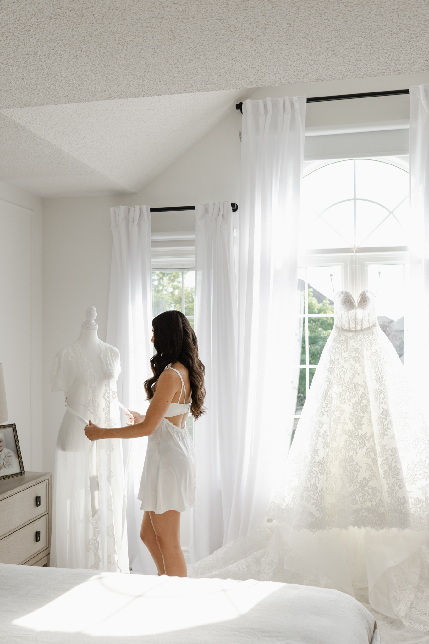 Her beauty look was incredibly natural with soft, luminous skin, barely-there blush, and an effortless glow. Paired with lace details, classic pearls and an ambiance filled with quiet. Emily’s morning truly set the tone for a sophisticated Toronto wedding day.