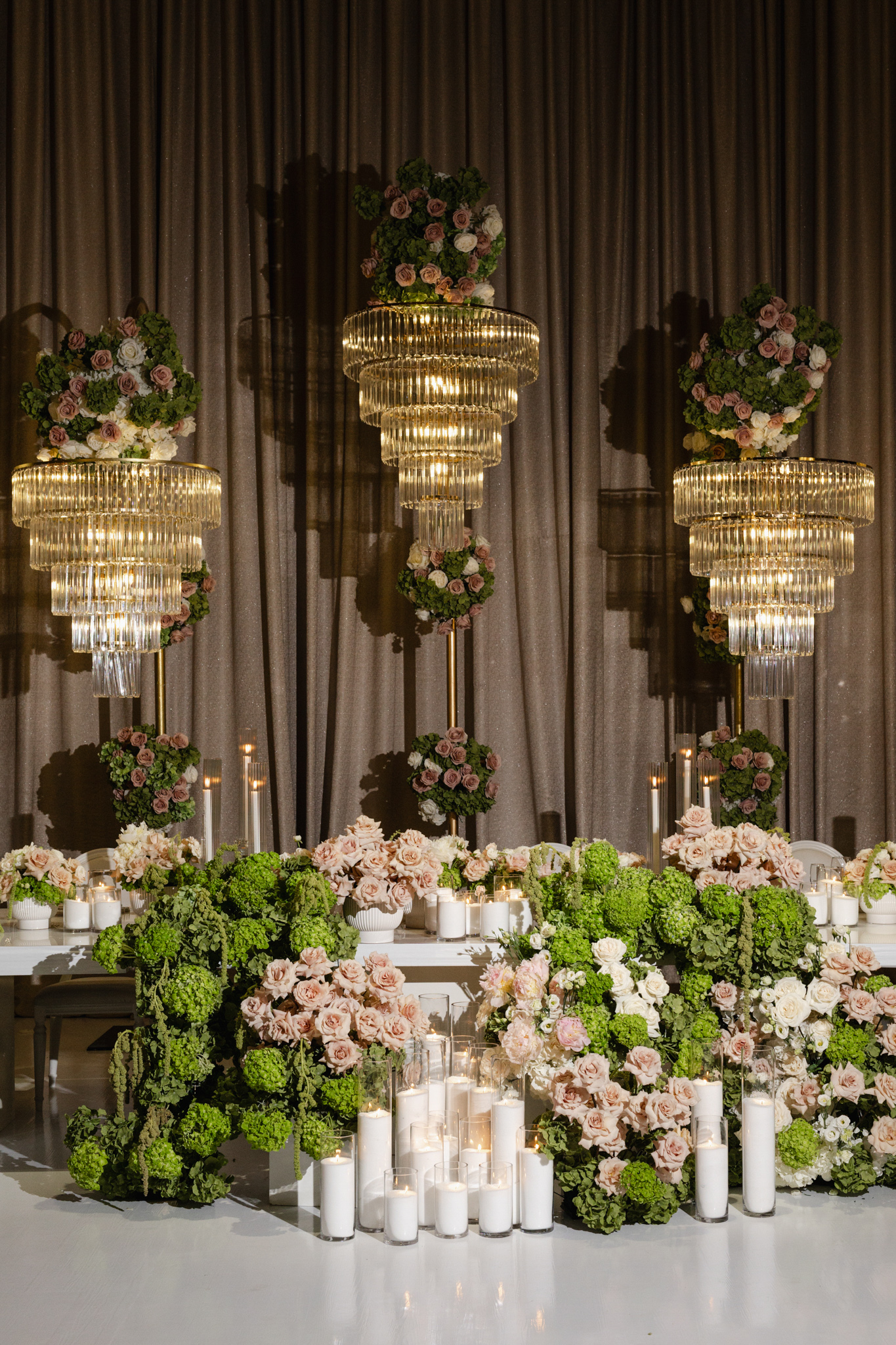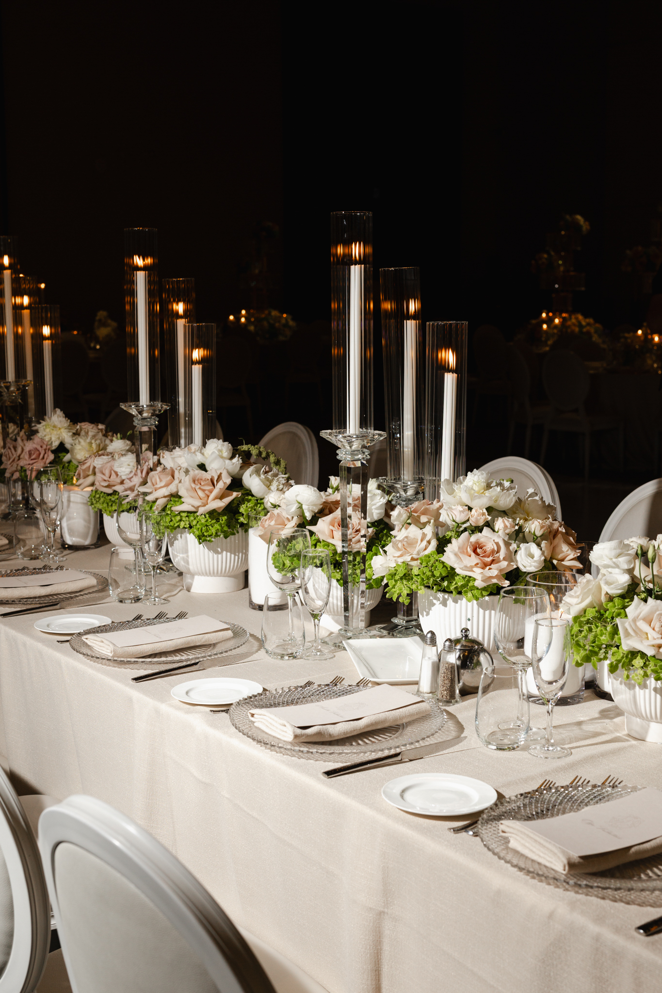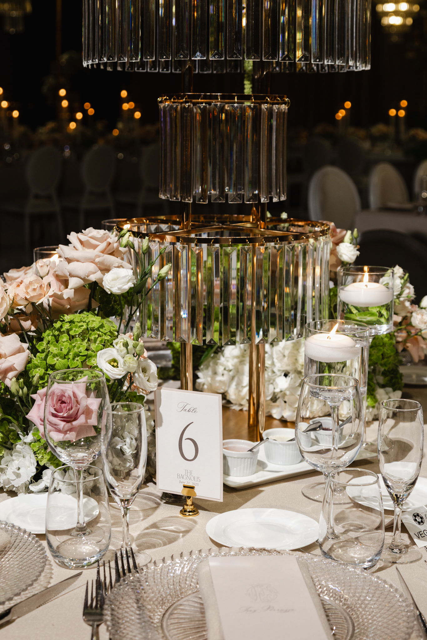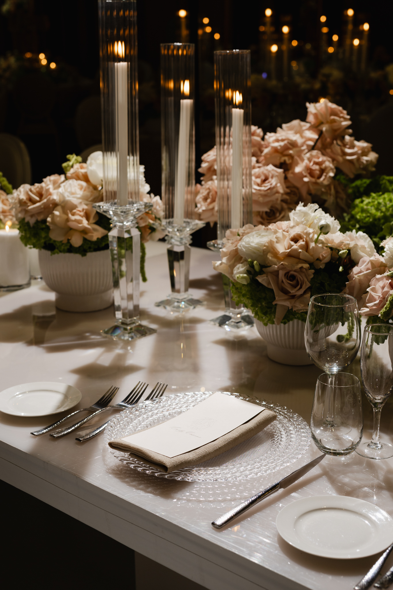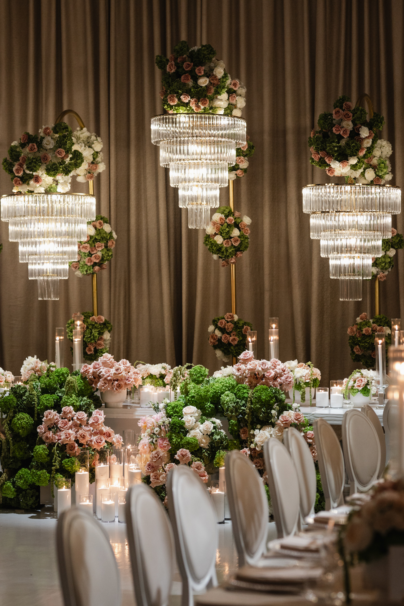 Hanging chandeliers cast a soft glow over the tables, where delicate florals, polished tableware and creamy neutrals created an elevated colour palette. Watching their faces take in every detail. The months of planning, the design choices, the vision finally coming to life, this is one of the moments we love most to capture.