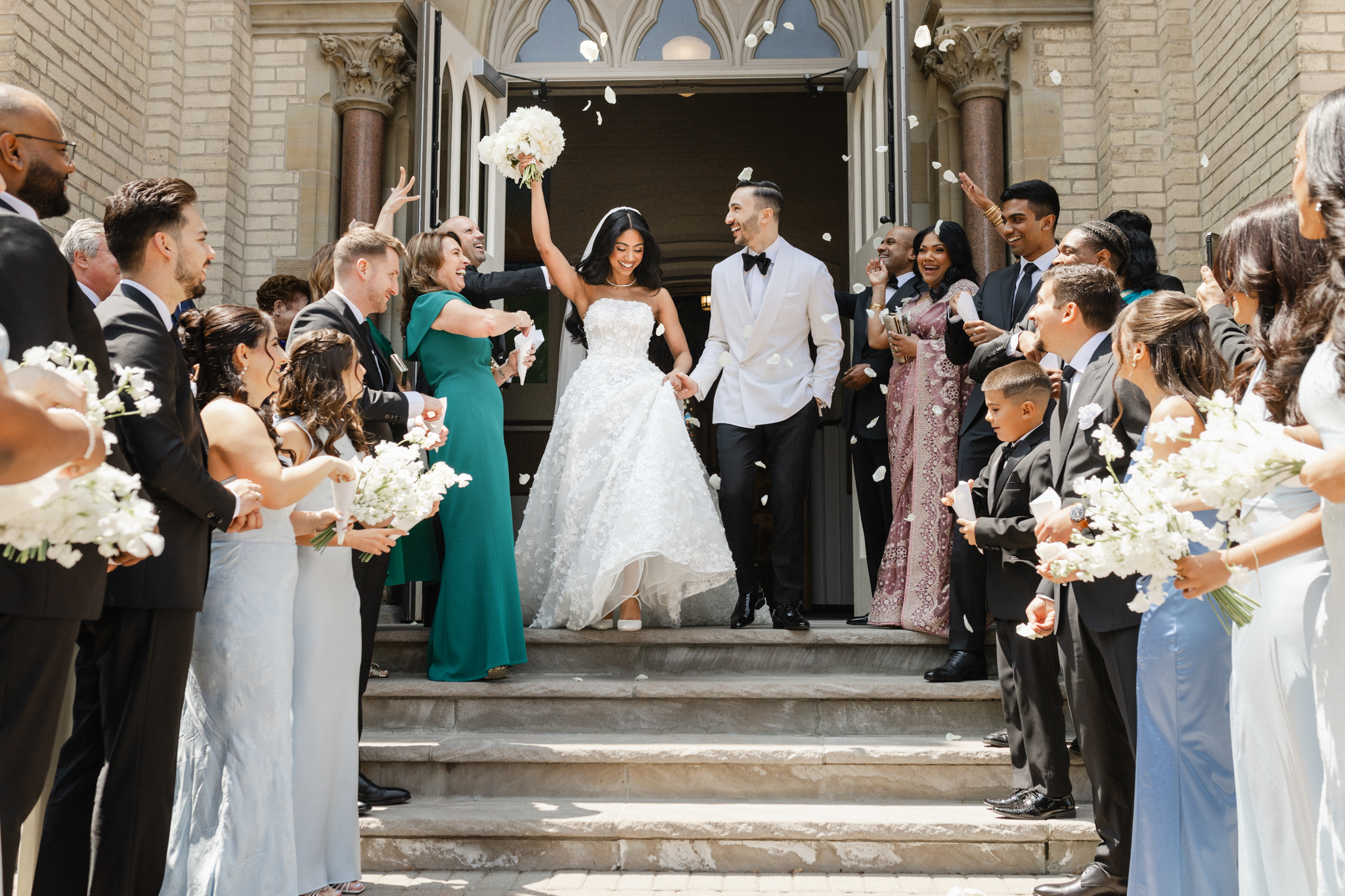 Their ceremony took place at St. Mary’s Parish in Toronto, a church that feels truly grand the moment you step inside. The architecture is rich with history with soaring ceilings, intricate details, and a sense of romantic grandeur that makes it an incredible ceremony location for couples seeking timeless elegance.