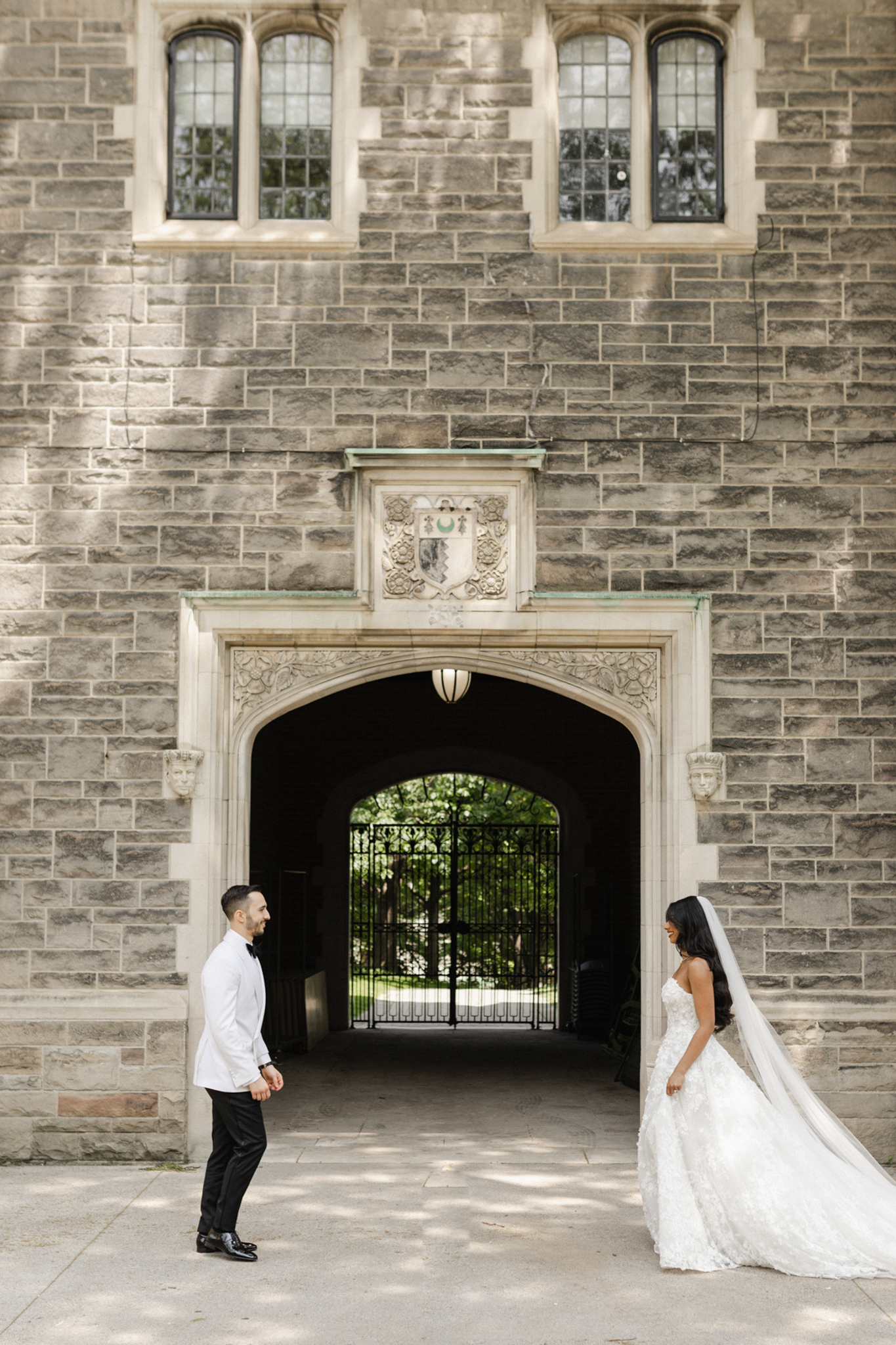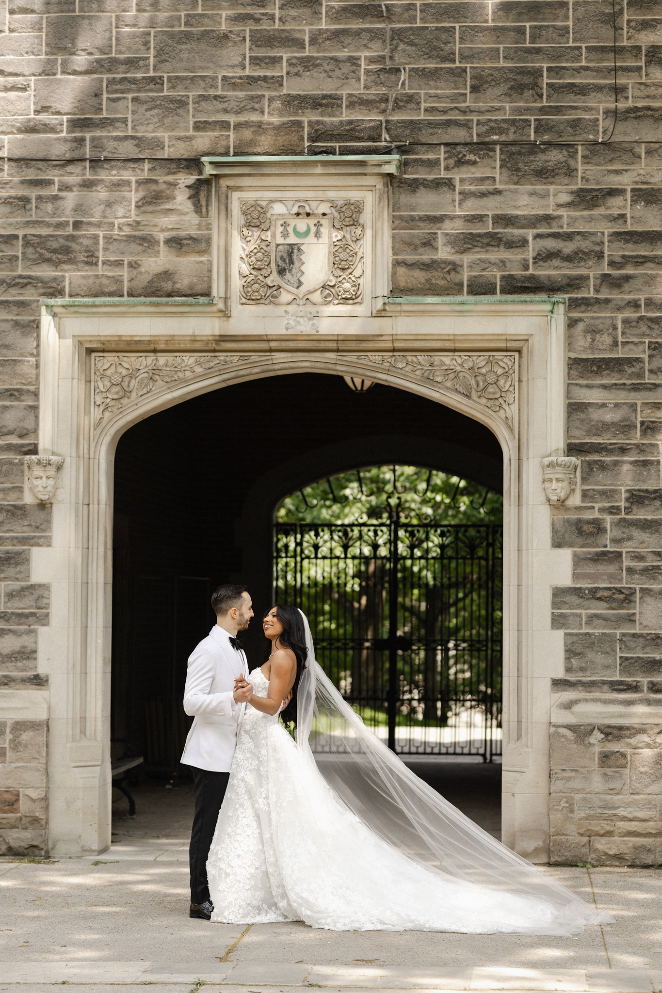 Their portrait session at Trinity College felt like stepping into a fairytale, another hidden gem of Toronto we love to use as a backdrop. We also recommend incorporating a prop into your wedding or engagement photos, and Dulangi & Eric’s choice was perfection. Their film camera prop added a sense of creative playfulness making their portraits feel fun and completely unique.