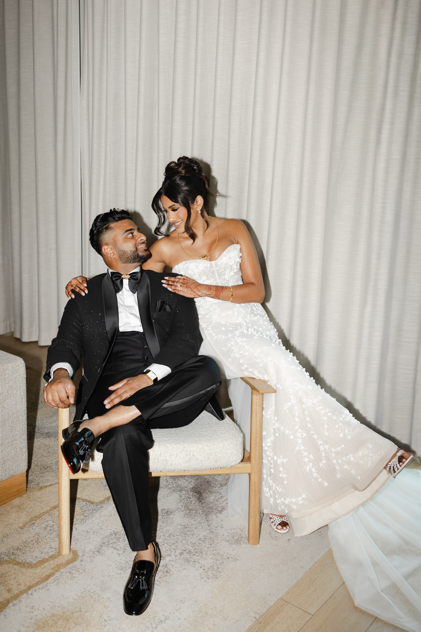 Across the way, Arun’s morning carried a similarly polished aesthetic. His details mirrored Withu’s soft cream palette, but the addition of black created just the right amount of contrast. The result felt classic and striking all at once. Those confident, fashion-forward groom portraits are always such a fun way to capture the energy before the ceremony begins.