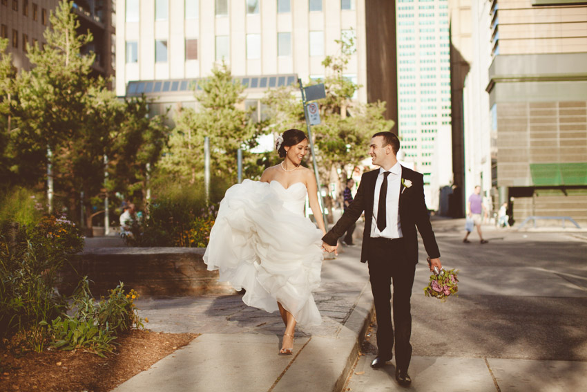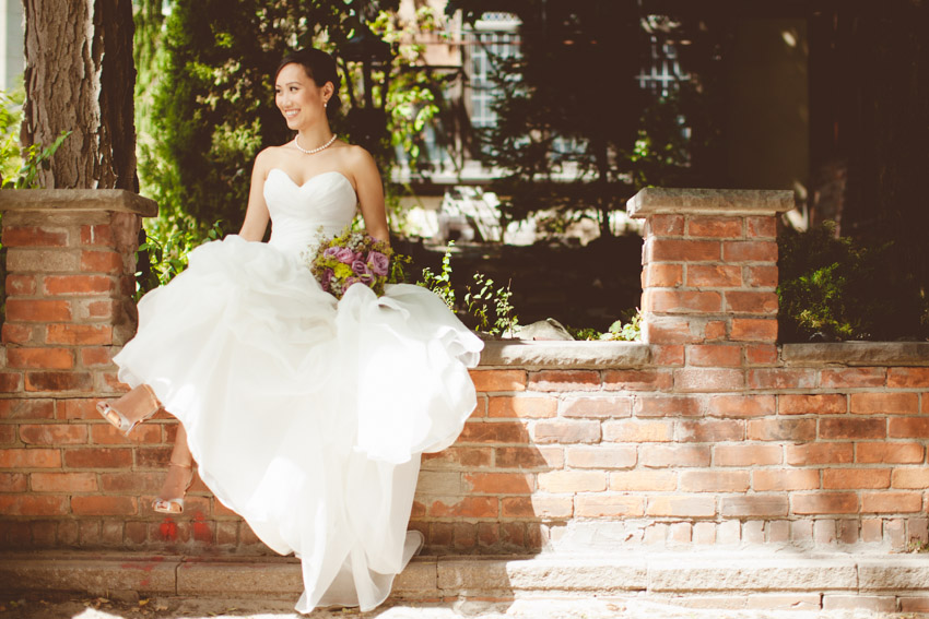 Since the reception was at Sassafraz Restaurant, which is located in the heart of Yorkville, we decided to have the couple’s pictorials in the area. The town is known to be frequented by celebs and famous people who visit Toronto. It’s great location for wedding parties, pictorials, and even “star-gazing” – the celebrity kind. Everything from quaint shop buildings to narrow streets and stone walkways adds to the magic of Yorkville. Taking advantage of the character of the place and that impeccable romantic ambience that you can get out of an upscale town was an excellent decision for us. We were very fortunate to be able to take some Yorkville shots during sunset and everyone seems to be very happy with the results.