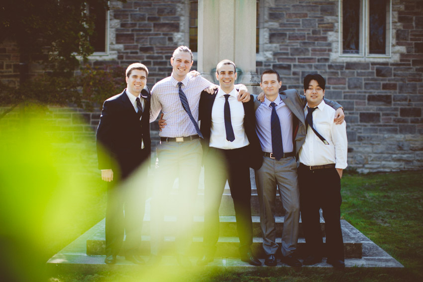 The church didn’t need any fancy setup either. It was enough that Grace Church on-the-Hill, a parish built in the early 1900’s, had that architecture that was beautiful for weddings even without the usual flower arrangements and draperies. The detail of arches, beams, and high classy ceilings that you normally would find in a cathedral was enough to make everything look wonderful. Max and his entourage were already waiting for their turn for pictorials when we arrived at the church. They’re quite a fun bunch as we took shots at the back room and right outside the building.