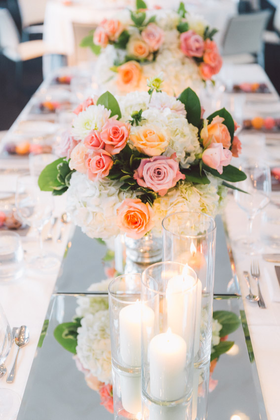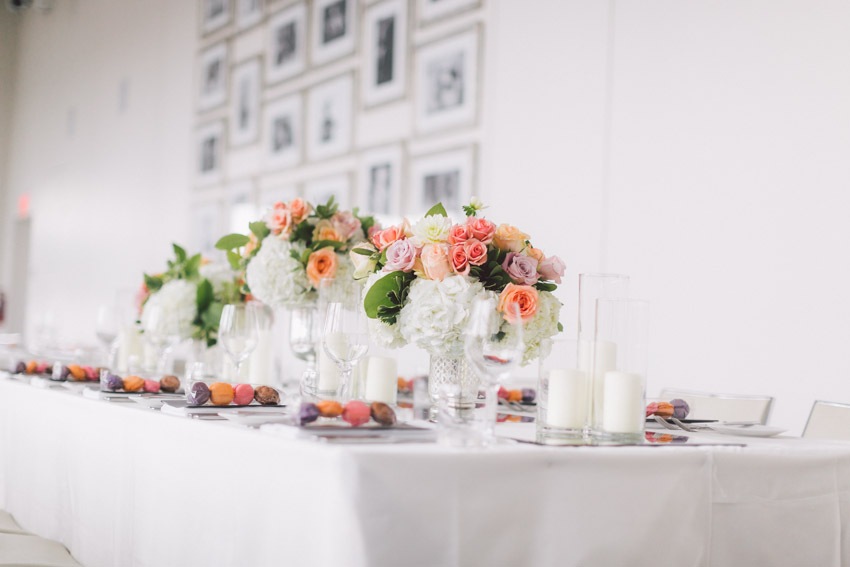 From the ceremony to the reception, the designs were very elegantly minimalist and elements were truly beautiful. They used the same floral arrangement for the bridal bouquet, center pieces, and those that adorned the aisle during the ceremony – lavender, peach, and pink rose blooms that were pretty stylish and smart.
