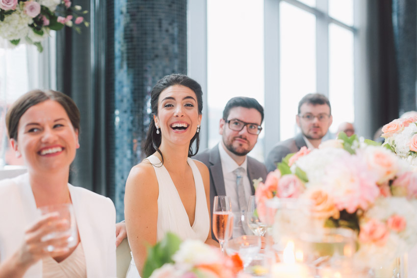 Although it rained a few times during the ceremony and when we were doing portraits, that didn’t stop everyone to have some fun. The ceremony at Malaparte was short and sweet and we enjoyed the place so much. The idea that a wedding could be done inside a rooftop terrace tent was remarkable. The venue gave us gorgeous cityscape views of downtown Toronto with all the skyscrapers volunteering to be our gorgeous picturesque backdrop perfect for family pictures.