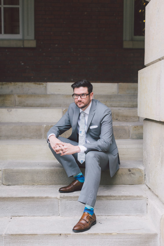 Our dazzling groom on the other hand was at their house on Queen Street East. We thought Chris looked handsomely awesome with his sleek blue-toned gray suit and brown leather shoes which he accentuated with a stylish blue-accented floral tie. From time to time we would see bits and pieces of the groom’s fascination with Lego. Yes, those plastic playthings that interlock looked pretty cool to see in a wedding styled to perfection.