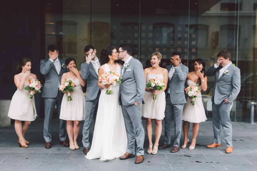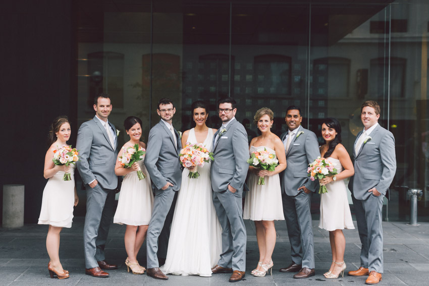 We came back to 80 John Street after the ceremony for some portraits and we were delighted with the photographs we took here since the architecture was very modern and beautiful, it made our lovely bride look even more charming and elegant than she already was. It’s real pretty that the groomsmen and the bridesmaids all matched the couple’s clothes. The guys even wore fancy blue socks and one had a santa design – playful personality at its best.