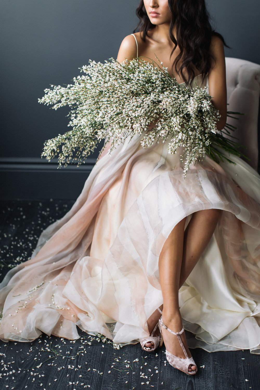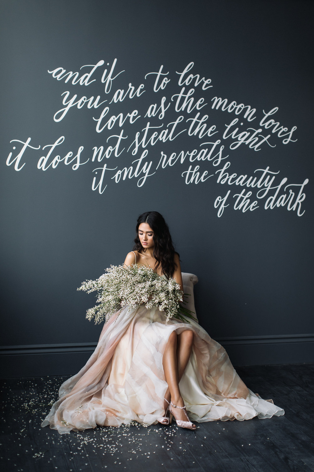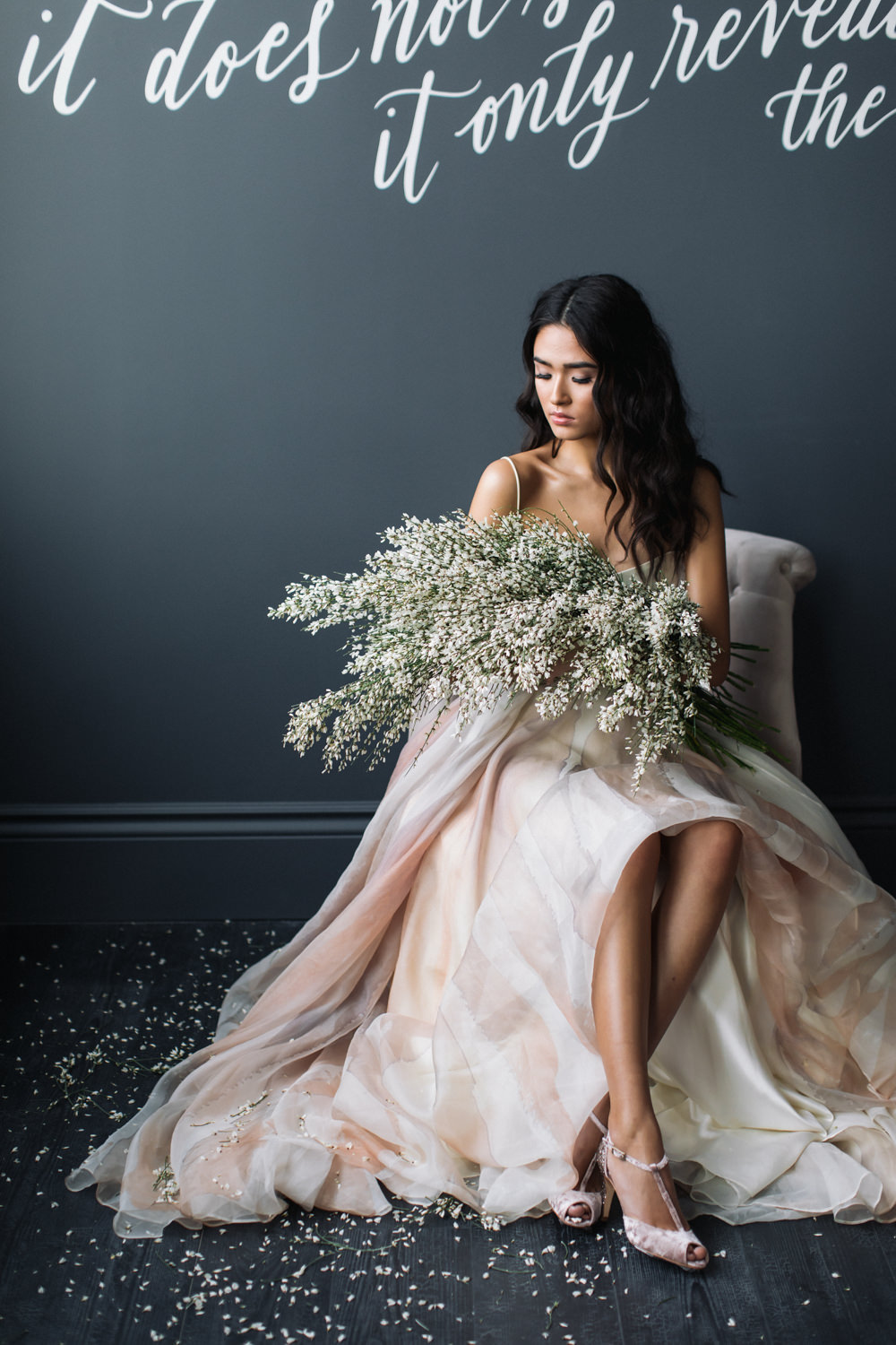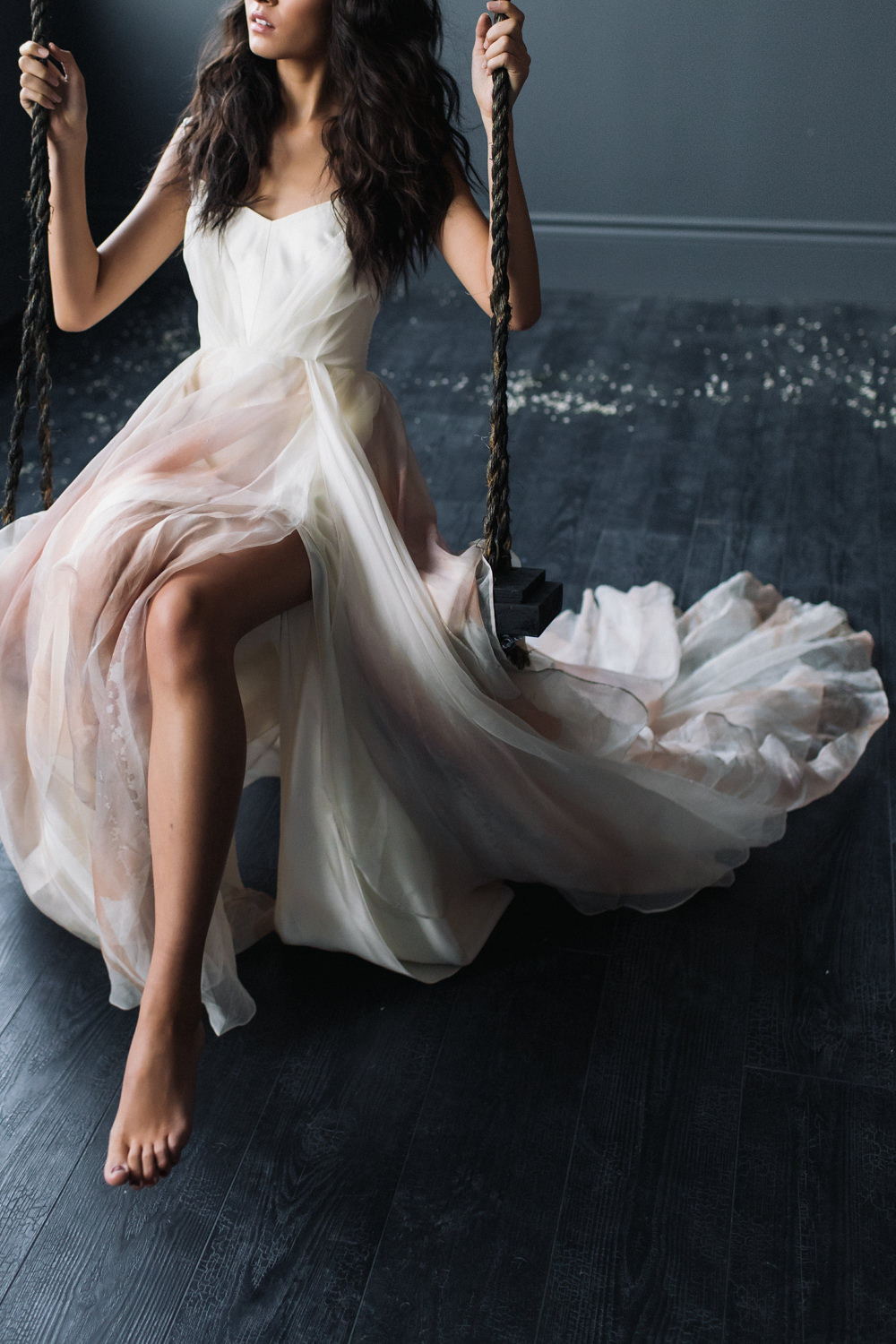 And last but not the least – like a fairy princess in waiting, the bride looked stunning as she was seated on the dark swing that hung from the ceiling of the dark grey room. This shoot was featured in the first issue of Bridal Affair Magazine!