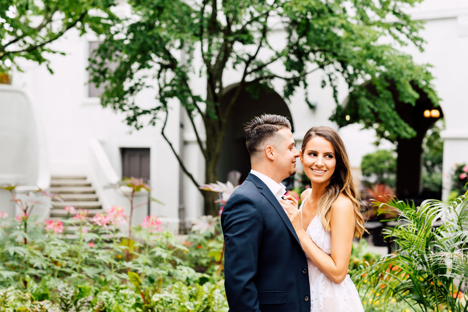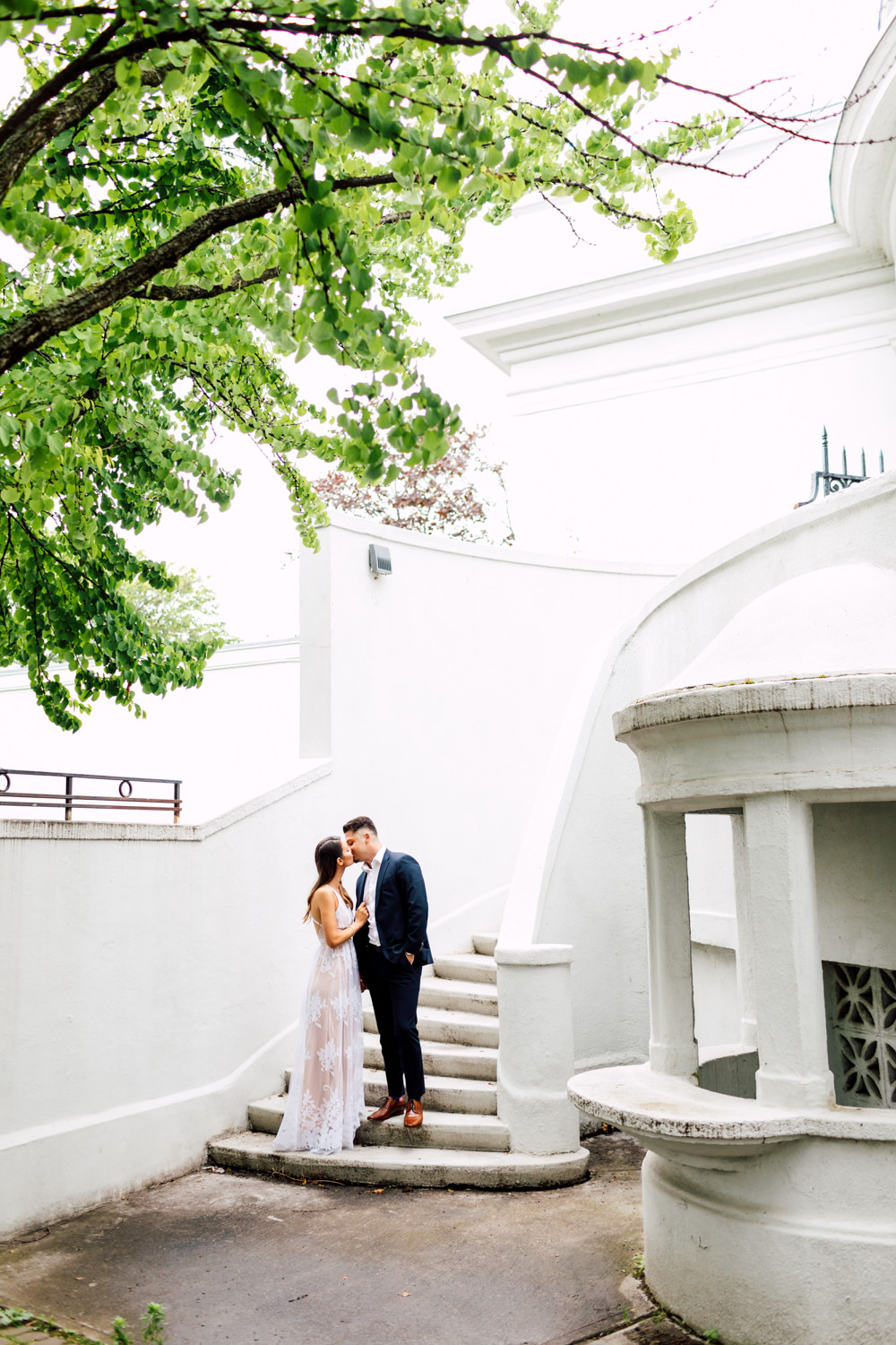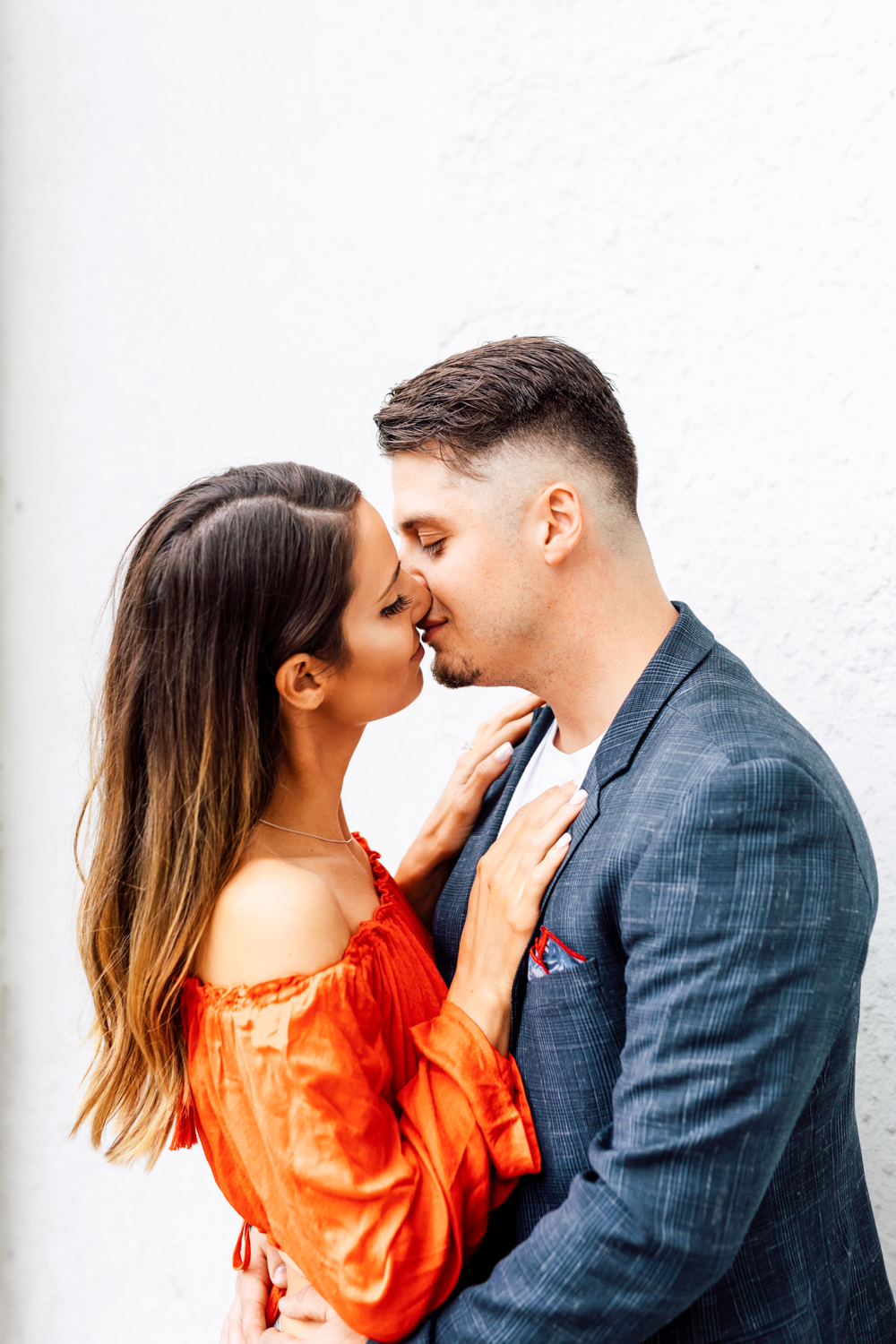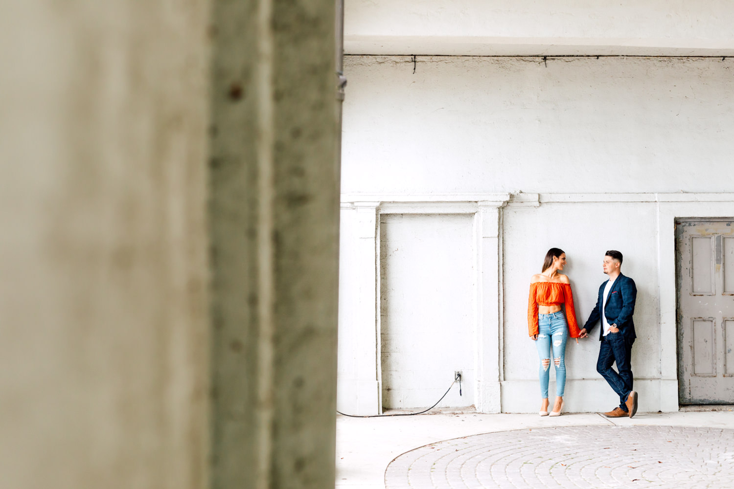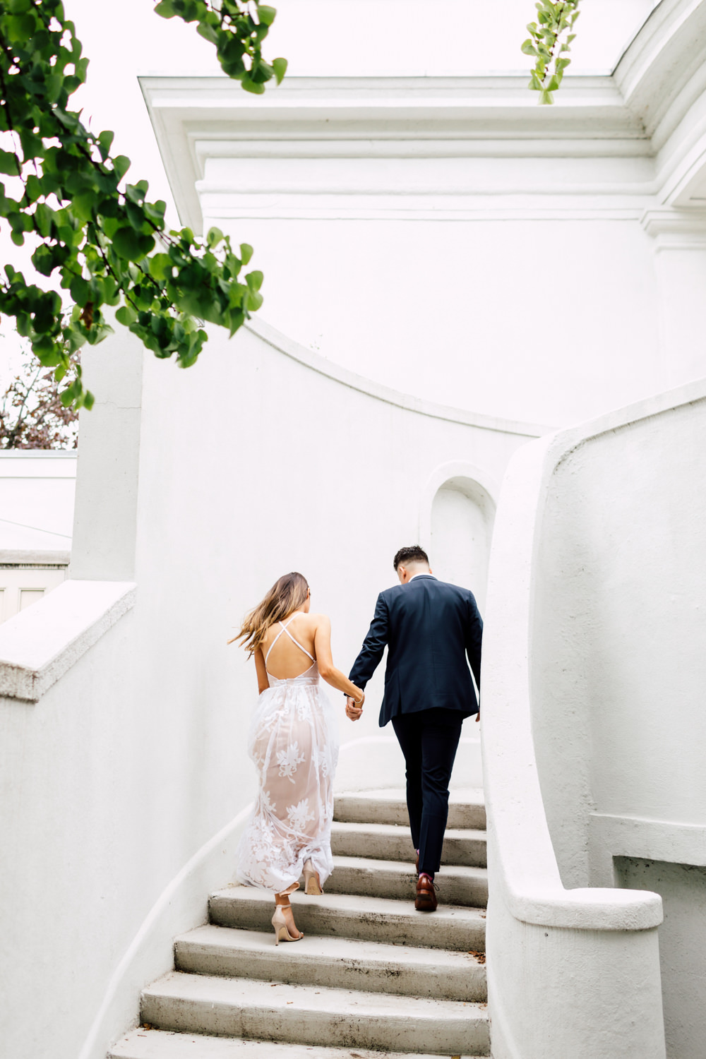 Usually, we ask our couples to prepare 2 different outfits to change up the scene. For Ally and Mike’s engagement, they definitely played with what the venue could offer by having three outfits! It’s a beautiful canvas to play with colours, like Ally’s bright red top and Mike’s blue blazer. We love how they pop out with all the white walls. Of course, you can never go wrong with the timeless elegance of neutrals! Blending in is just as good as standing out, and Ally looked like a goddess with her white dress! Of course, how can we not talk about their matching jeans and white sneakers outfits. This fashionable couple could pull off anything!