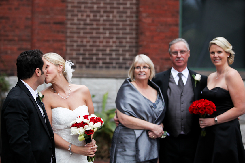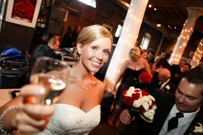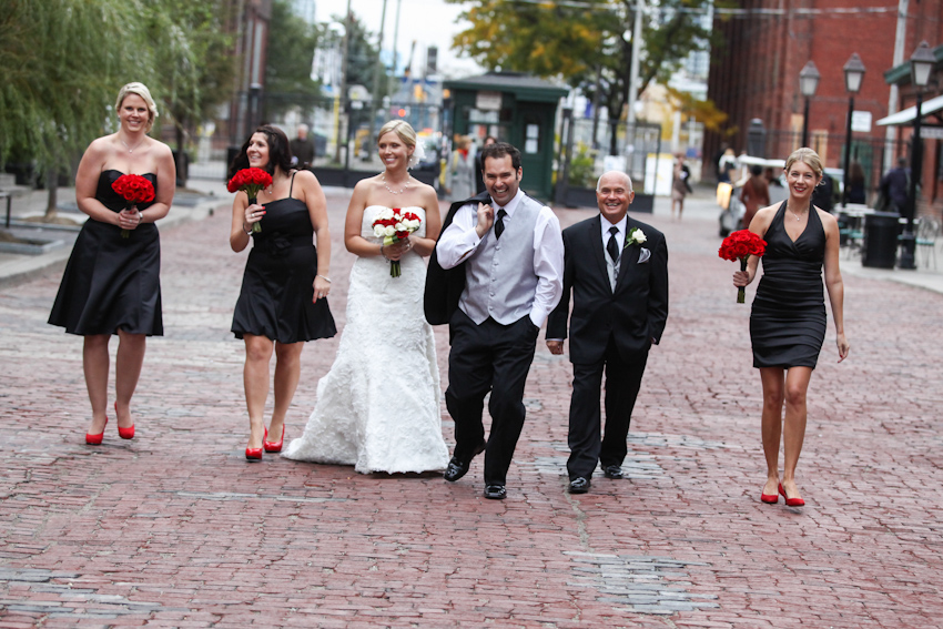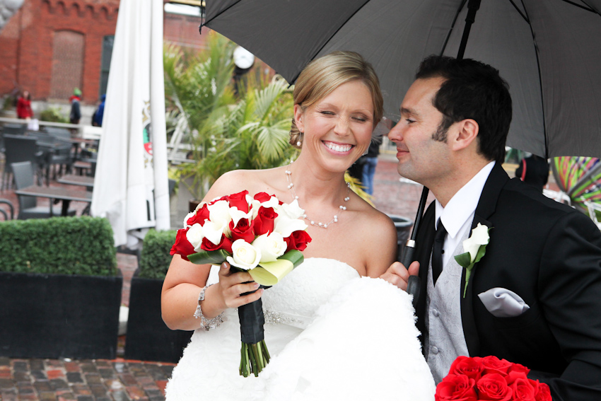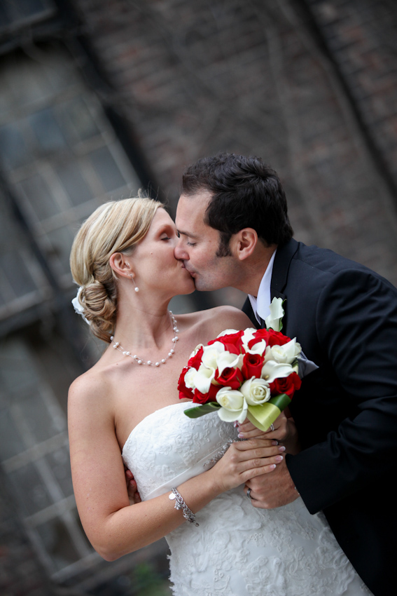 Our season begins with the glorious wedding of Kristin and Enzo at Tappo Wine Bar and Restaurant in Toronto’s historic Distillery District. In my opinion, fall weddings are always fun and usually a bit easier on photographers and newlyweds because it’s not as hot or muggy as July or August. But rain is always a threat and it sure came down that day. But, some cultures consider rain on a wedding day as being good luck for the bride and we concur. It was also a bit chilly but everyone managed to ignore the grumpy weather and we all had a blast shooting and being silly. Kristin and Enzo were a fun, spontaneous couple to work it. They rock!