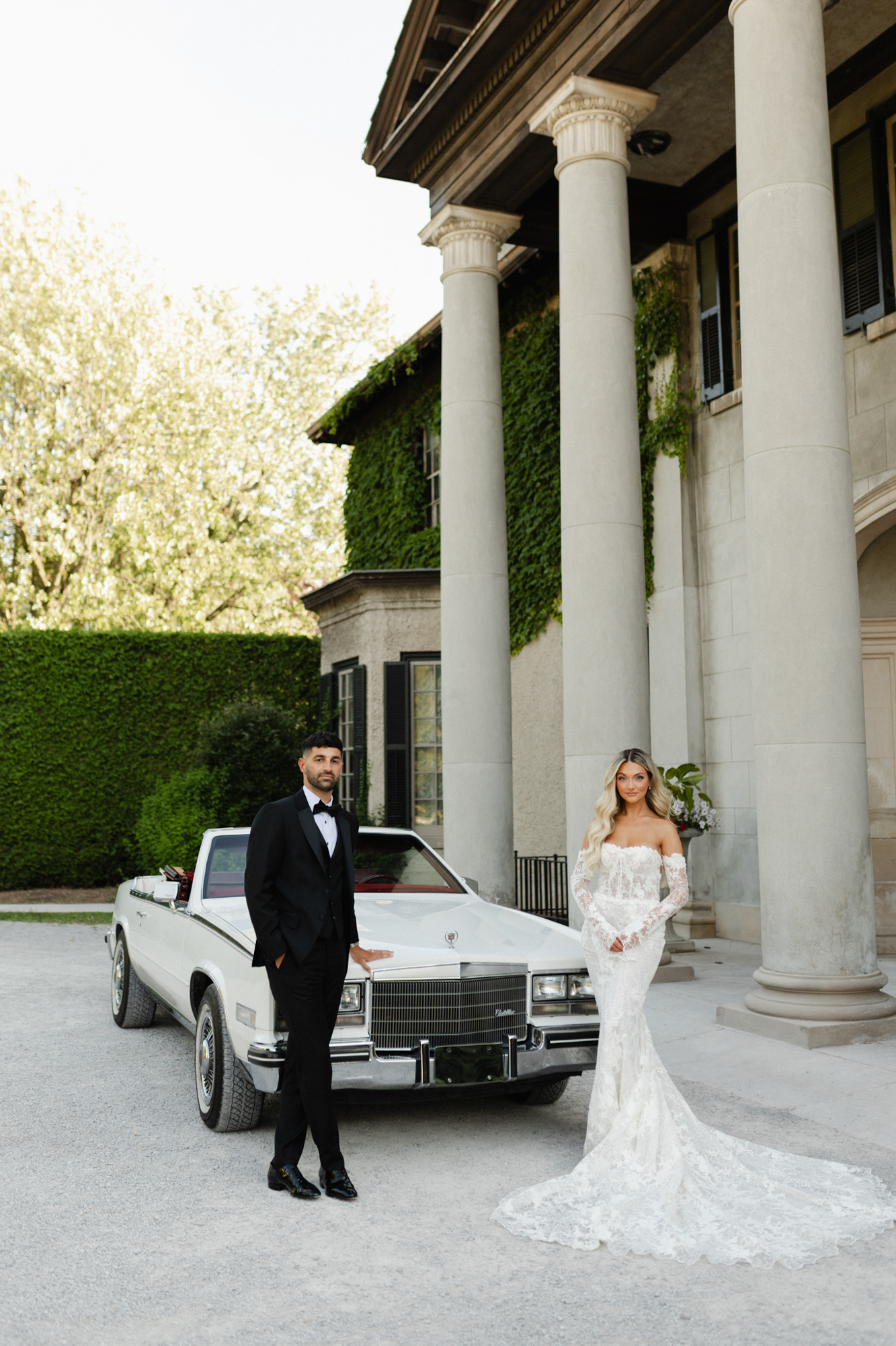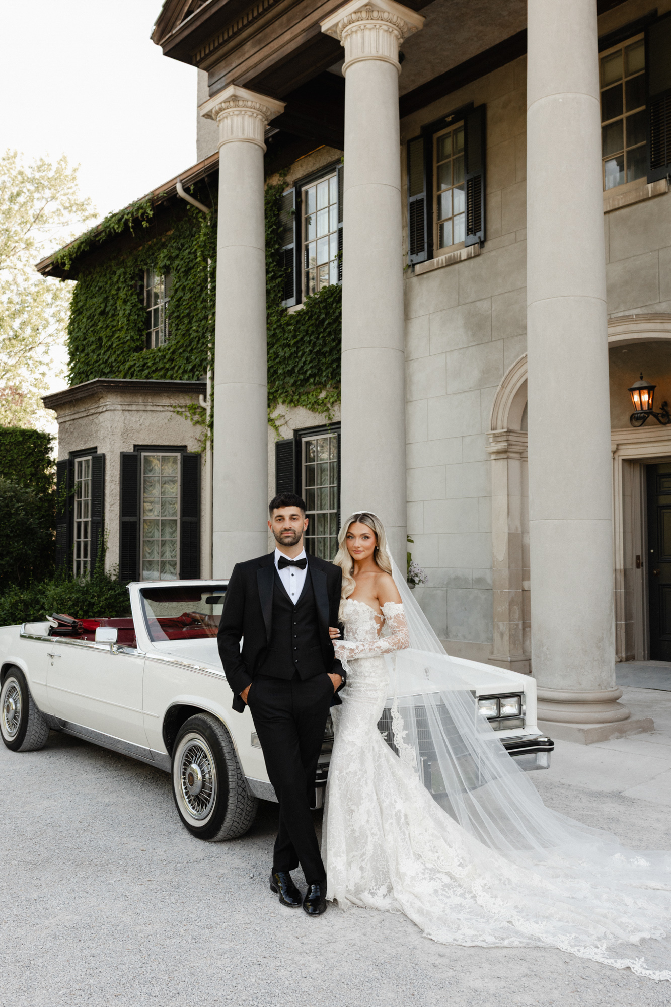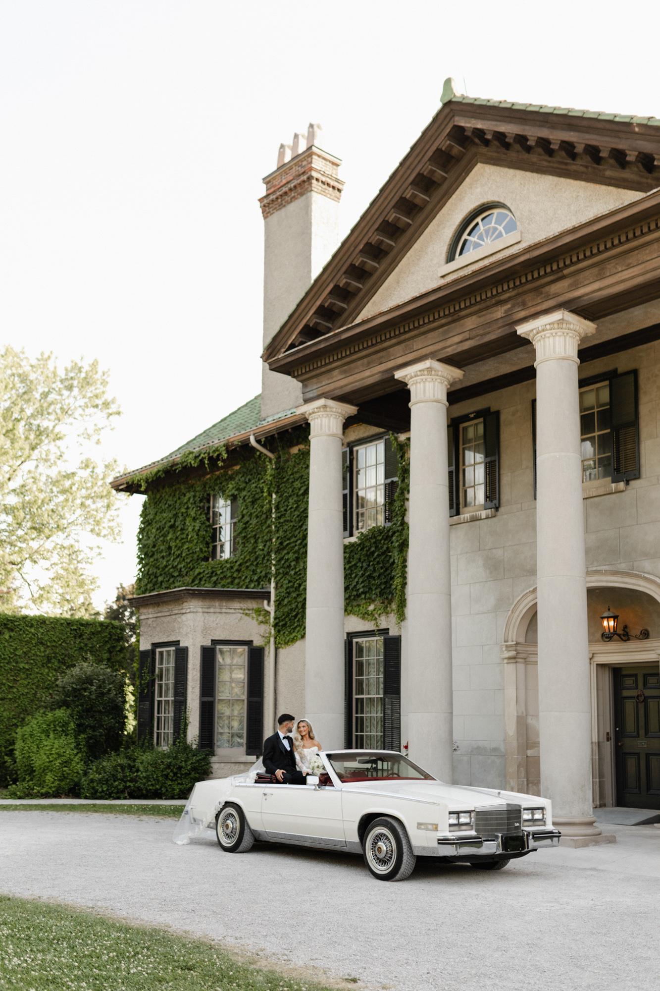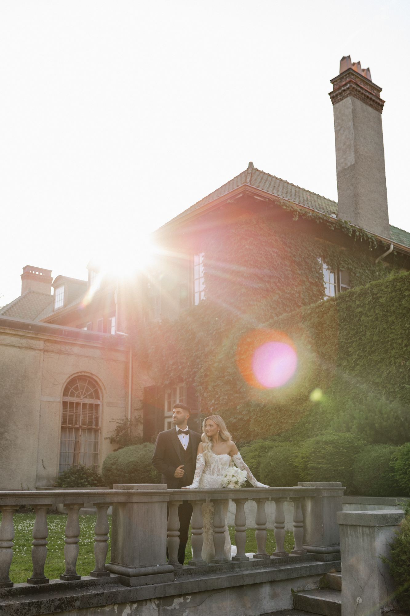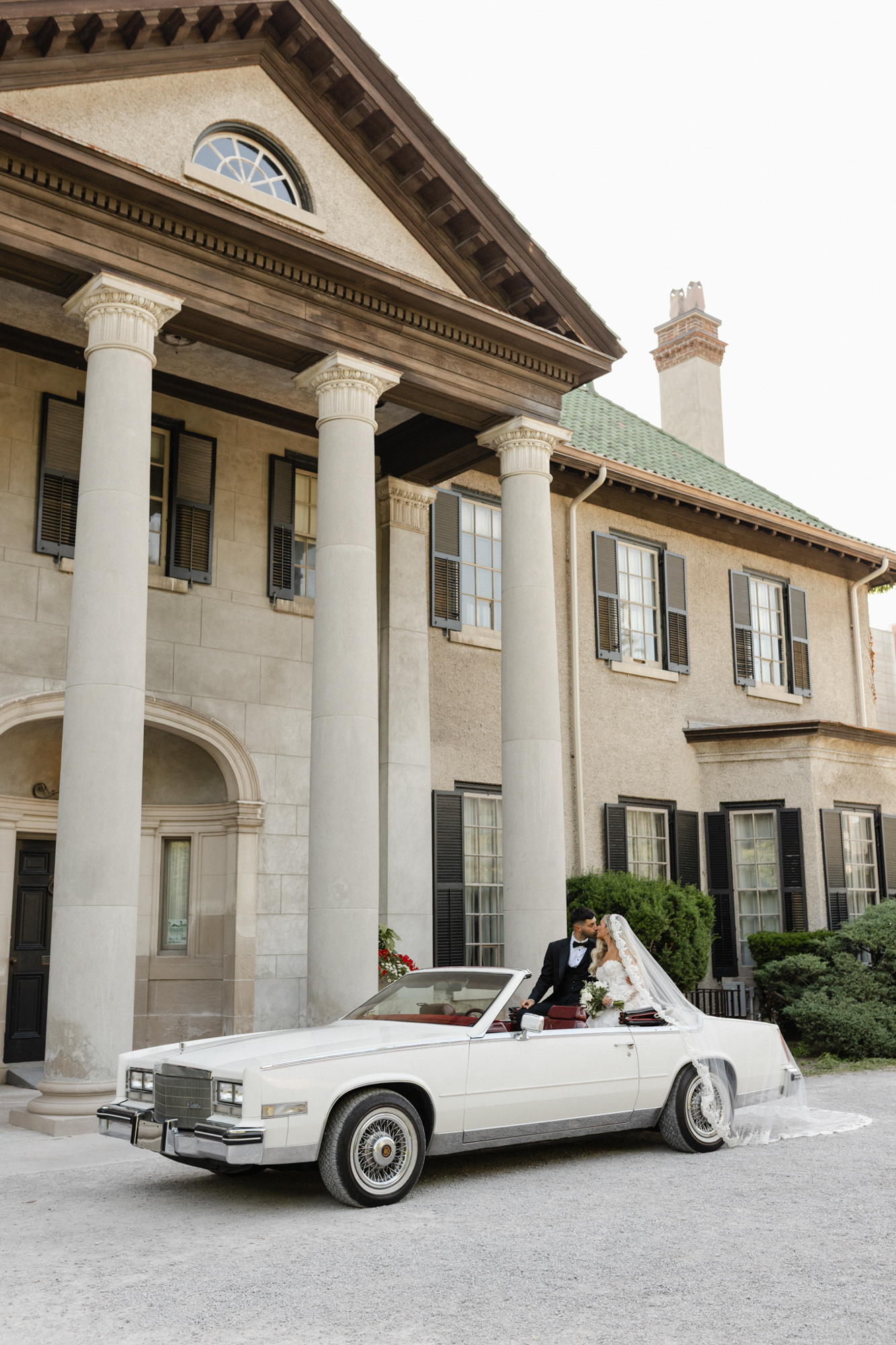 After their wedding day, they chose to step back into their bridal looks and celebrate again in a more relaxed, creatively driven setting. Set against the historic architecture and manicured grounds of Parkwood Estate in Oshawa, their session took place during the sought after golden hour light turning every frame into something cinematic. Post-wedding photoshoots are another opportunity to create polished, story-driven imagery you’ll treasure forever.