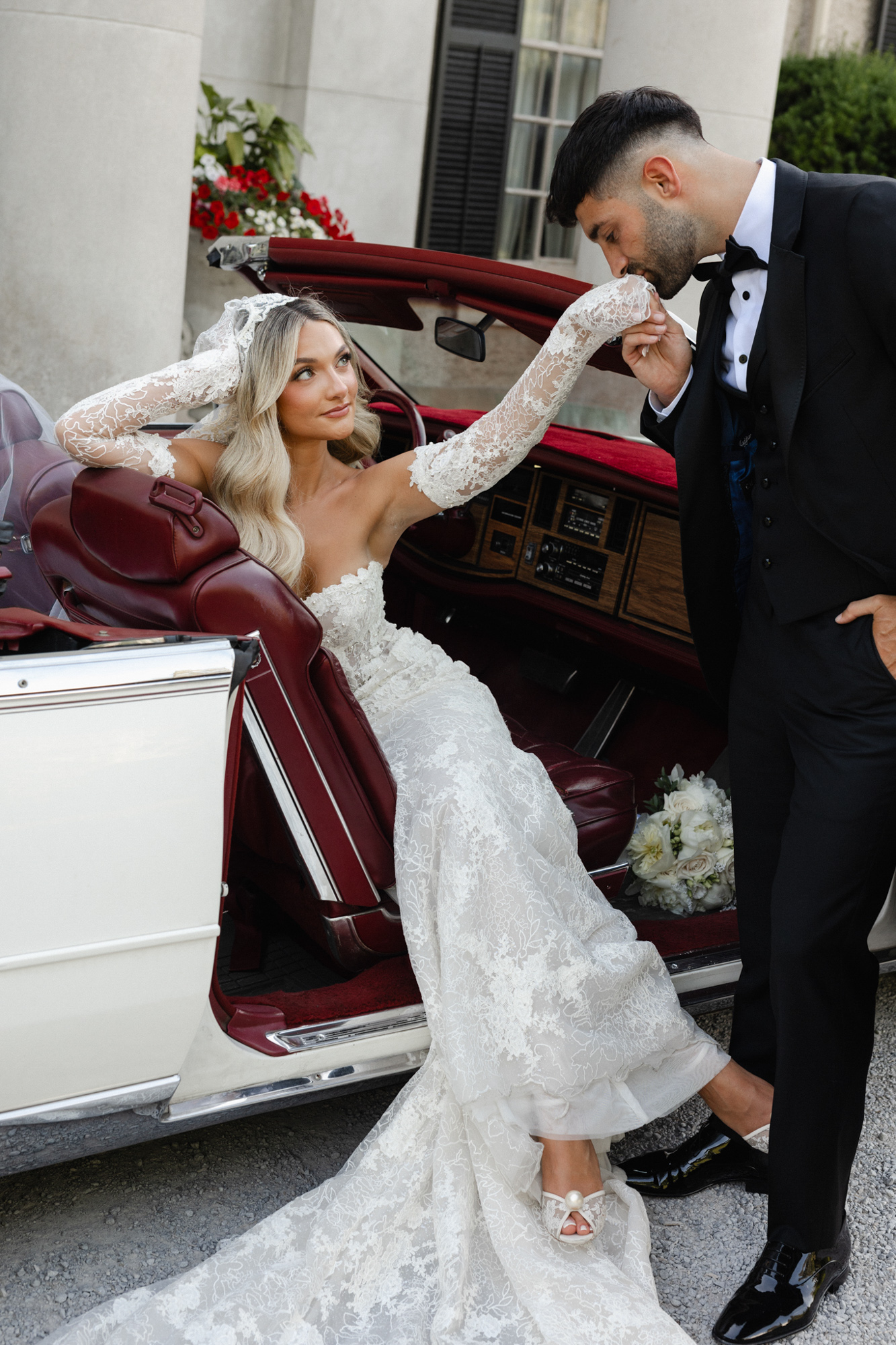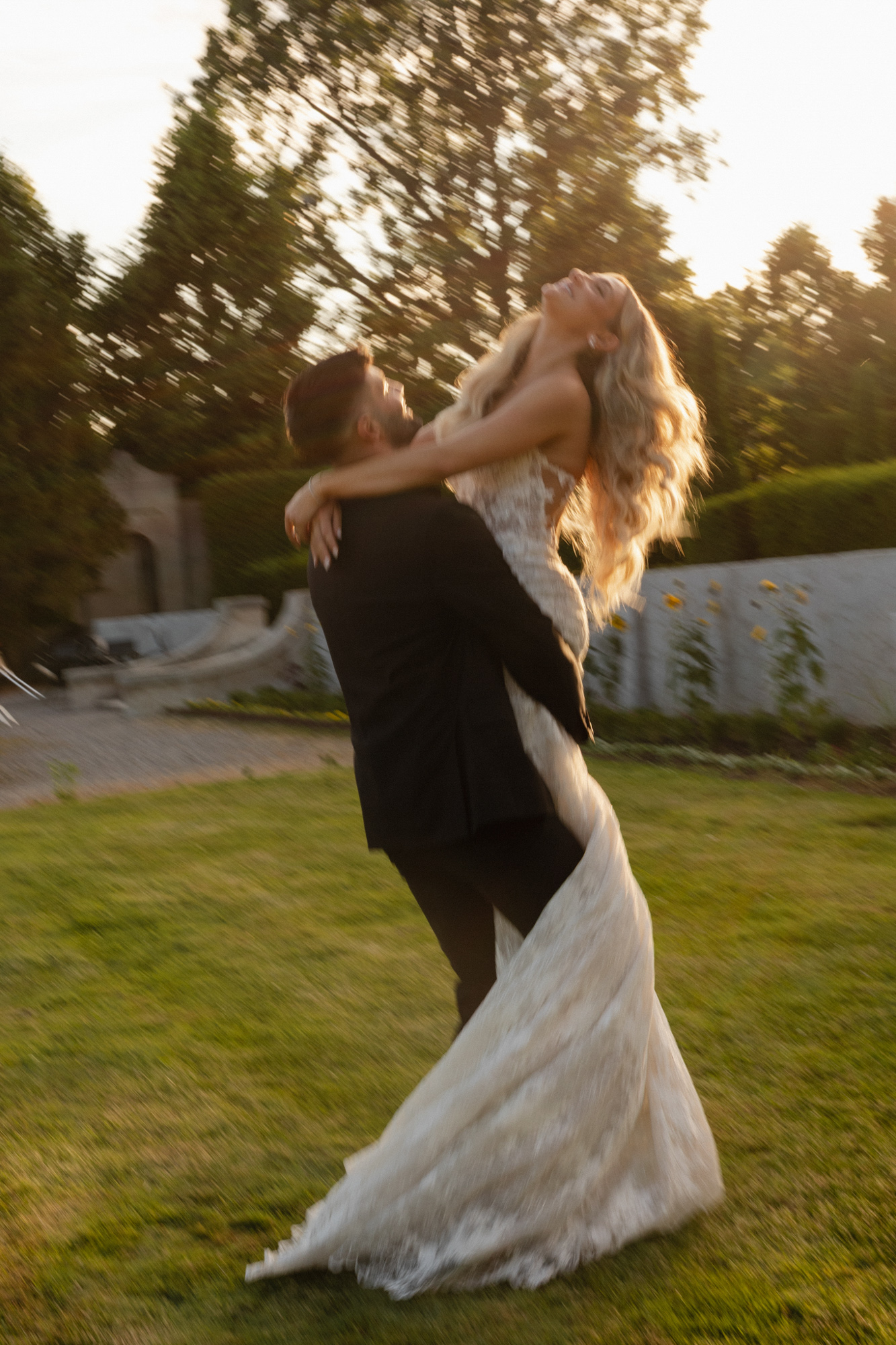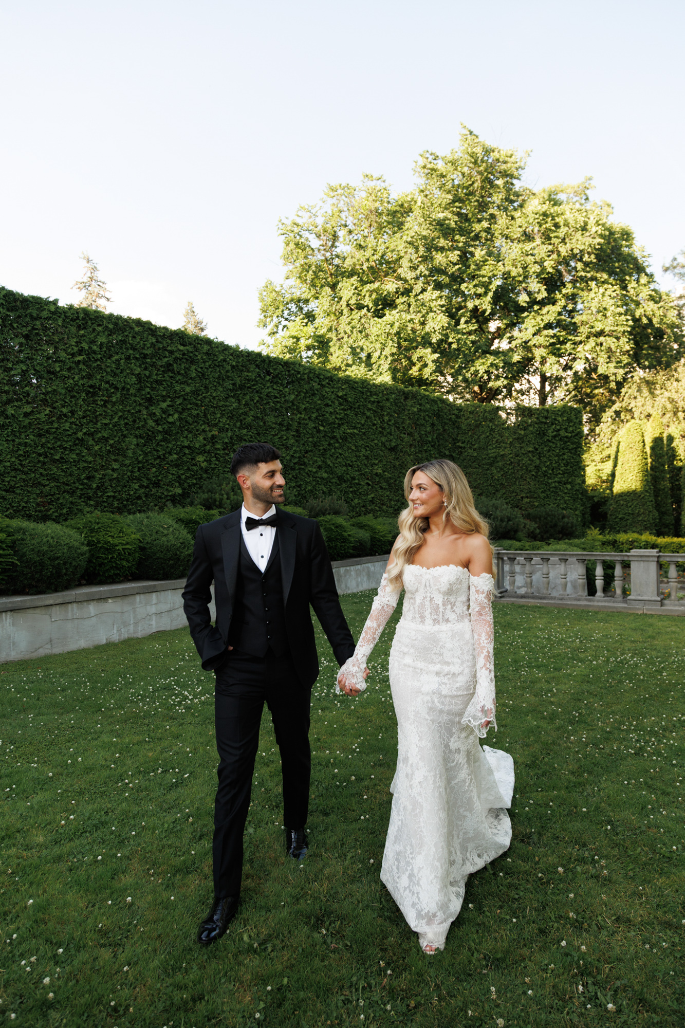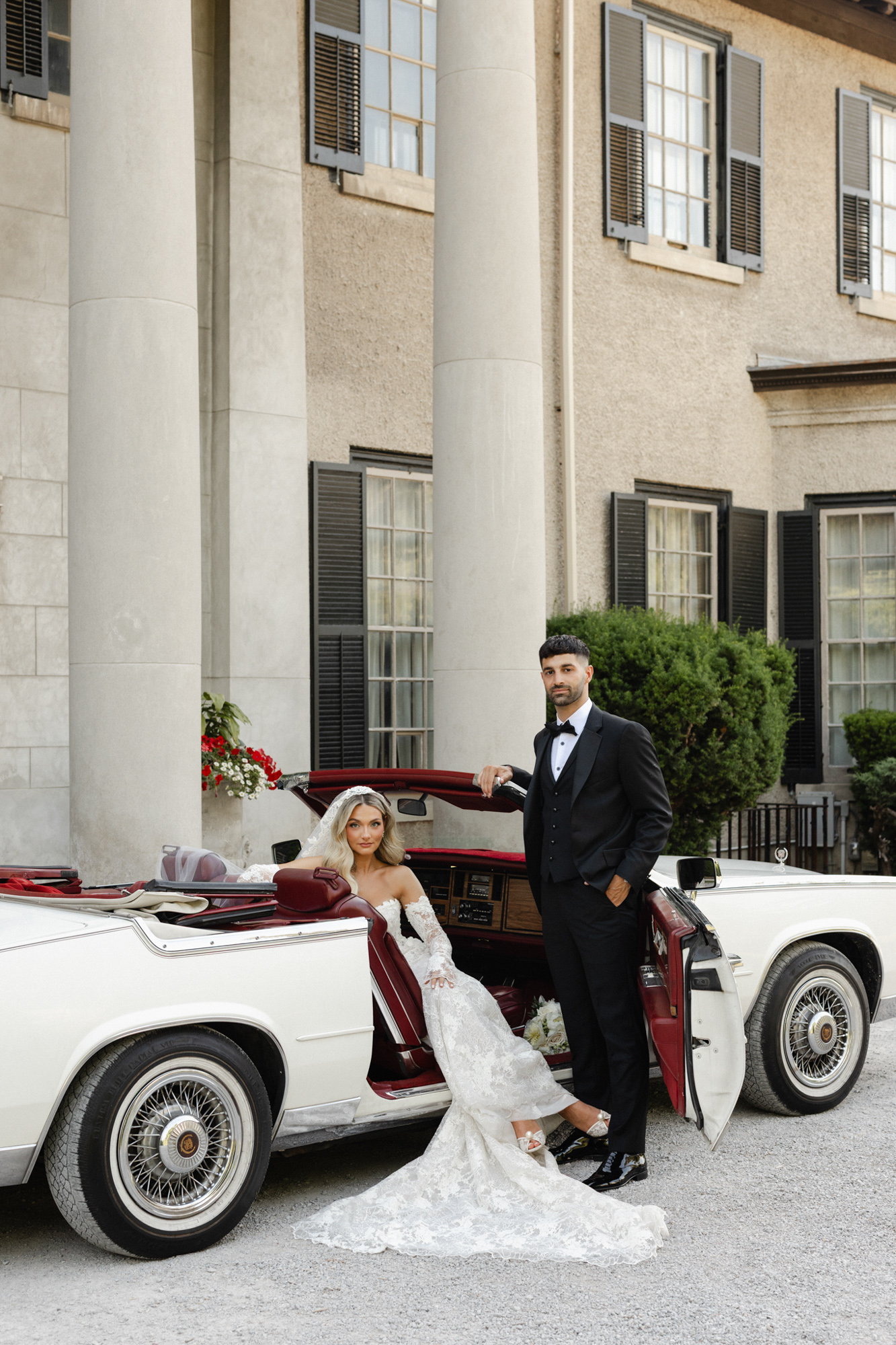 After their wedding day, they chose to step back into their bridal looks and celebrate again in a more relaxed, creatively driven setting. Set against the historic architecture and manicured grounds of Parkwood Estate in Oshawa, their session took place during the sought after golden hour light turning every frame into something cinematic. Post-wedding photoshoots are another opportunity to create polished, story-driven imagery you’ll treasure forever.
