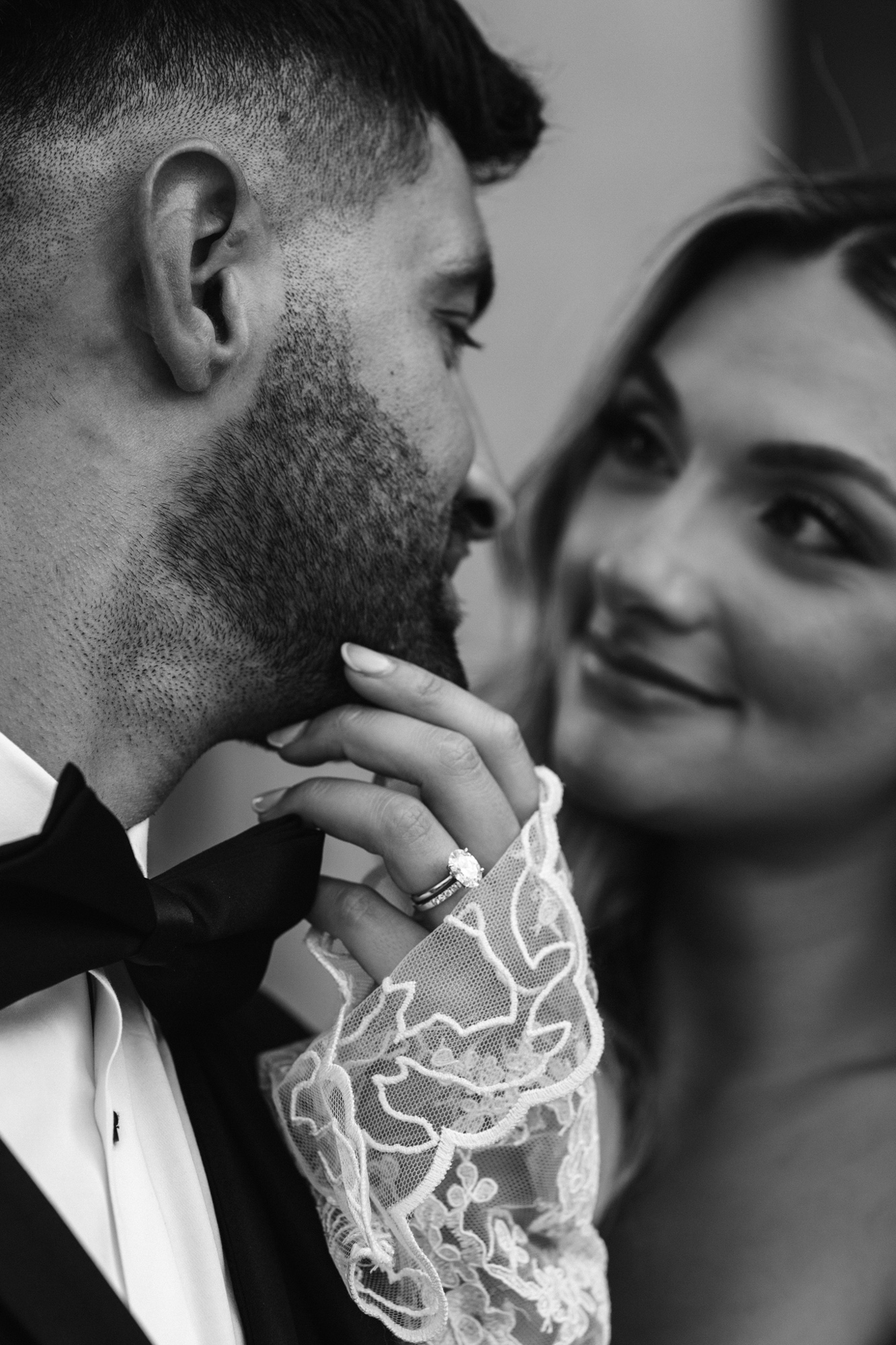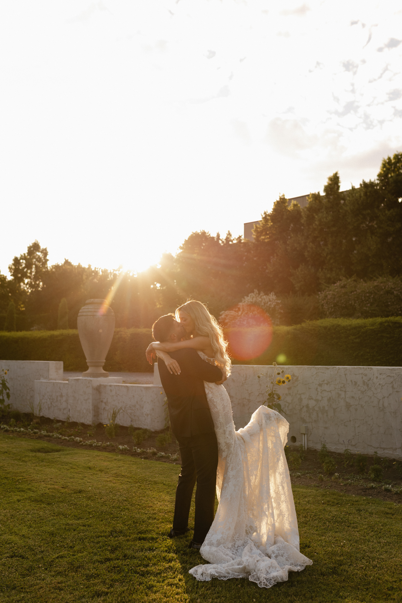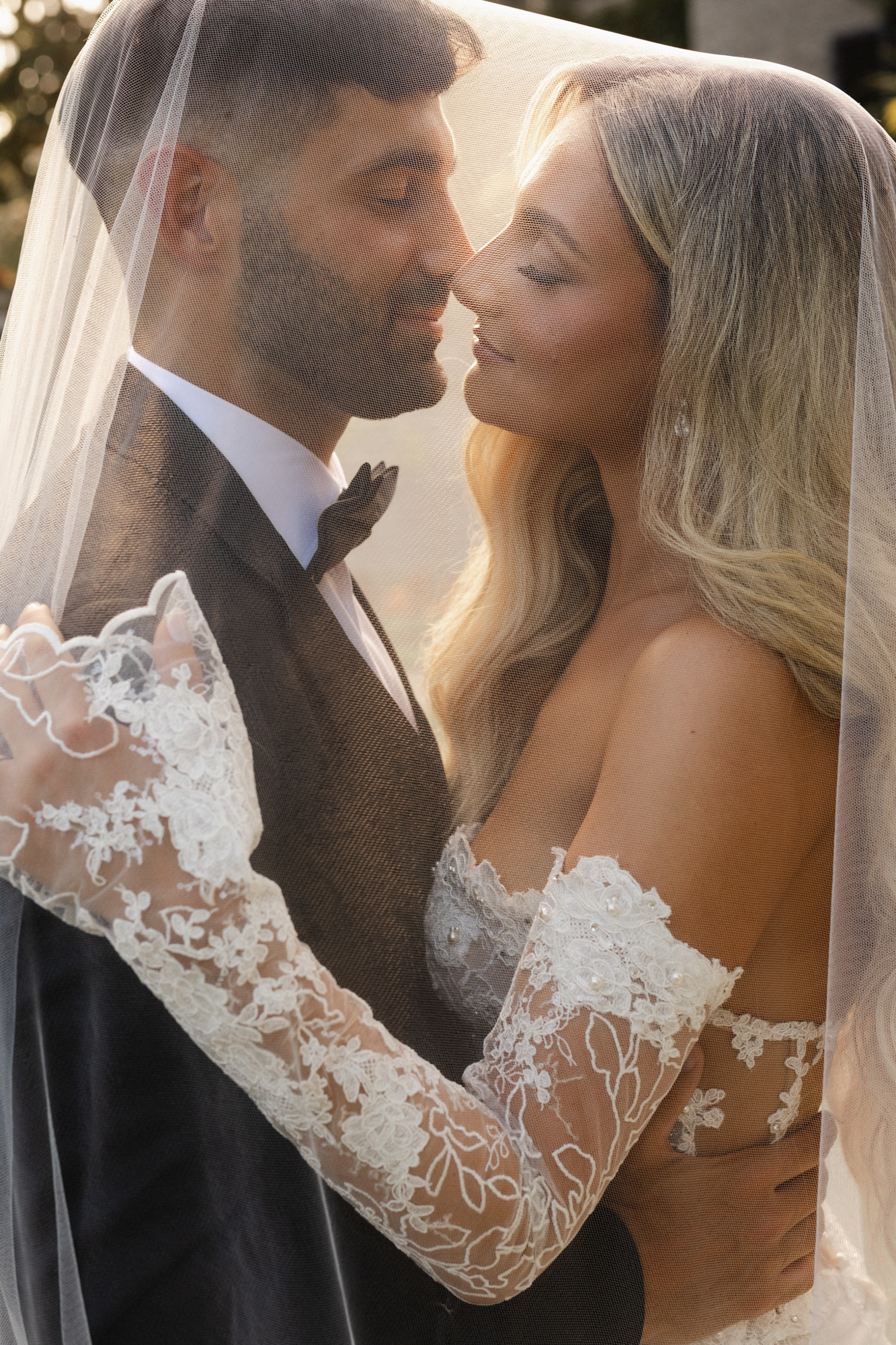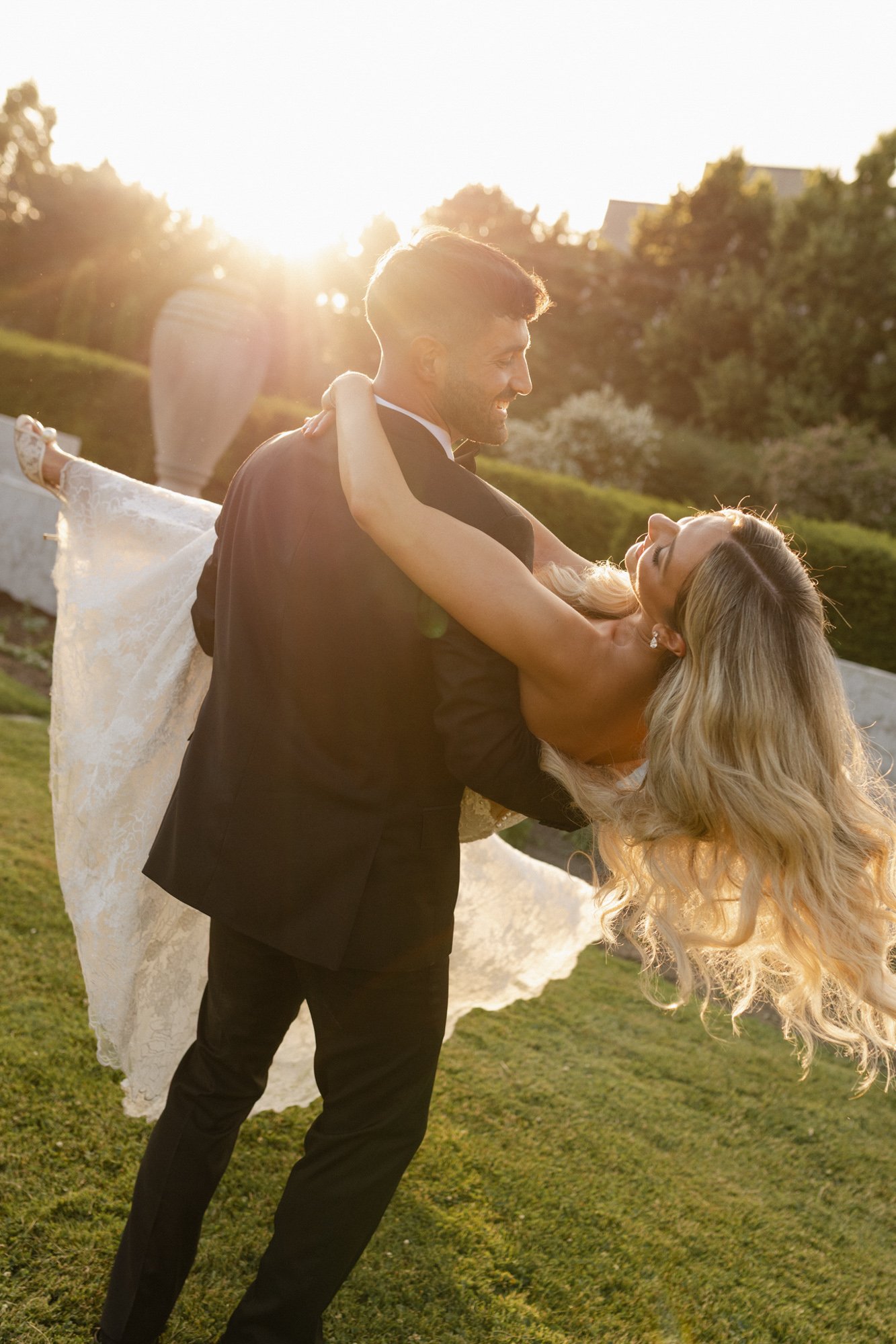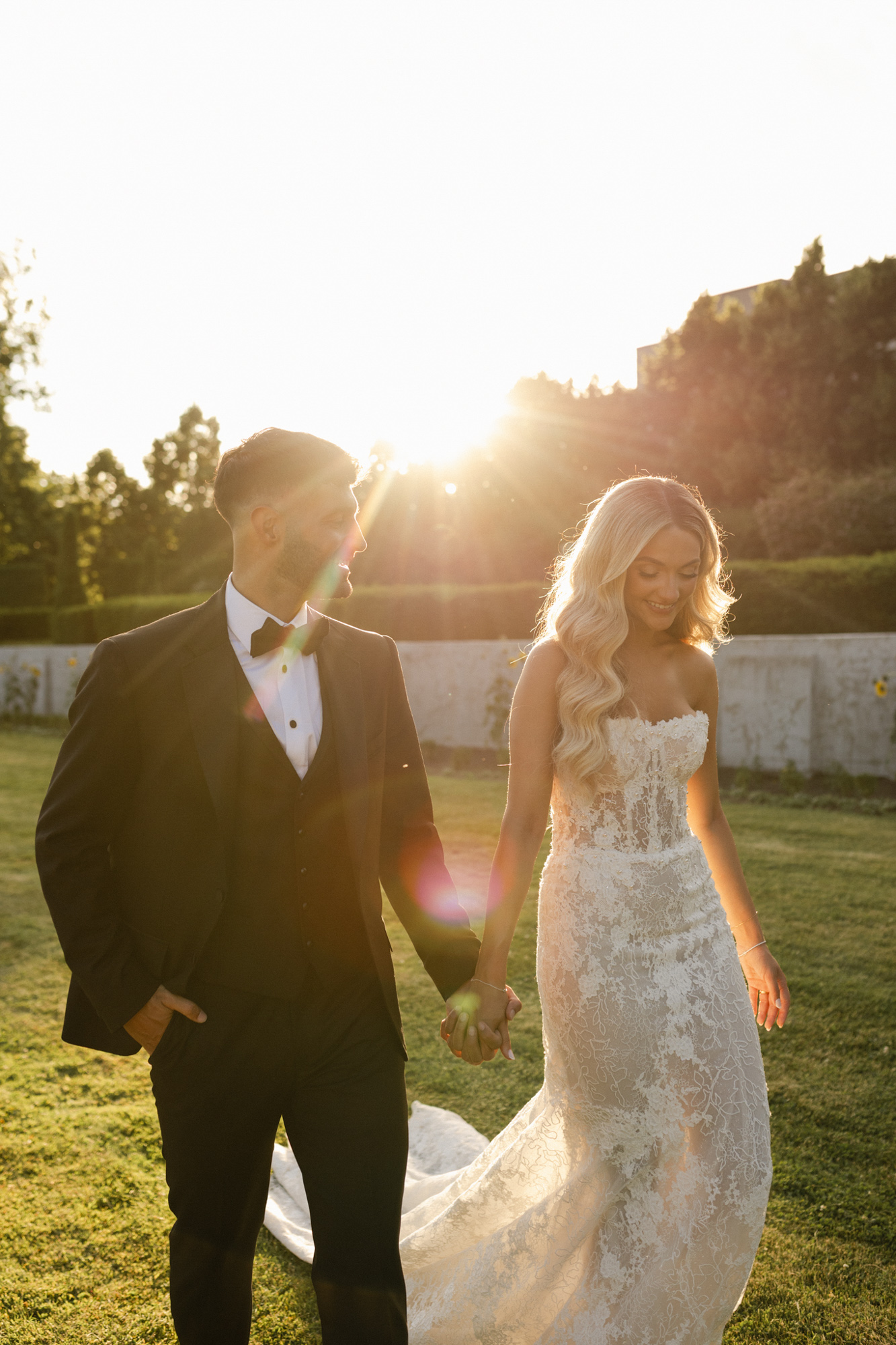 After their wedding day, they chose to step back into their bridal looks and celebrate again in a more relaxed, creatively driven setting. Set against the historic architecture and manicured grounds of Parkwood Estate in Oshawa, their session took place during the sought after golden hour light turning every frame into something cinematic. Post-wedding photoshoots are another opportunity to create polished, story-driven imagery you’ll treasure forever.