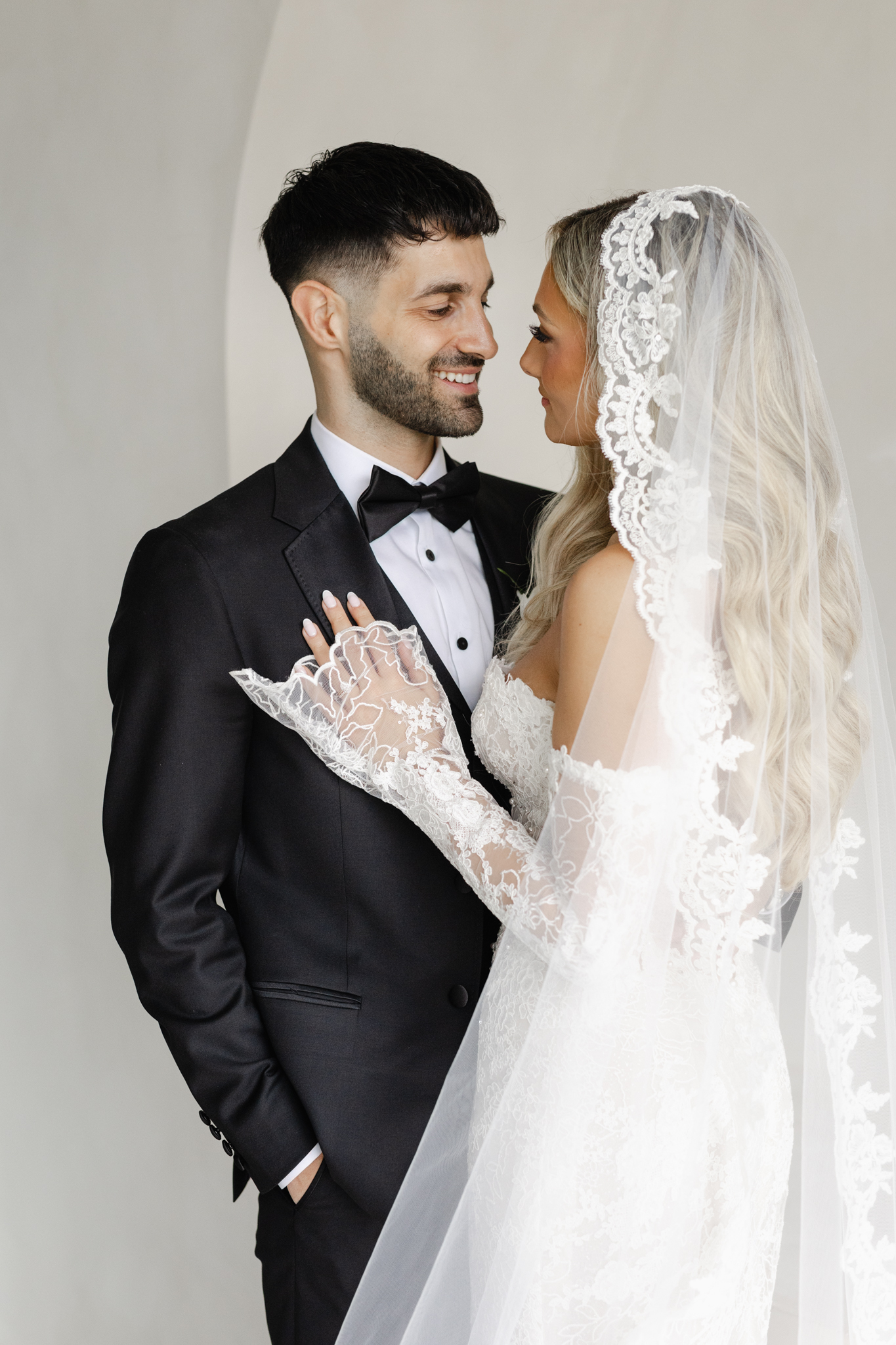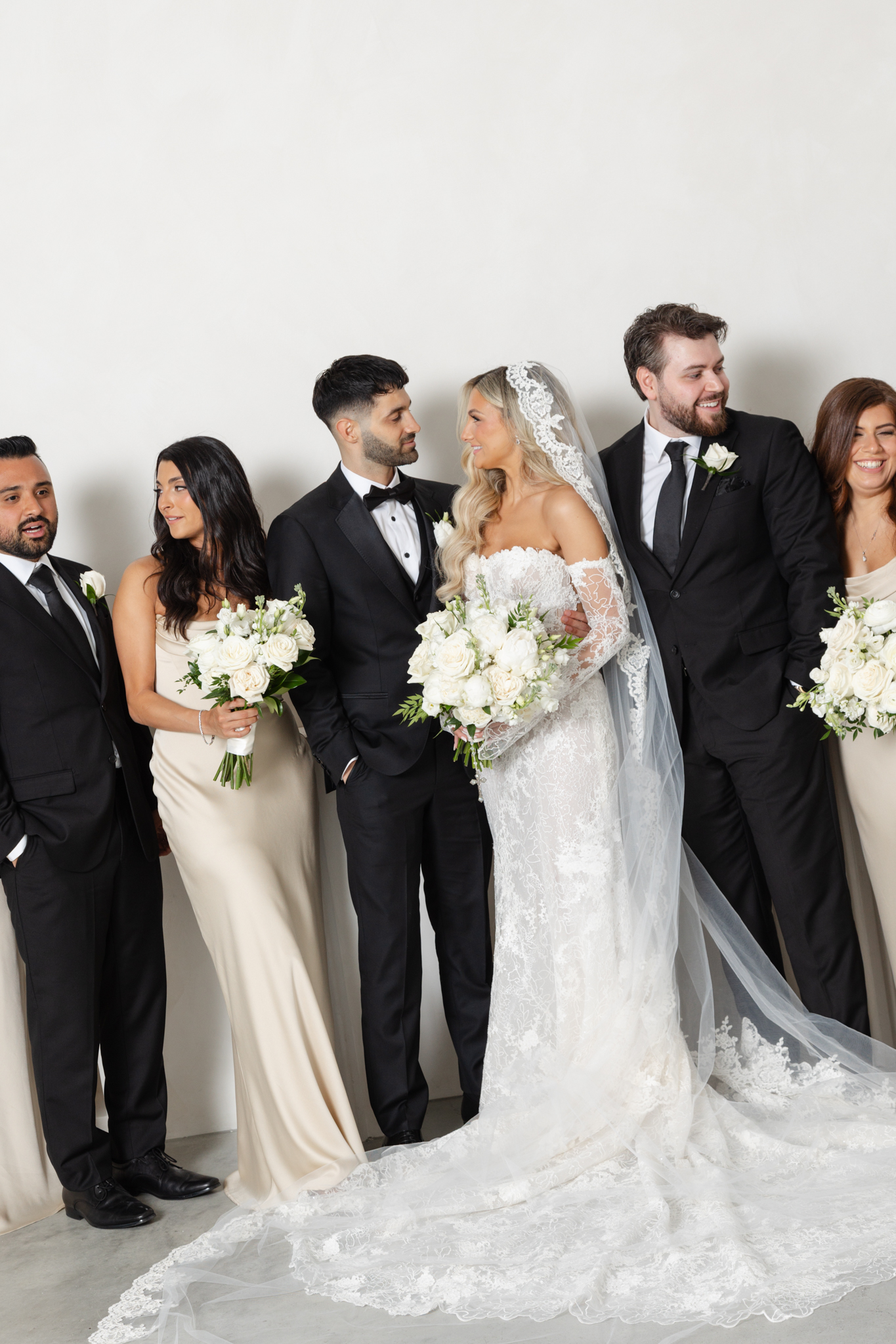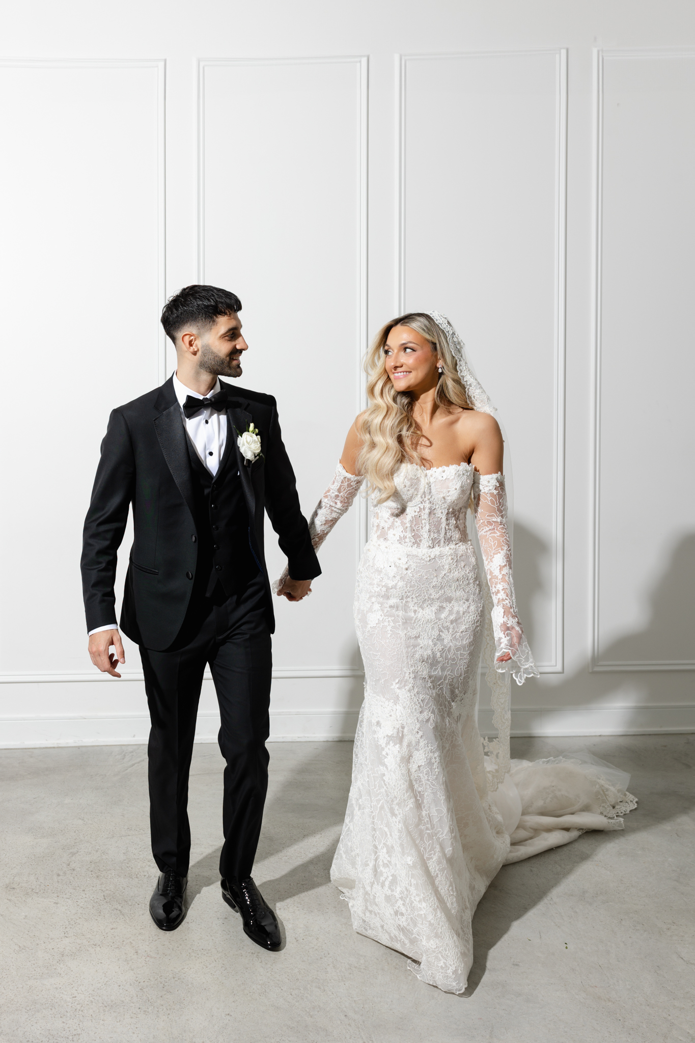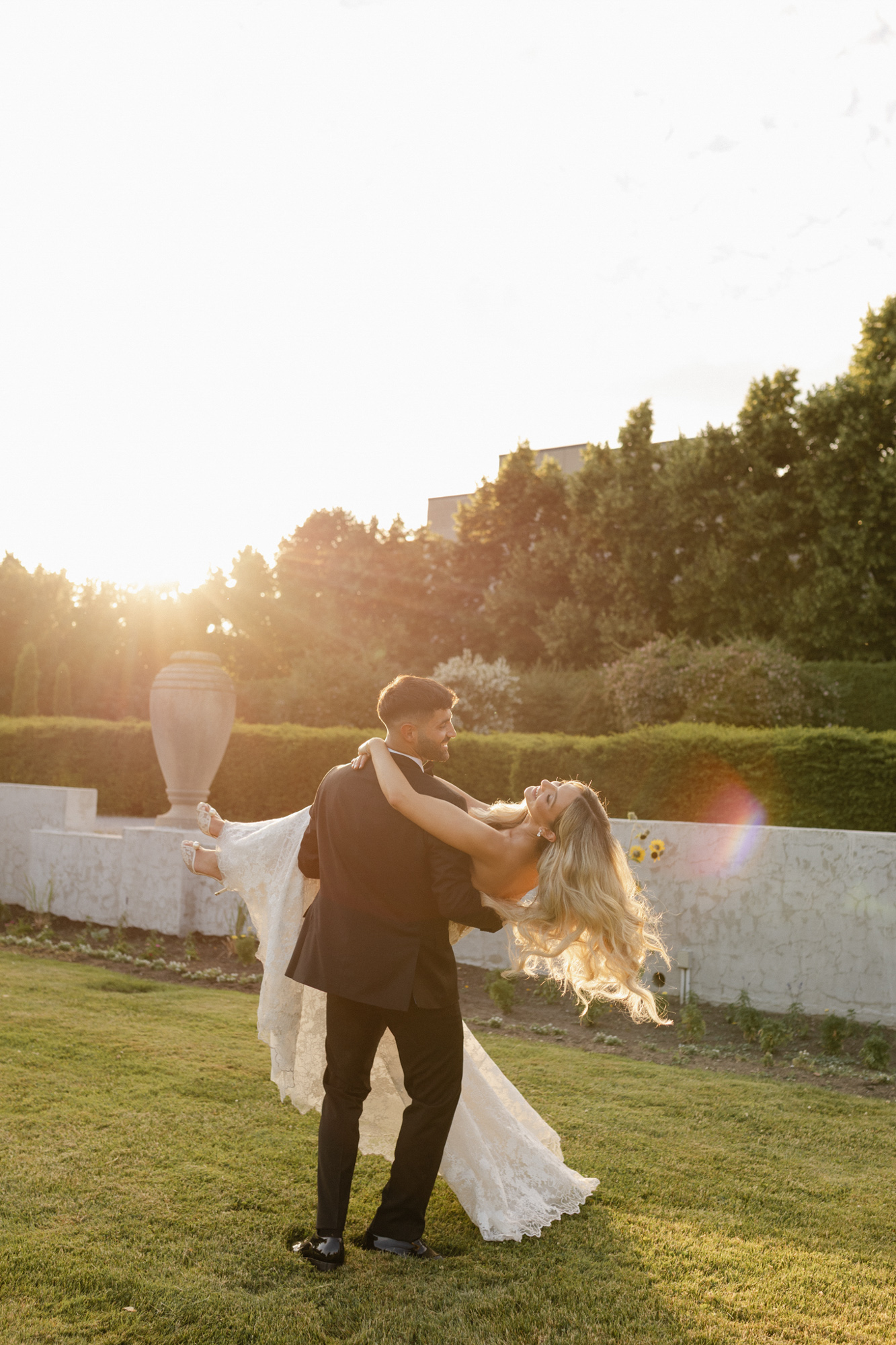 After their wedding day, they chose to step back into their bridal looks and celebrate again in a more relaxed, creatively driven setting. Set against the historic architecture and manicured grounds of Parkwood Estate in Oshawa, their session took place during the sought after golden hour light turning every frame into something cinematic. Post-wedding photoshoots are another opportunity to create polished, story-driven imagery you’ll treasure forever.