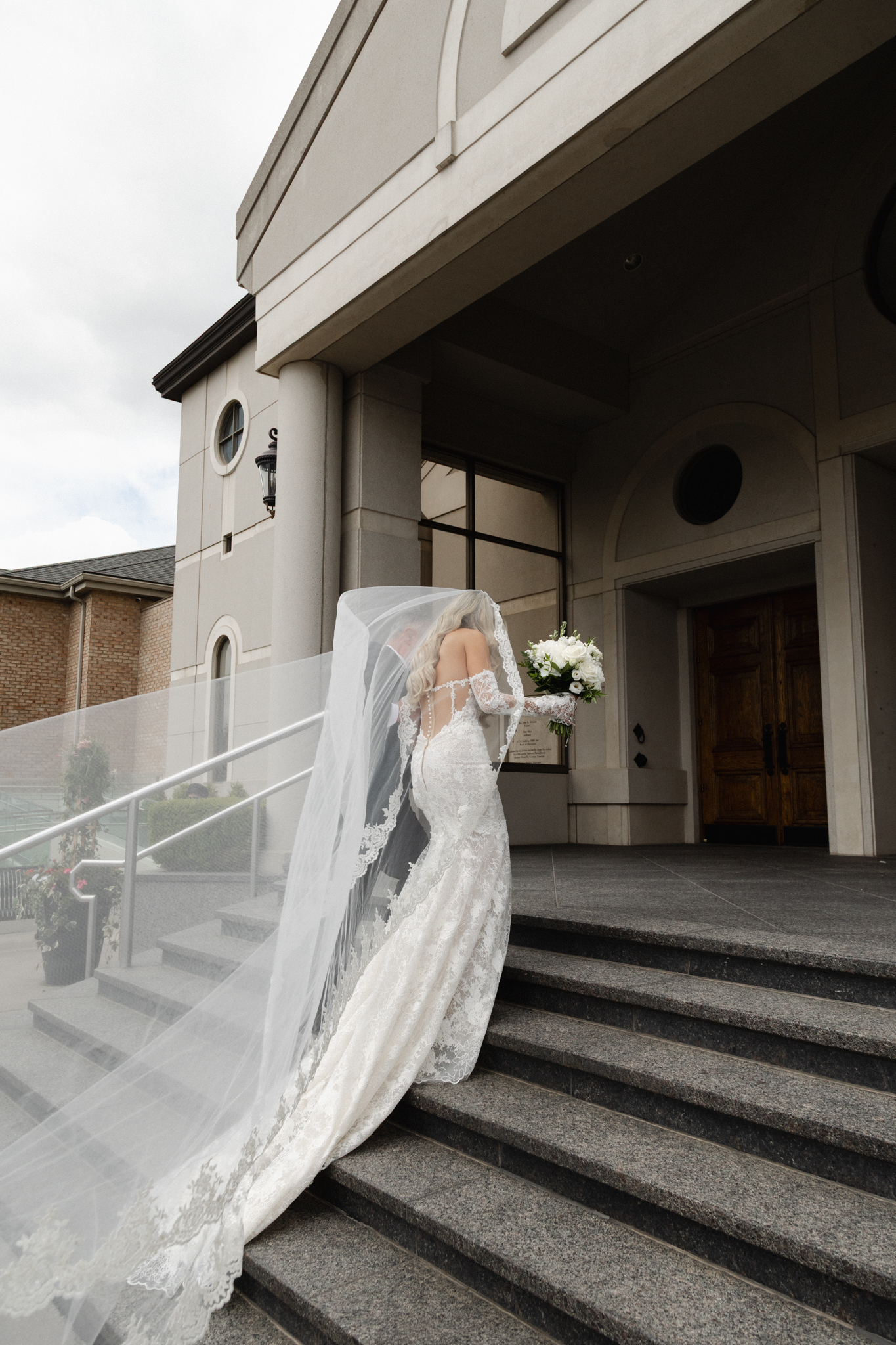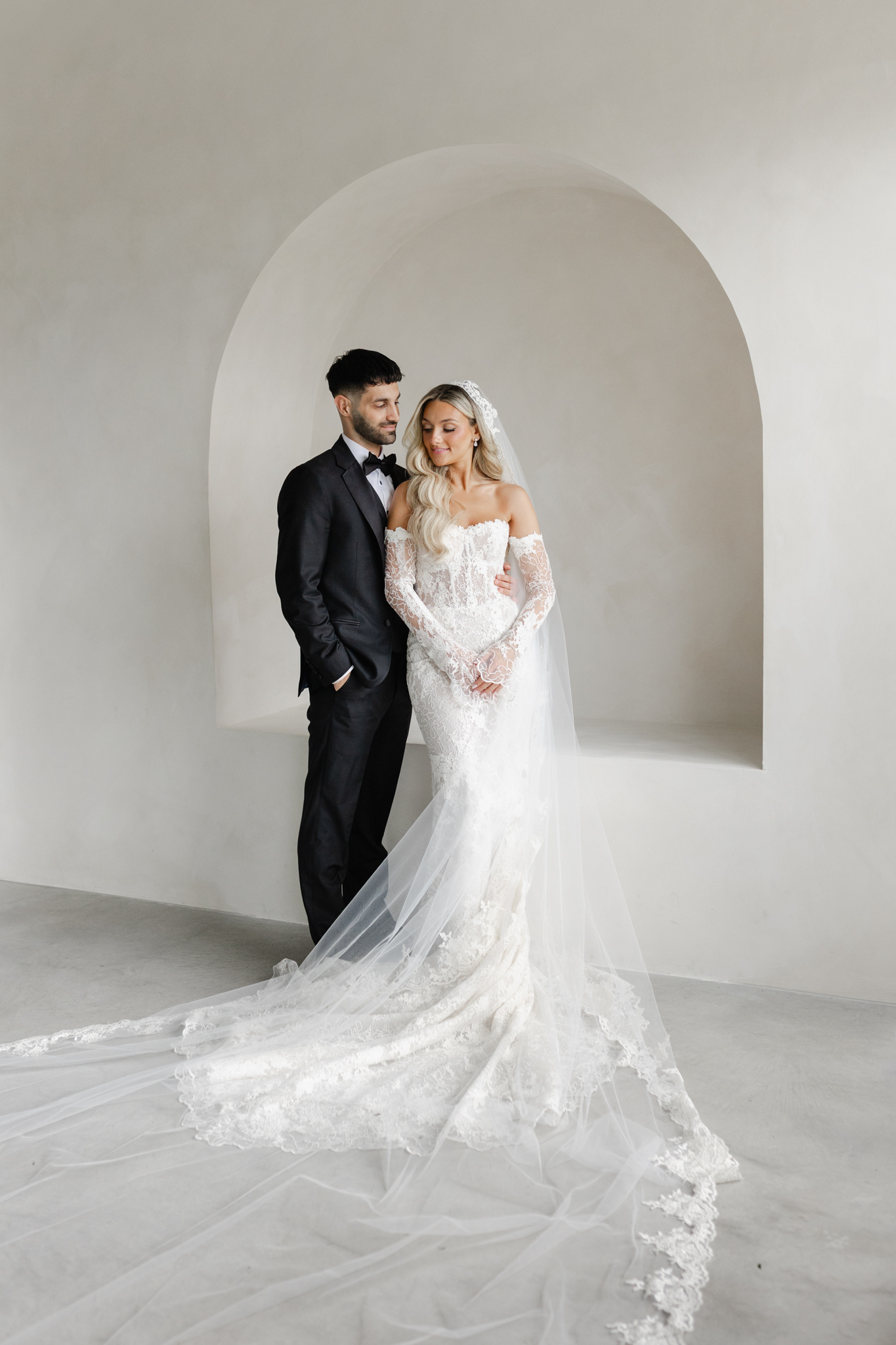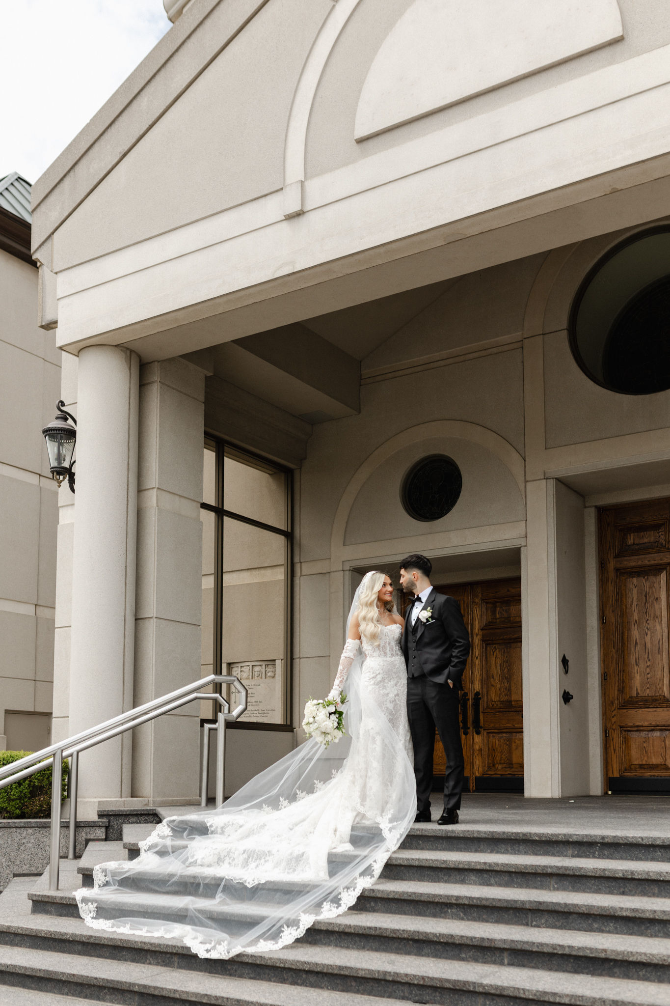 After their wedding day, they chose to step back into their bridal looks and celebrate again in a more relaxed, creatively driven setting. Set against the historic architecture and manicured grounds of Parkwood Estate in Oshawa, their session took place during the sought after golden hour light turning every frame into something cinematic. Post-wedding photoshoots are another opportunity to create polished, story-driven imagery you’ll treasure forever.