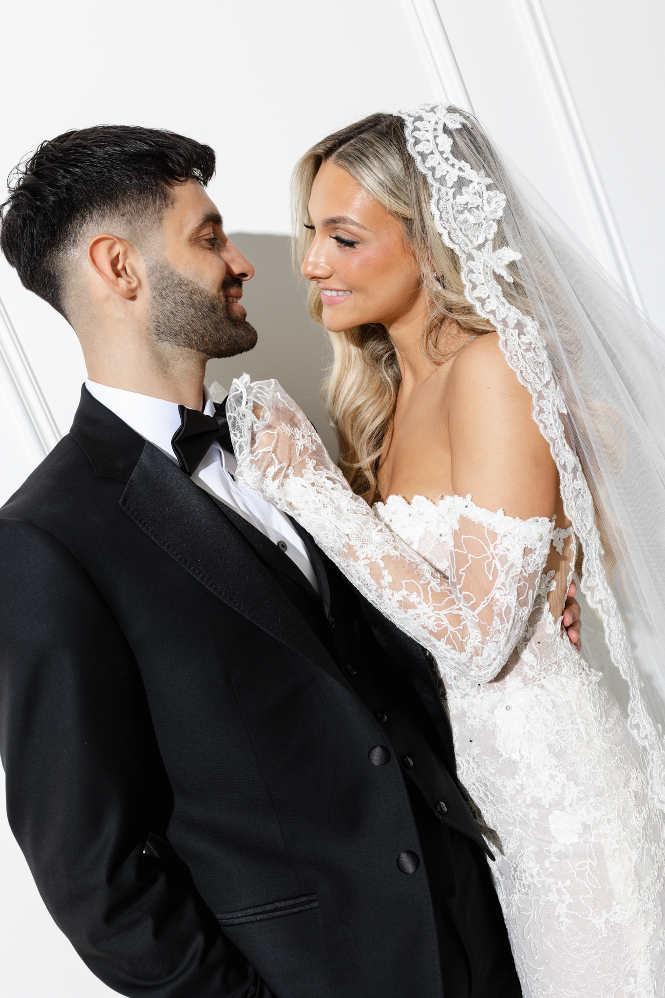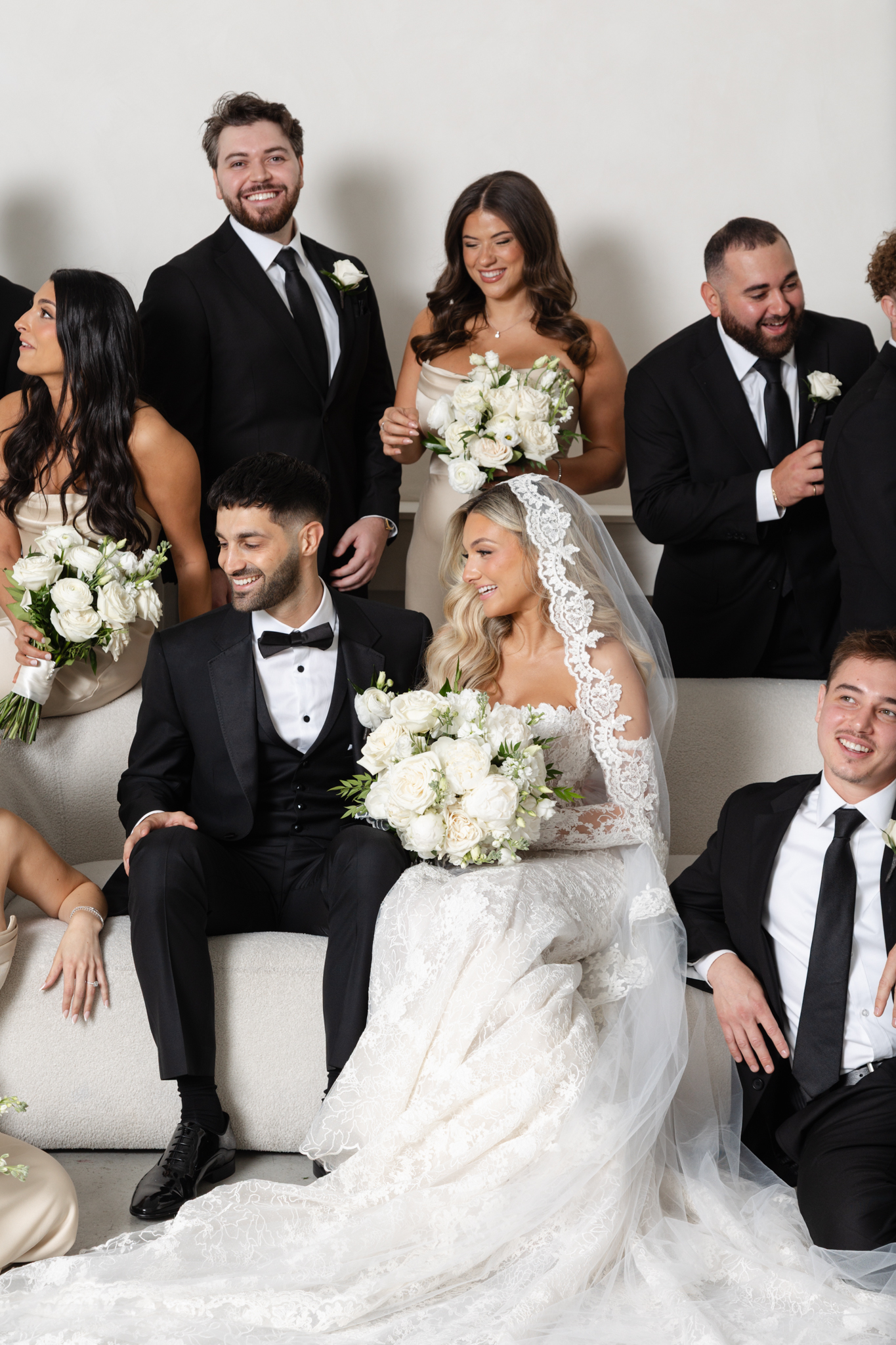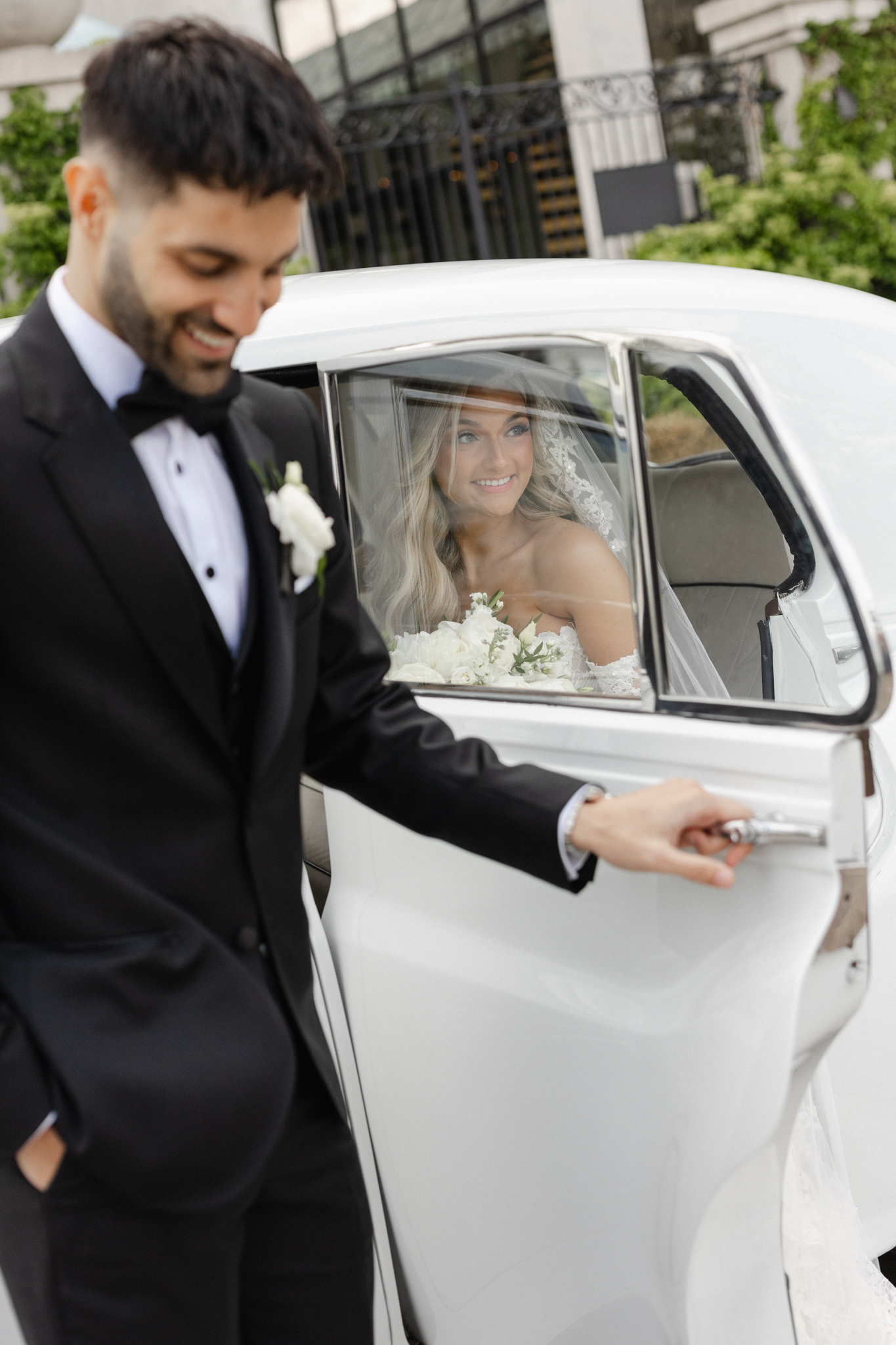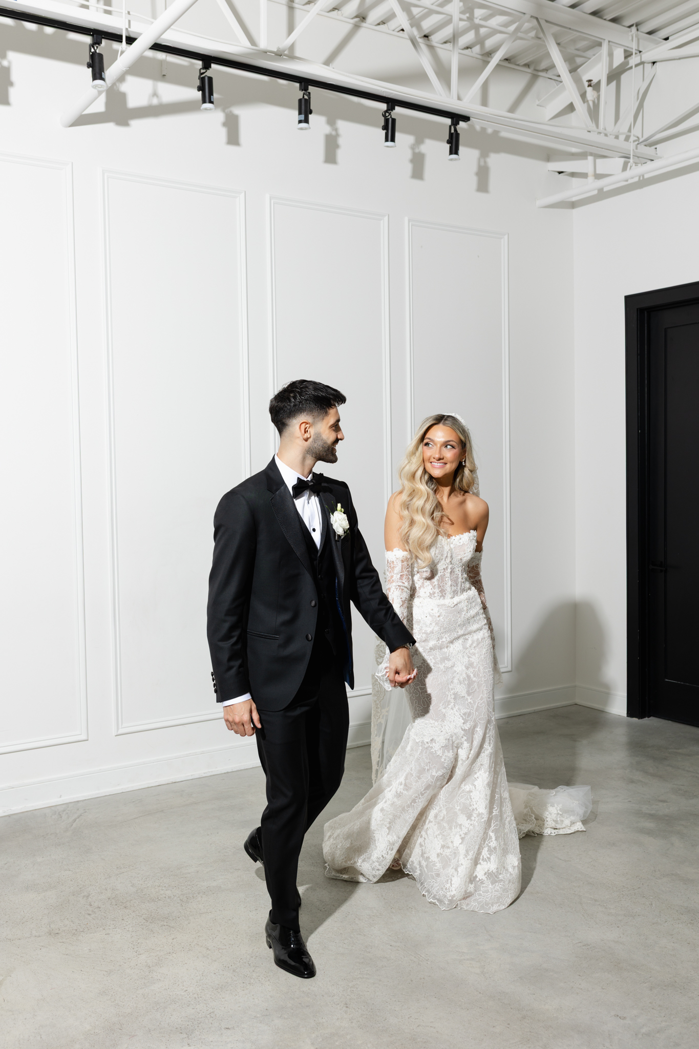 After their wedding day, they chose to step back into their bridal looks and celebrate again in a more relaxed, creatively driven setting. Set against the historic architecture and manicured grounds of Parkwood Estate in Oshawa, their session took place during the sought after golden hour light turning every frame into something cinematic. Post-wedding photoshoots are another opportunity to create polished, story-driven imagery you’ll treasure forever.
