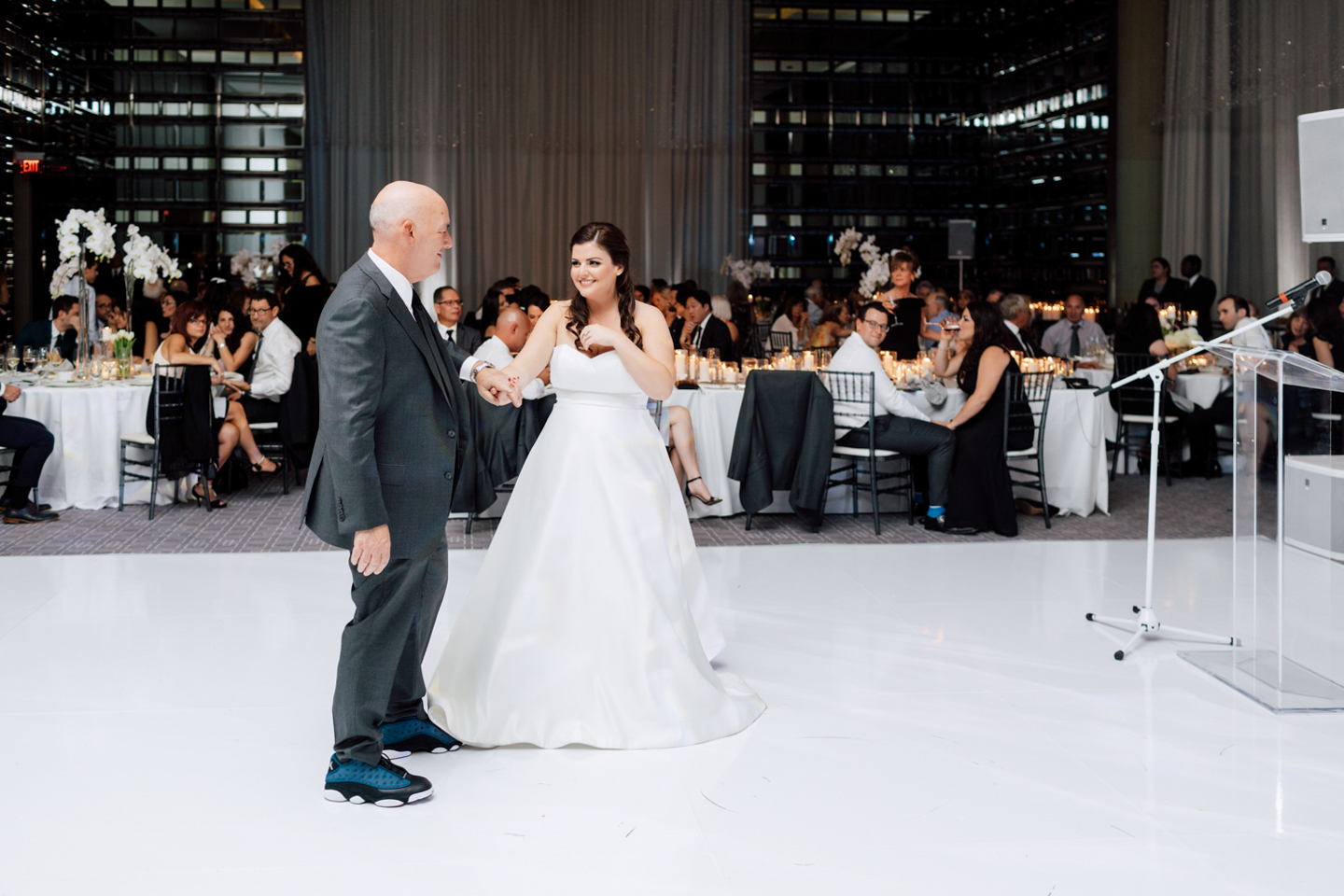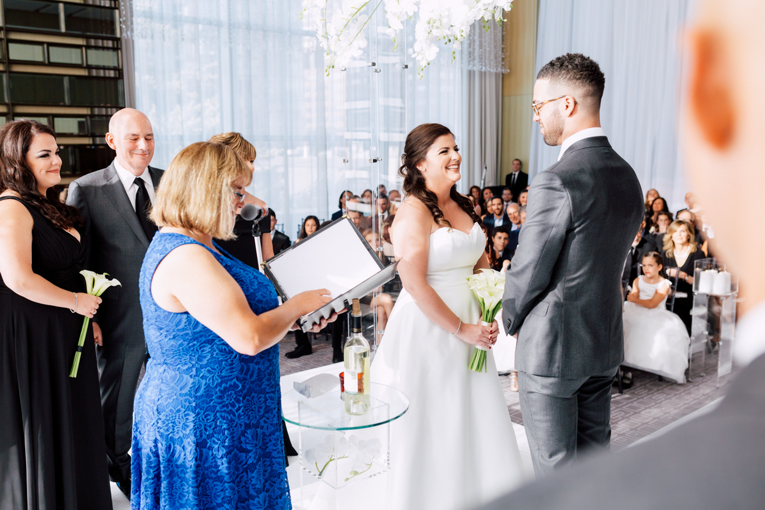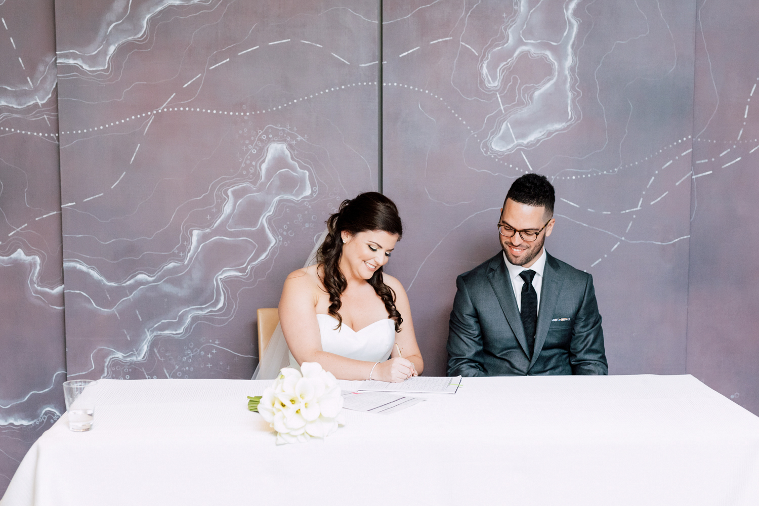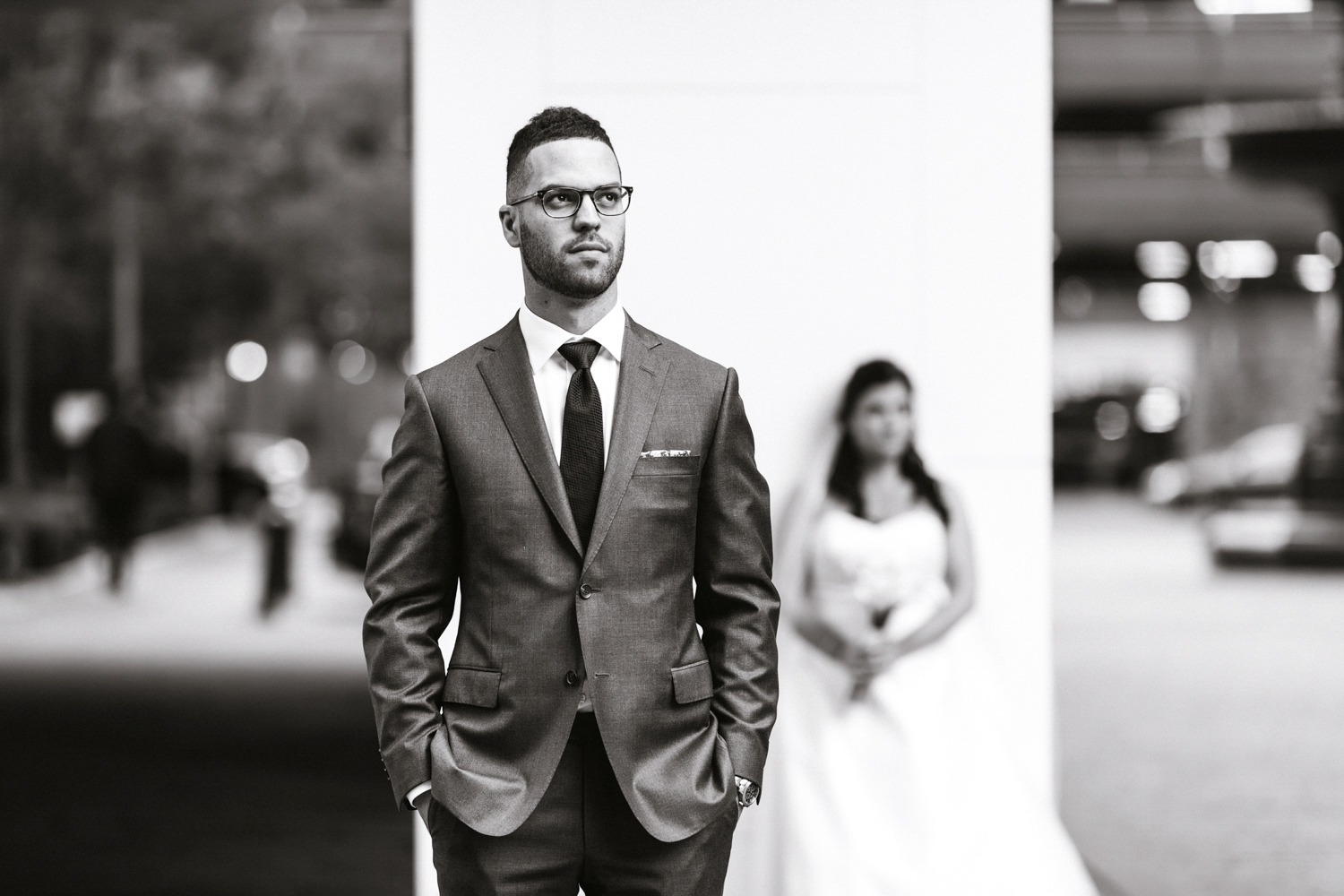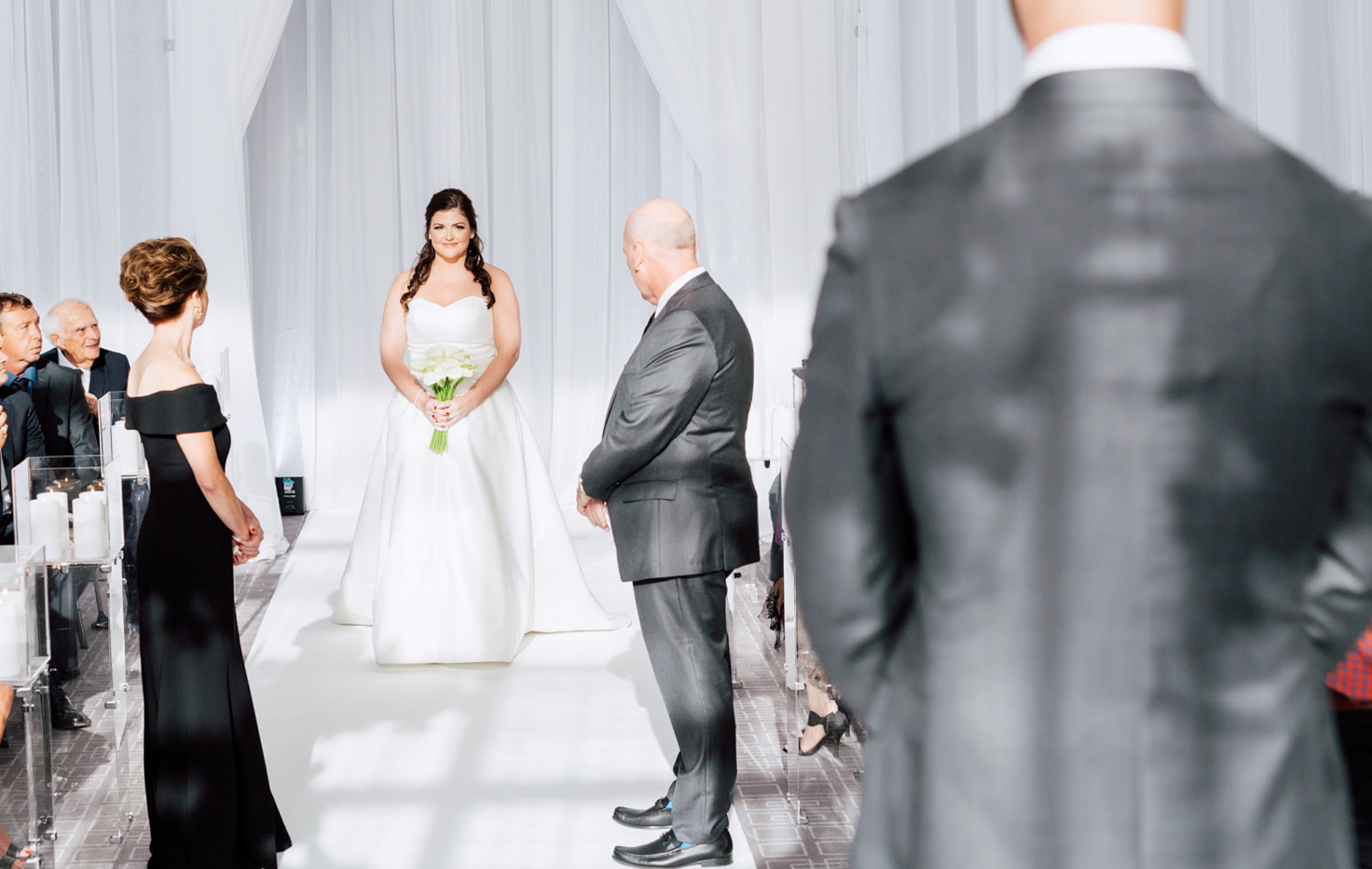 From the beginning, Erin knew she wanted a clean and simple look, preferring shades over colours. Of course, she used Pinterest and Instagram to draw inspiration from. Who doesn’t? It’s no surprise that their wedding took place at the luxurious Four Seasons Toronto Hotel – the perfect venue for a modern take on timeless elegance. They each had their own rooms to get ready in with their friends and family before the first reveal.