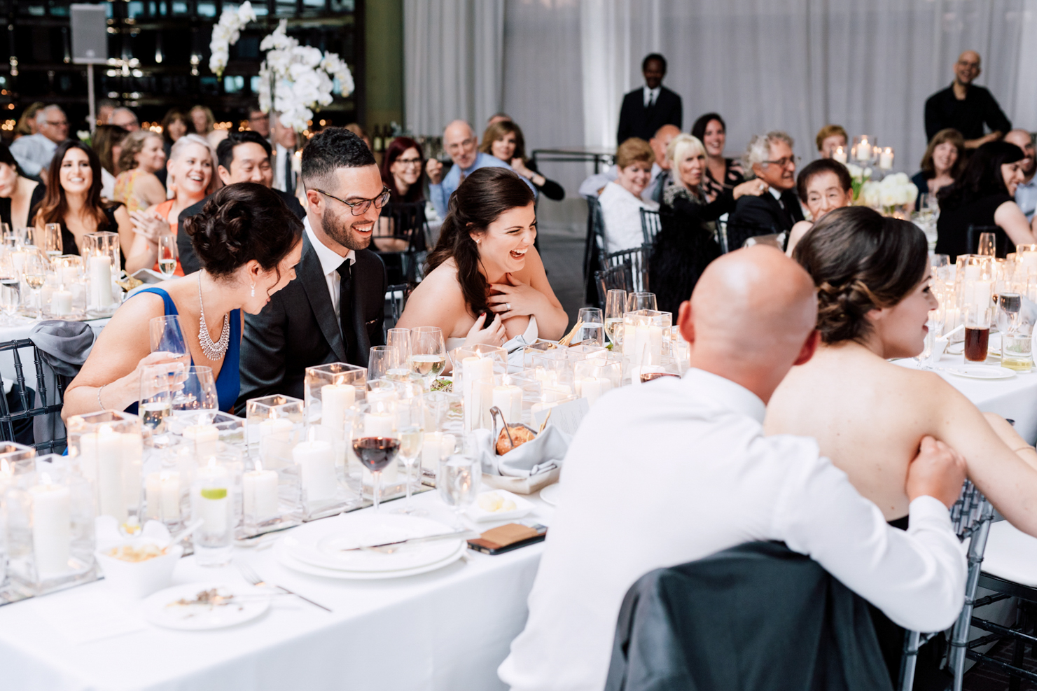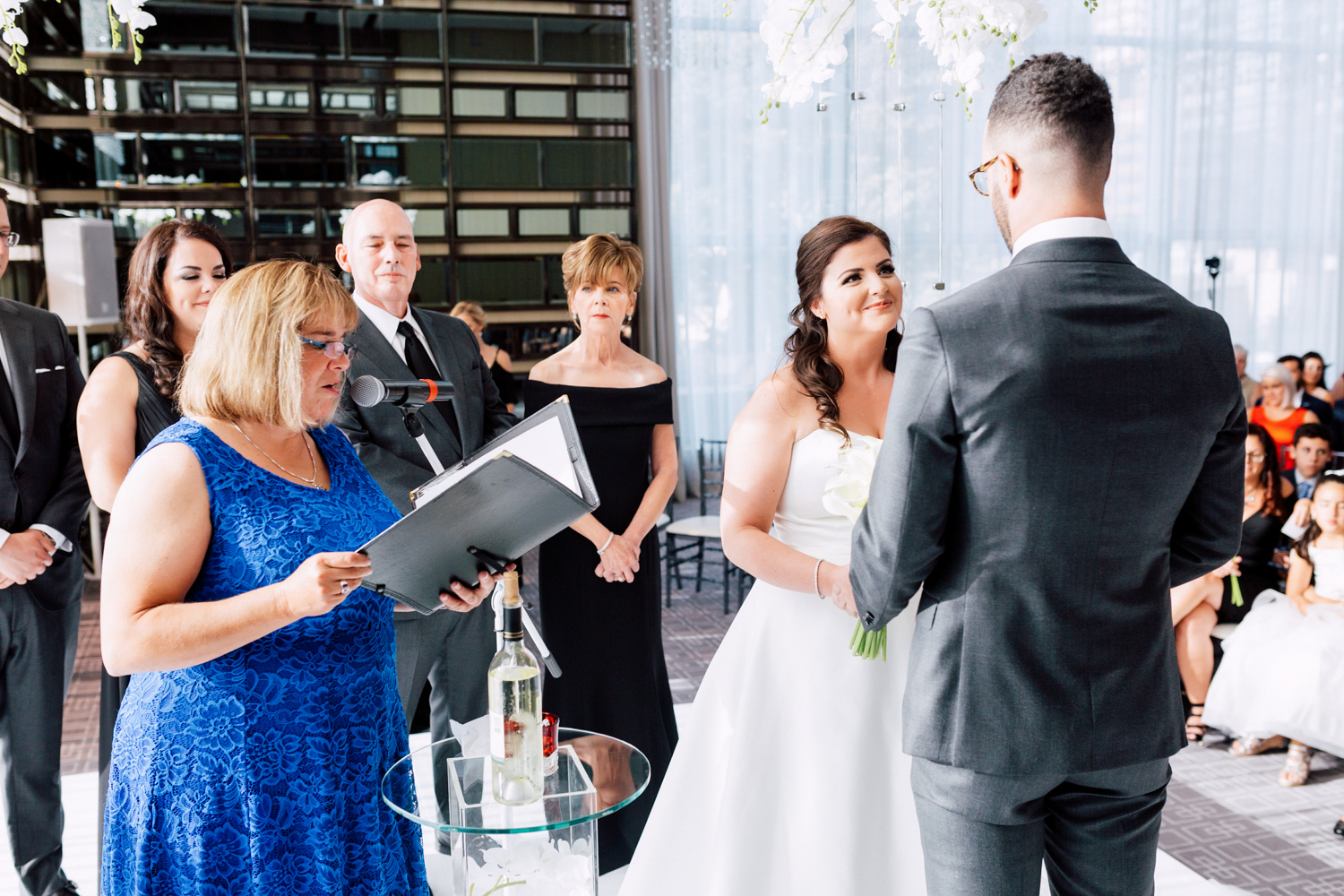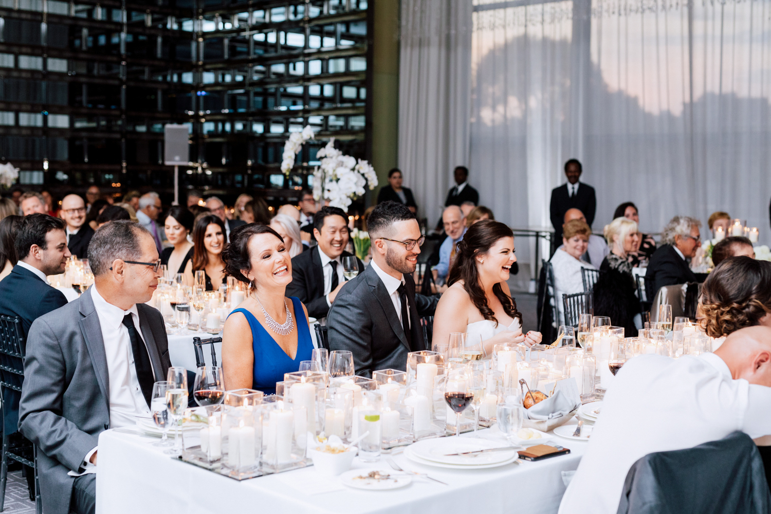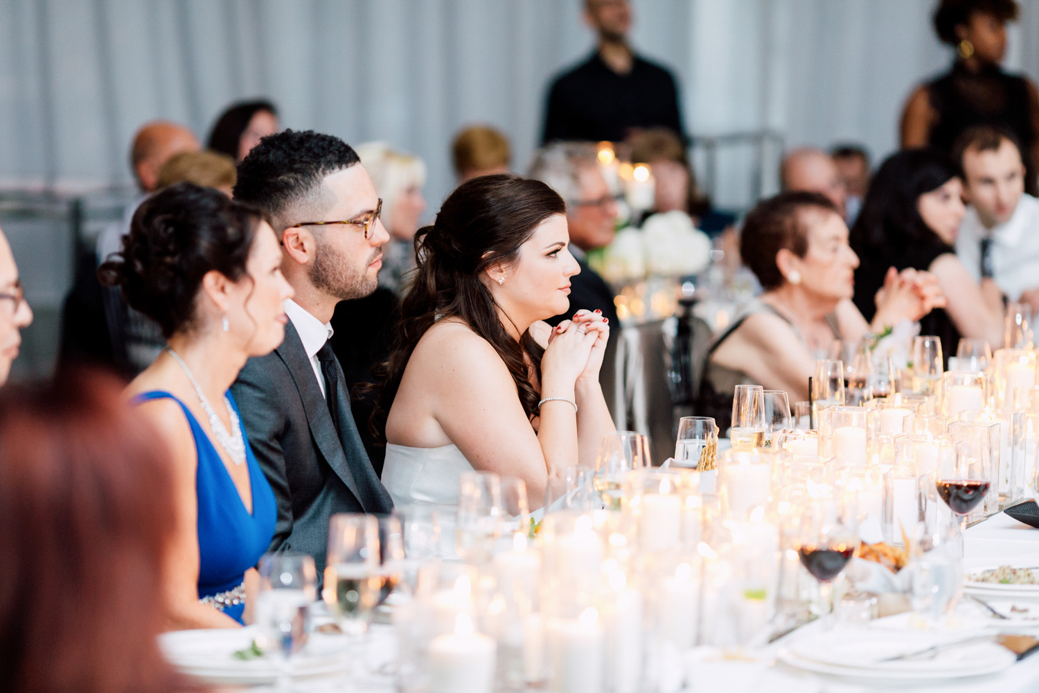From the beginning, Erin knew she wanted a clean and simple look, preferring shades over colours. Of course, she used Pinterest and Instagram to draw inspiration from. Who doesn’t? It’s no surprise that their wedding took place at the luxurious Four Seasons Toronto Hotel – the perfect venue for a modern take on timeless elegance. They each had their own rooms to get ready in with their friends and family before the first reveal.