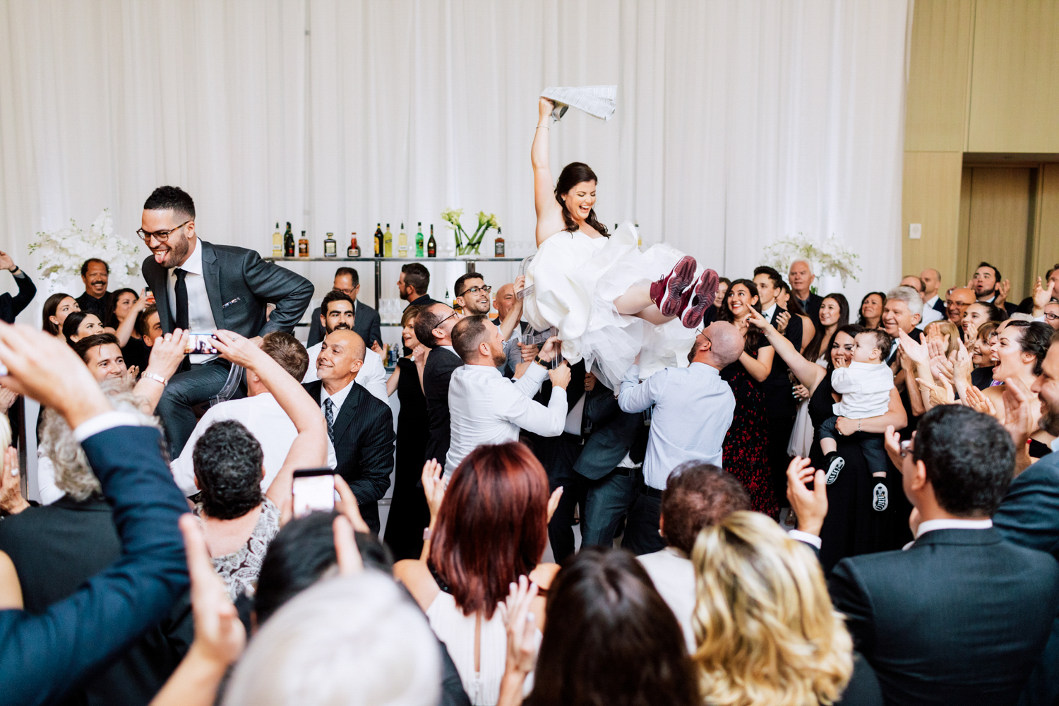 After Erin walked down the aisle to John Lennon’s “Imagine” and walked out the ceremony with Trevor as her husband, they didn’t hold back any energy in their evening celebration! The hora ended up being Erin and Trevor’s highlight, and I’m sure their family and friends agree with them! When the venue is decorated with an abundance of candles and a variety of white flowers, it’s hard not to enjoy yourself. A unique detail we loved was their wedding cake. It was a small sized cake with a “best day ever” topper, sitting on top of the tier of mini donuts. Too cute!