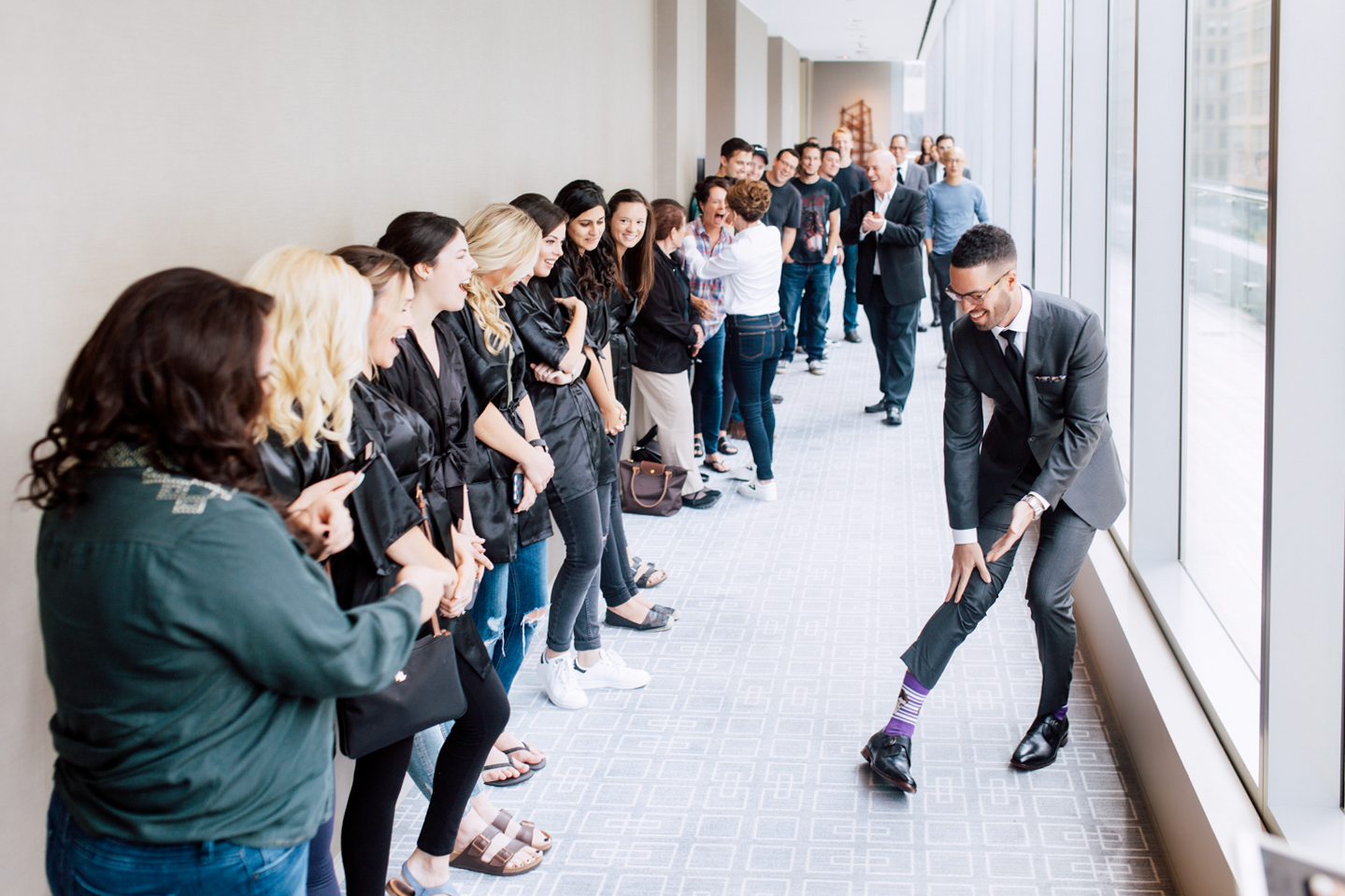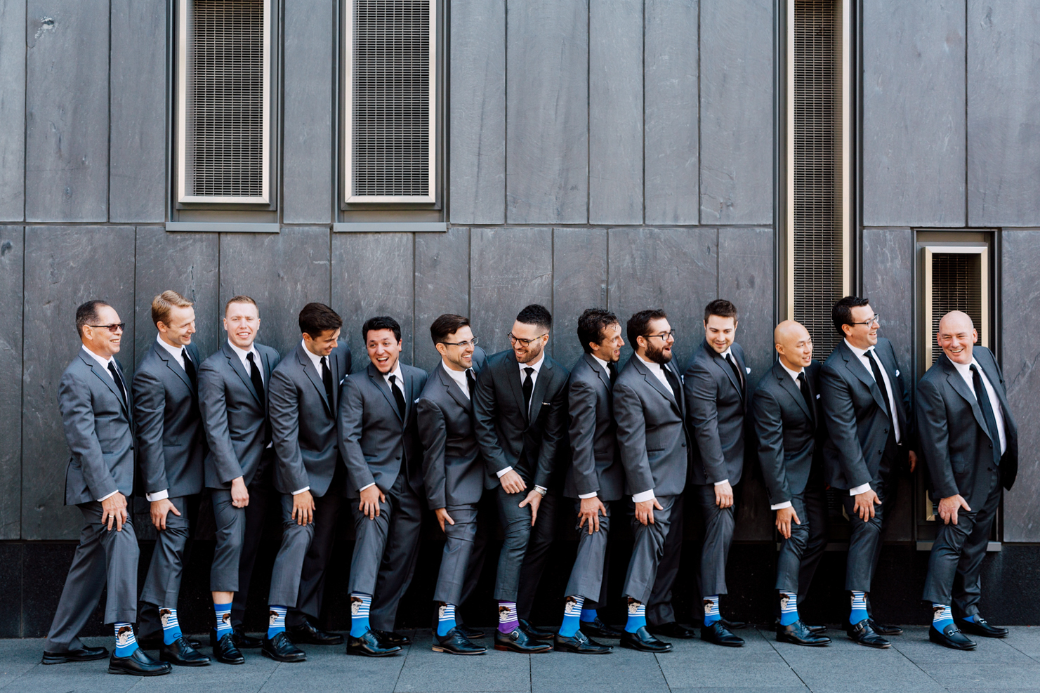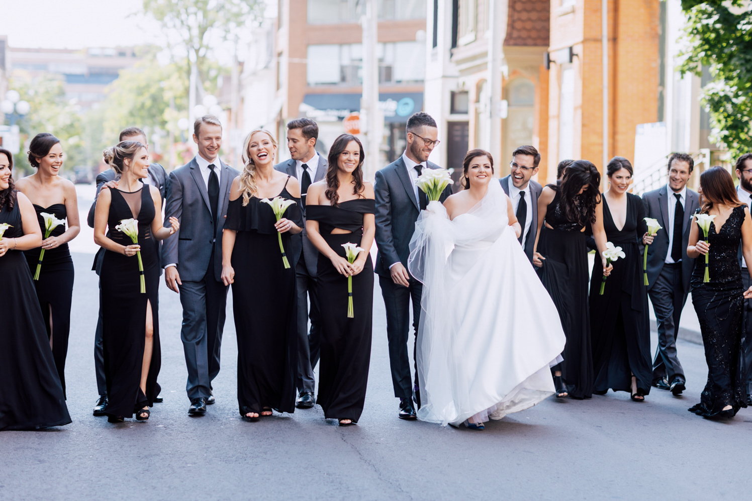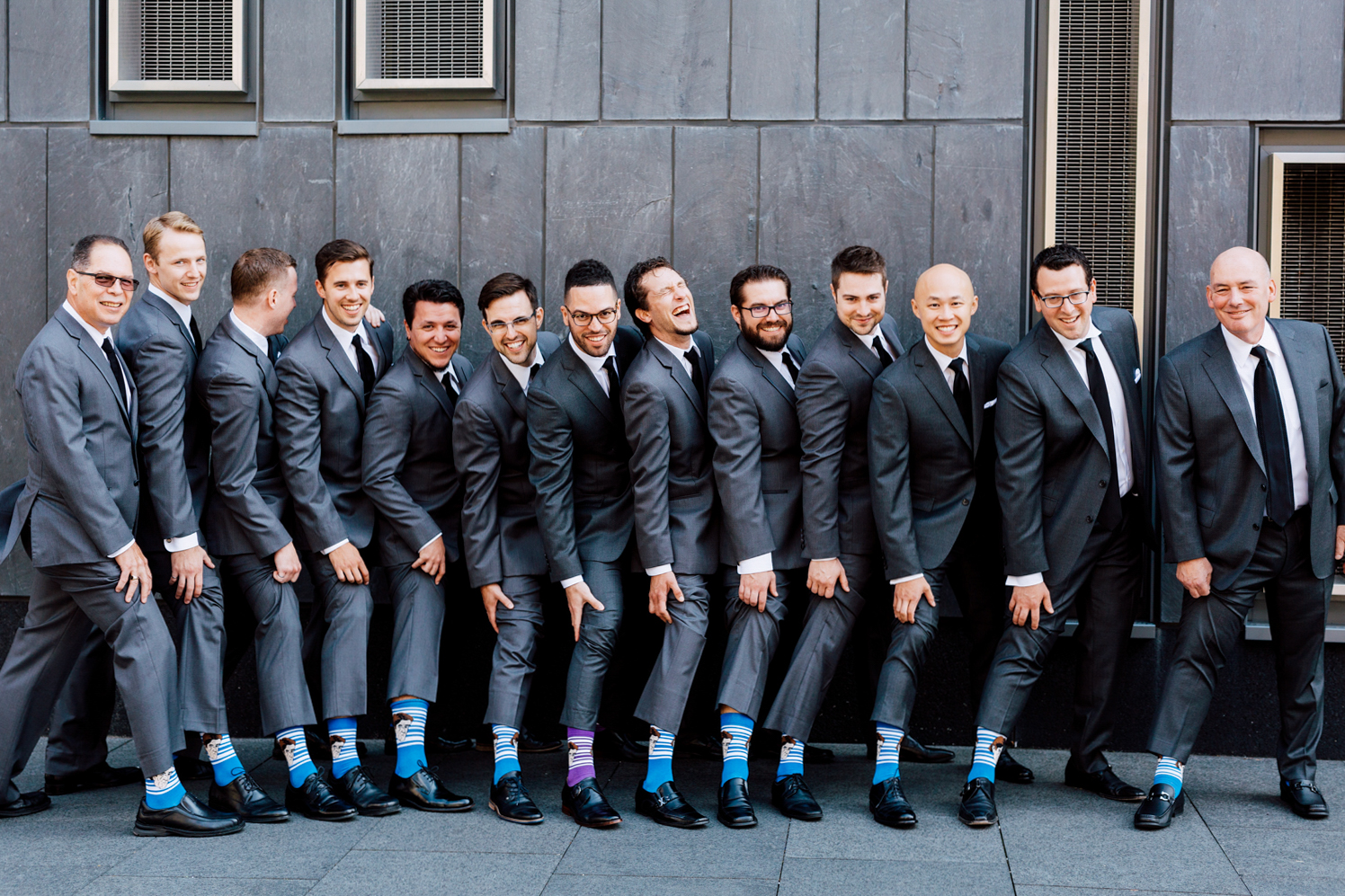 Erin and Trevor invited the whole gang with 10 groomsmen and 9 bridesmaids! We loved how the girls wore all black, wearing dresses that matched their style that made them stand out on their own. Meanwhile, the boys not only matched suits but matched their socks too! We knew with this fun group that we were in for one heck of a party!