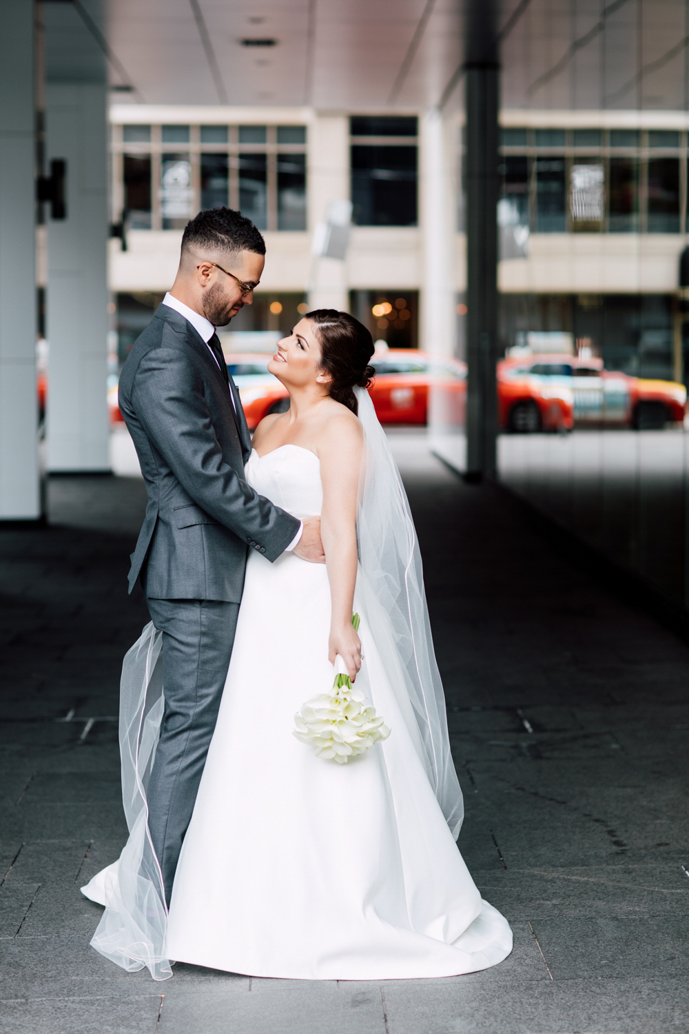 One of our favourite spots at the Four Seasons hotel is the outdoor balcony, overlooking the busy streets of Toronto. Even being out in the open, it’s still a romantic and intimate spot for a first look. Trevor was beaming with joy when he finally saw Erin, looking absolutely stunning and graceful with her delicate curls and strapless a-line gown. The dynamic between them from there on was nothing short of adorable! They were incredibly sweet and gentle with each other, which definitely translated well in their portrait session.