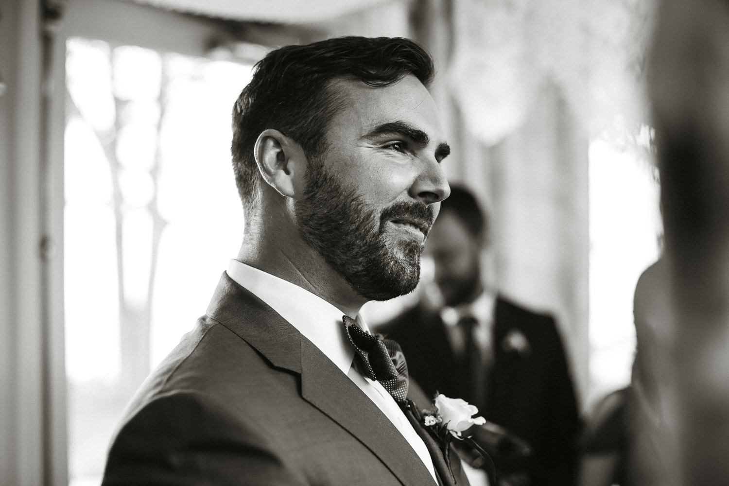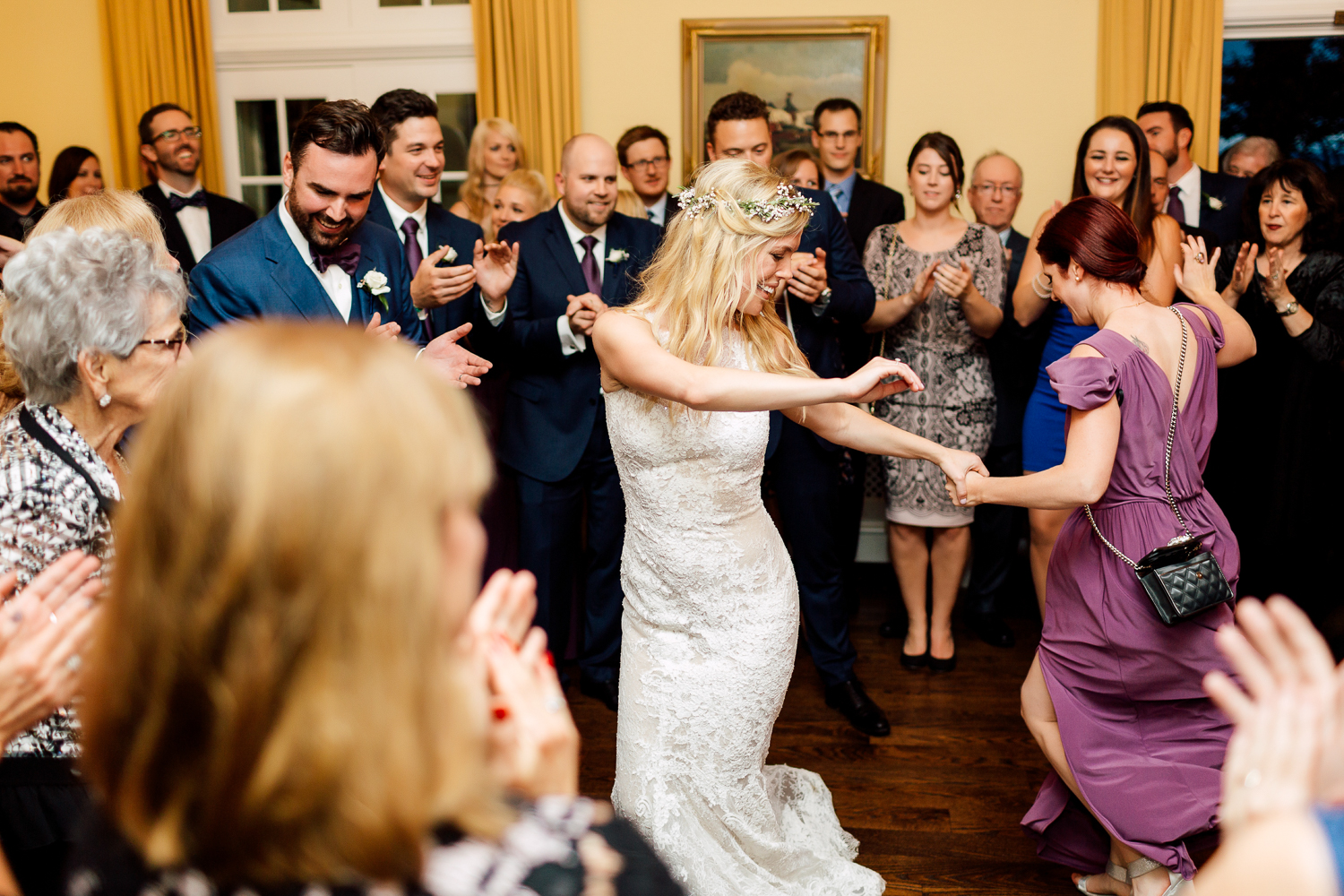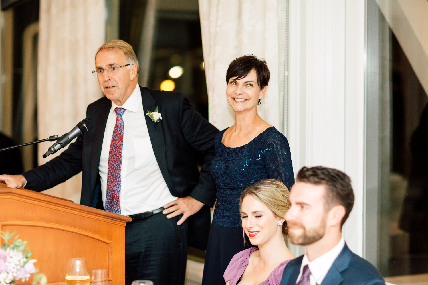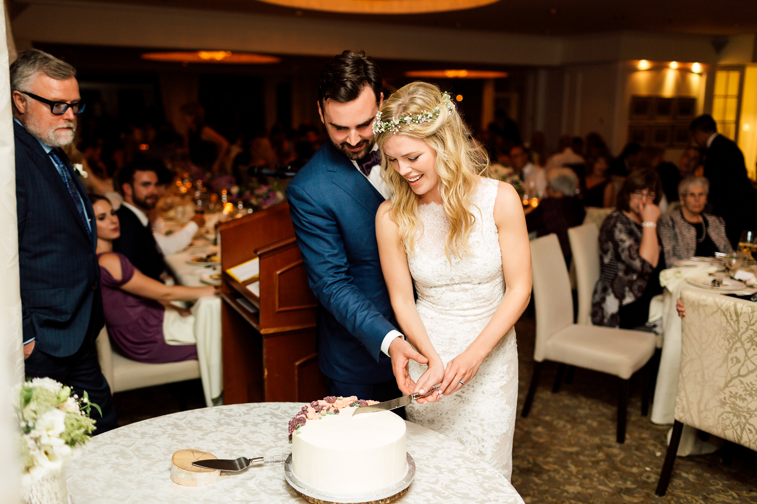 The Toronto Hunt Club is an exclusive venue in Scarborough that offers a stunning cliffside view of the lake. We were lucky to have been able to spend time in the beautiful outdoors for portraits before the rain started to fall. Rain on the wedding day never brings us down, and it shouldn’t cause you to frown either! These tend to be our memorable weddings because we get reminded of what’s most important: celebrating the couple’s love. We celebrated Devon and Graham’s union inside the Hunt Club. With how gorgeous everything fell together for their ceremony, we forgot that there was even an outside. As planned, their too cute for words canine practically rushed down the aisle as the ring barrier, just as excited as everyone in the room.