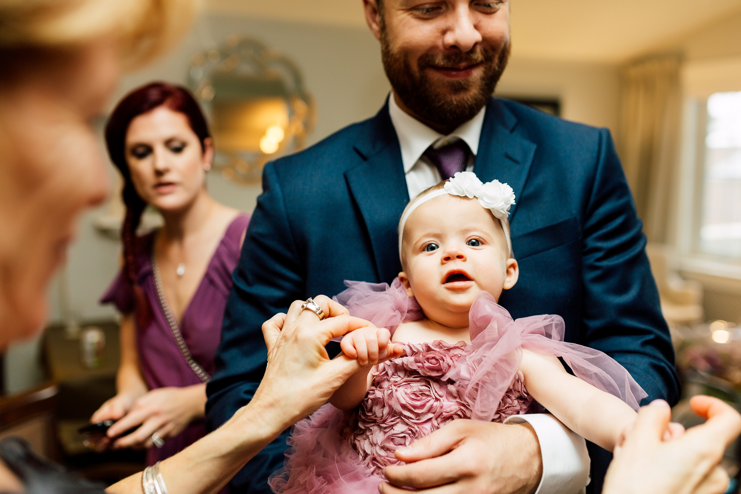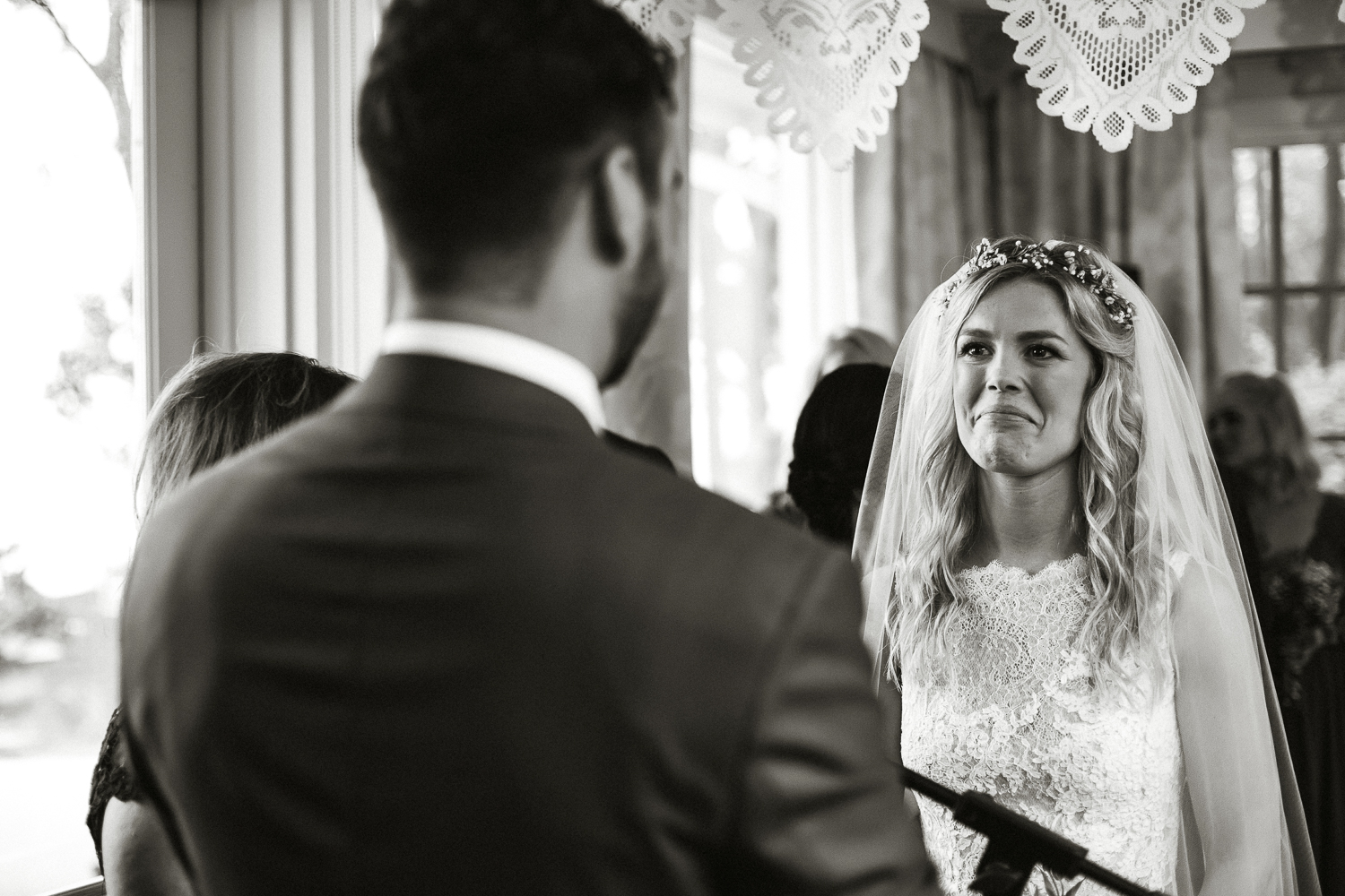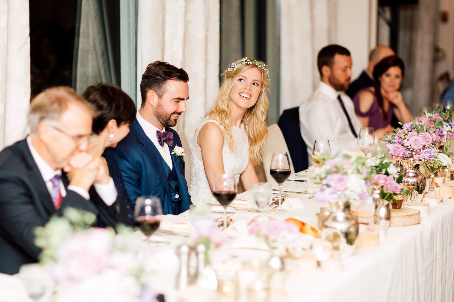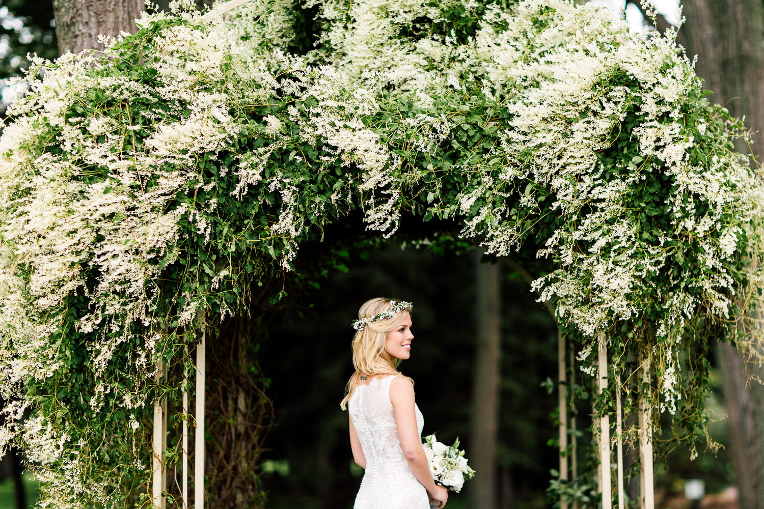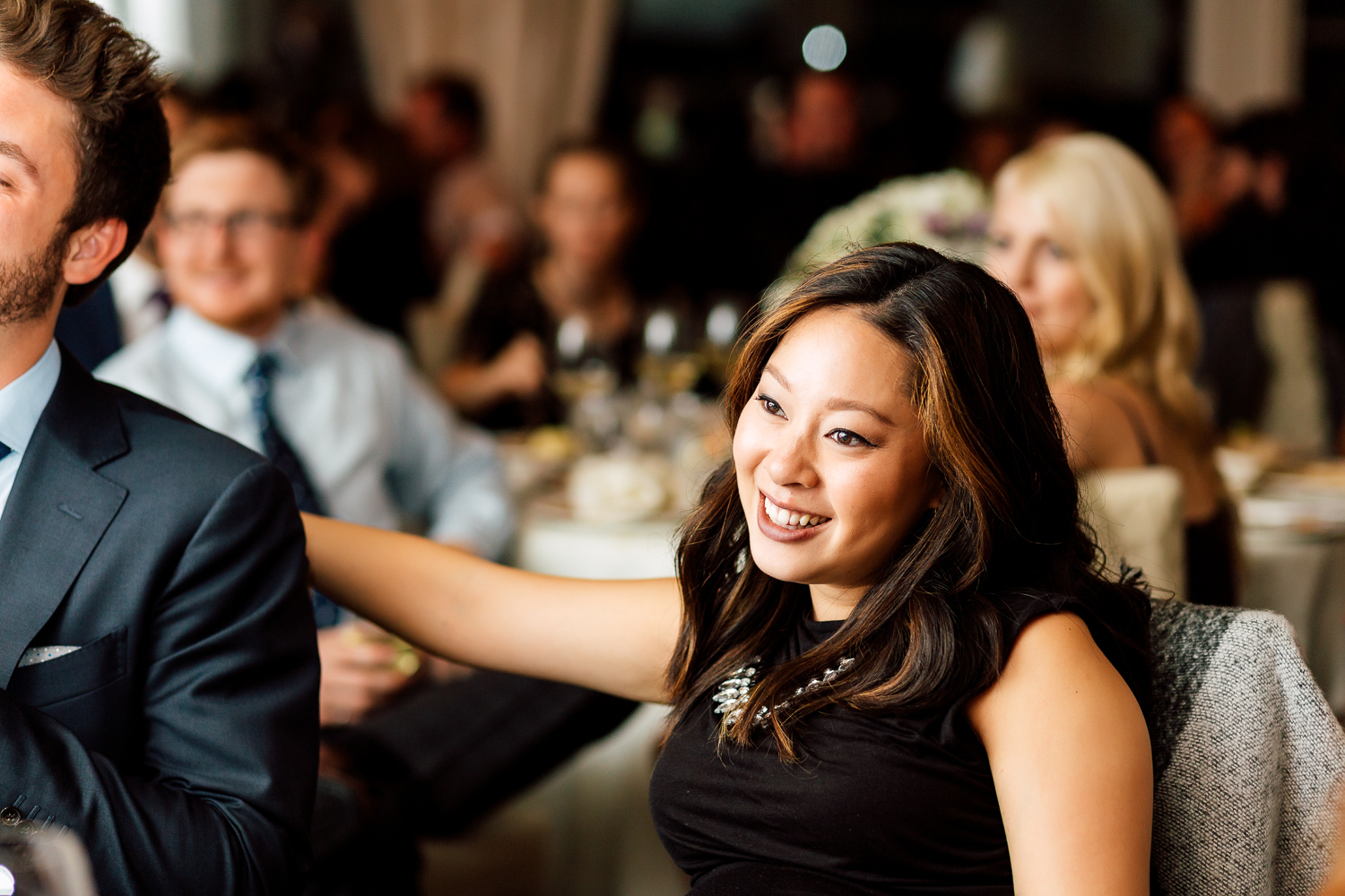 The Toronto Hunt Club is an exclusive venue in Scarborough that offers a stunning cliffside view of the lake. We were lucky to have been able to spend time in the beautiful outdoors for portraits before the rain started to fall. Rain on the wedding day never brings us down, and it shouldn’t cause you to frown either! These tend to be our memorable weddings because we get reminded of what’s most important: celebrating the couple’s love. We celebrated Devon and Graham’s union inside the Hunt Club. With how gorgeous everything fell together for their ceremony, we forgot that there was even an outside. As planned, their too cute for words canine practically rushed down the aisle as the ring barrier, just as excited as everyone in the room.