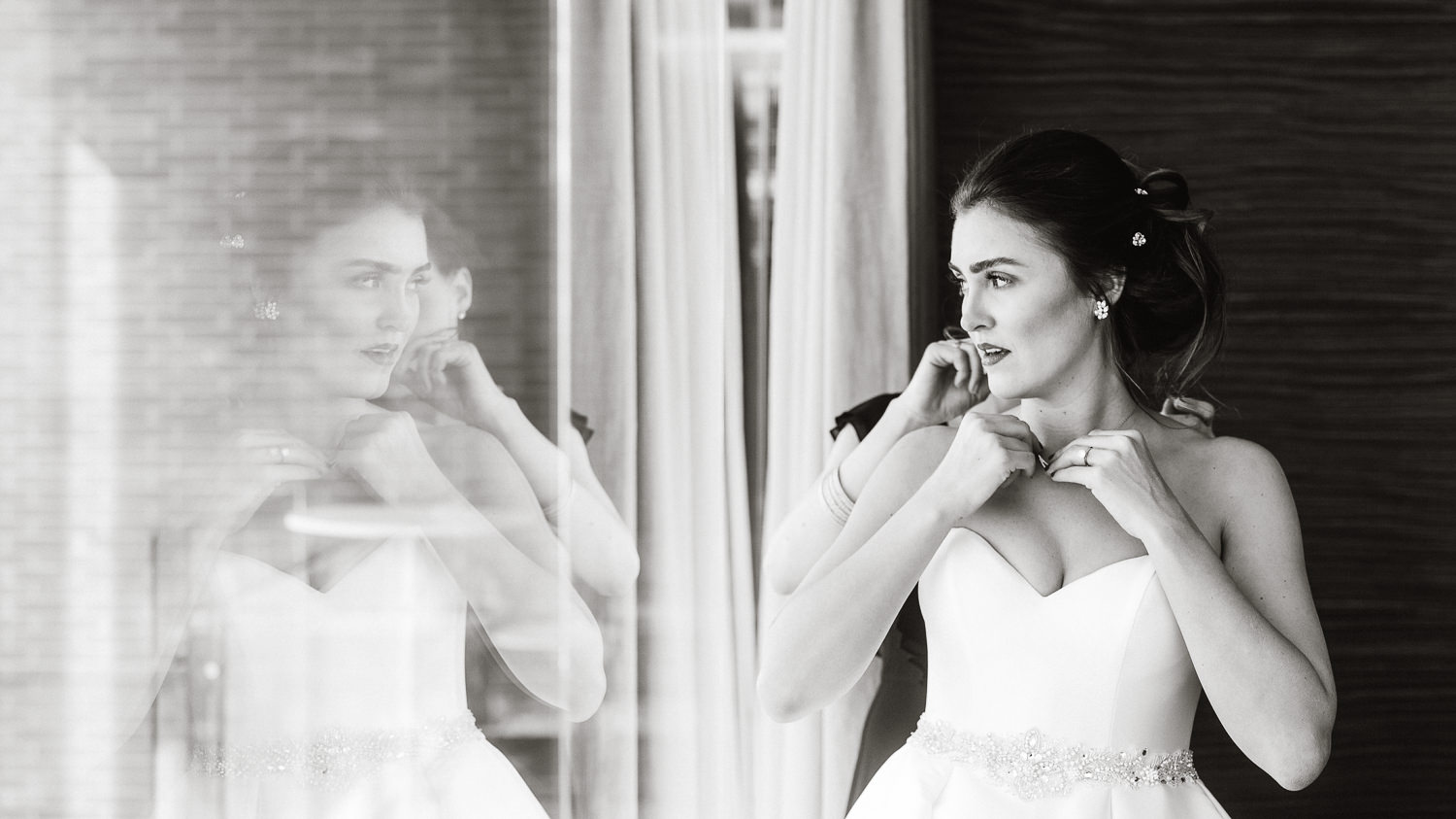 There was no need to step out to the cold for the portraits since there is so much to photograph in the venue itself. Just check out the glass staircase! The transparency of the railings gave the stairs a floating effect – it was the perfect location for a dramatic first look. There was also so much room to play with heights, angles and reflections that we might have had too much fun getting creative with Erin and Fraser’s portraits.