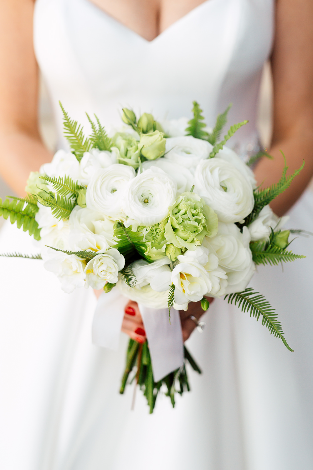 For Erin and Fraser’s big day, they kept it simple and timeless with their style. The bridal party had the guys wearing black tux while the girls wore different black dresses. They all looked incredibly classy and vogue ready. To balance the darker neutrals, the natural white and green colour palette found in the flower bouquets by Stemz brought the softness. At the reception, the same palette can be found in small doses of elegant white flowers and green foliage along with some candles. Overall the combination made the atmosphere all the more romantic.